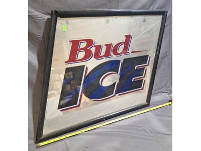 10330 Bud Ice advertising mirror 30x22", plastic covering on frame is pealing