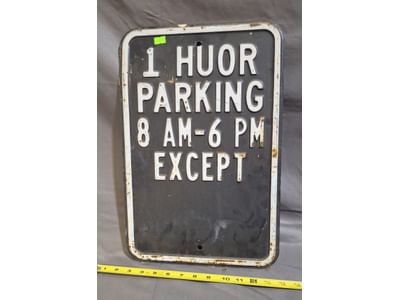 10332 Misspelled 1 hour parking embossed metal sign 12x18"