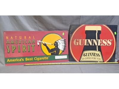 10340 Guinness double sided cardstock sign 16x13" and American spirit tin sign 21x11"