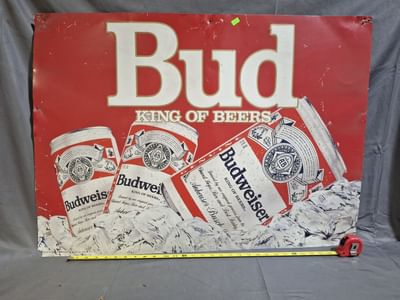 10346 Bud King of beers tin sign lots of scratches 36x26"