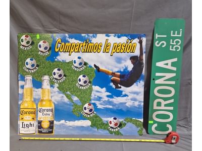 10347 Corona tin sign 21x26" and street sign 24x6"