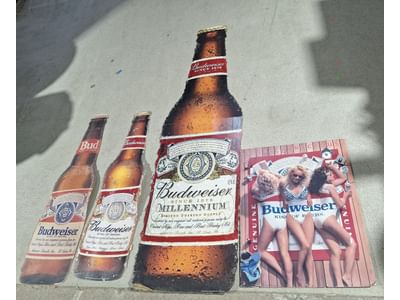 10353 Budweiser cardstock beer bottles and label conscious cardboard sign 20x26"