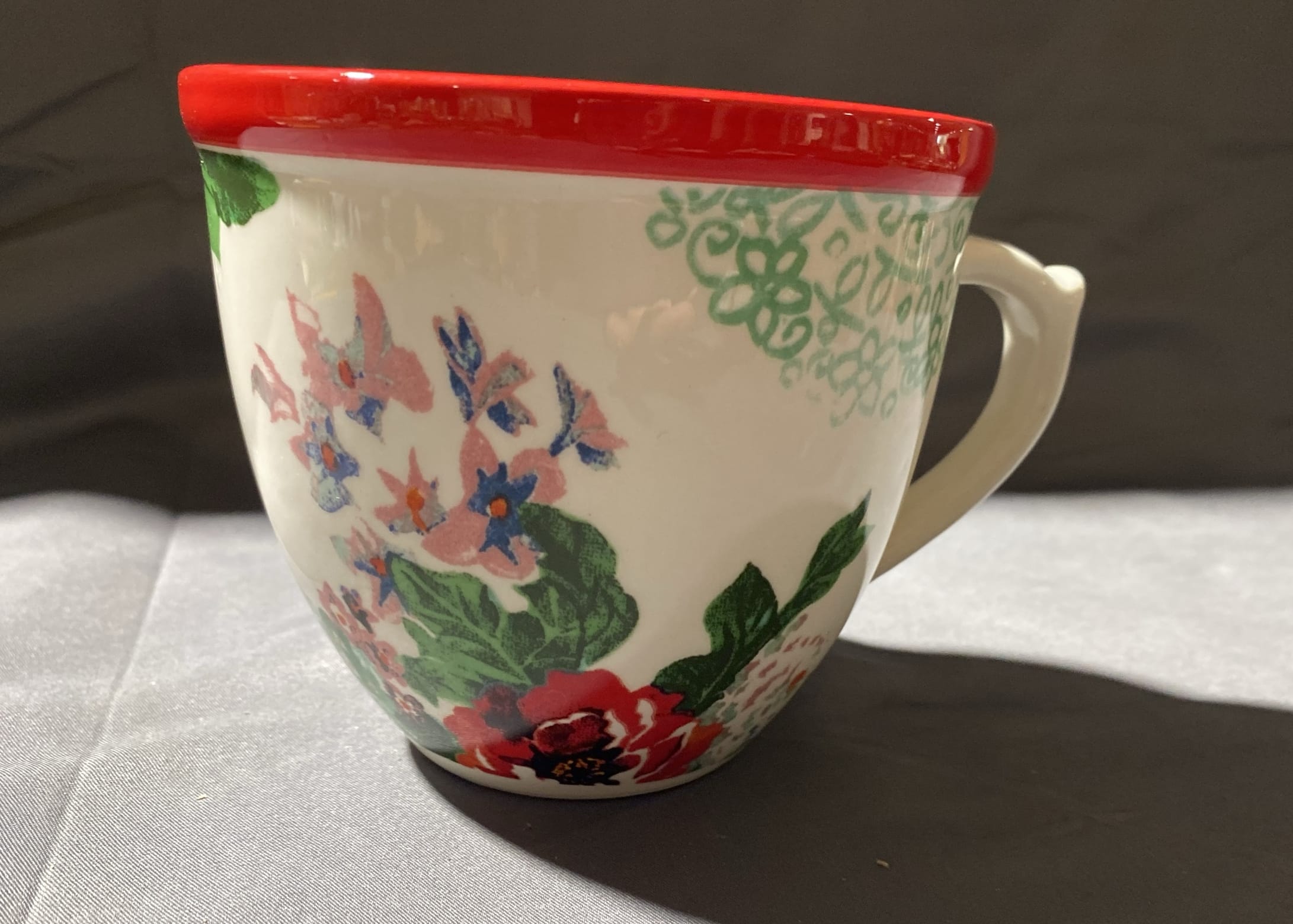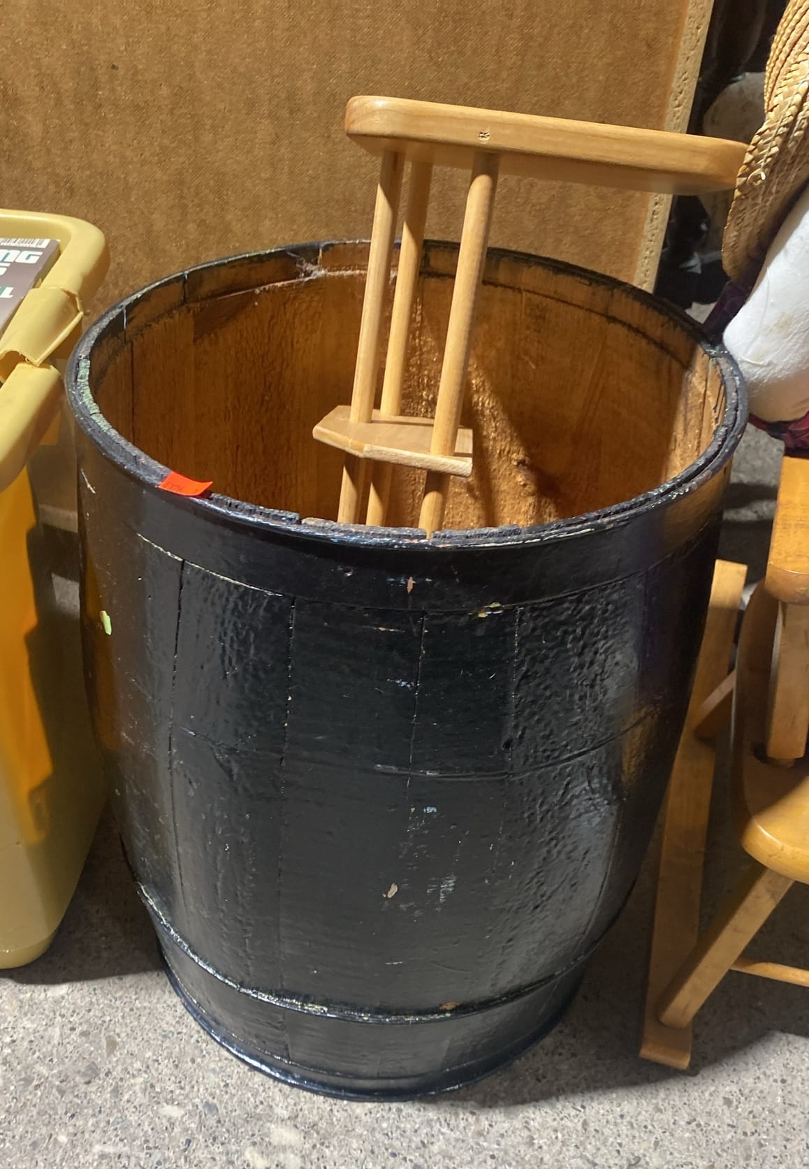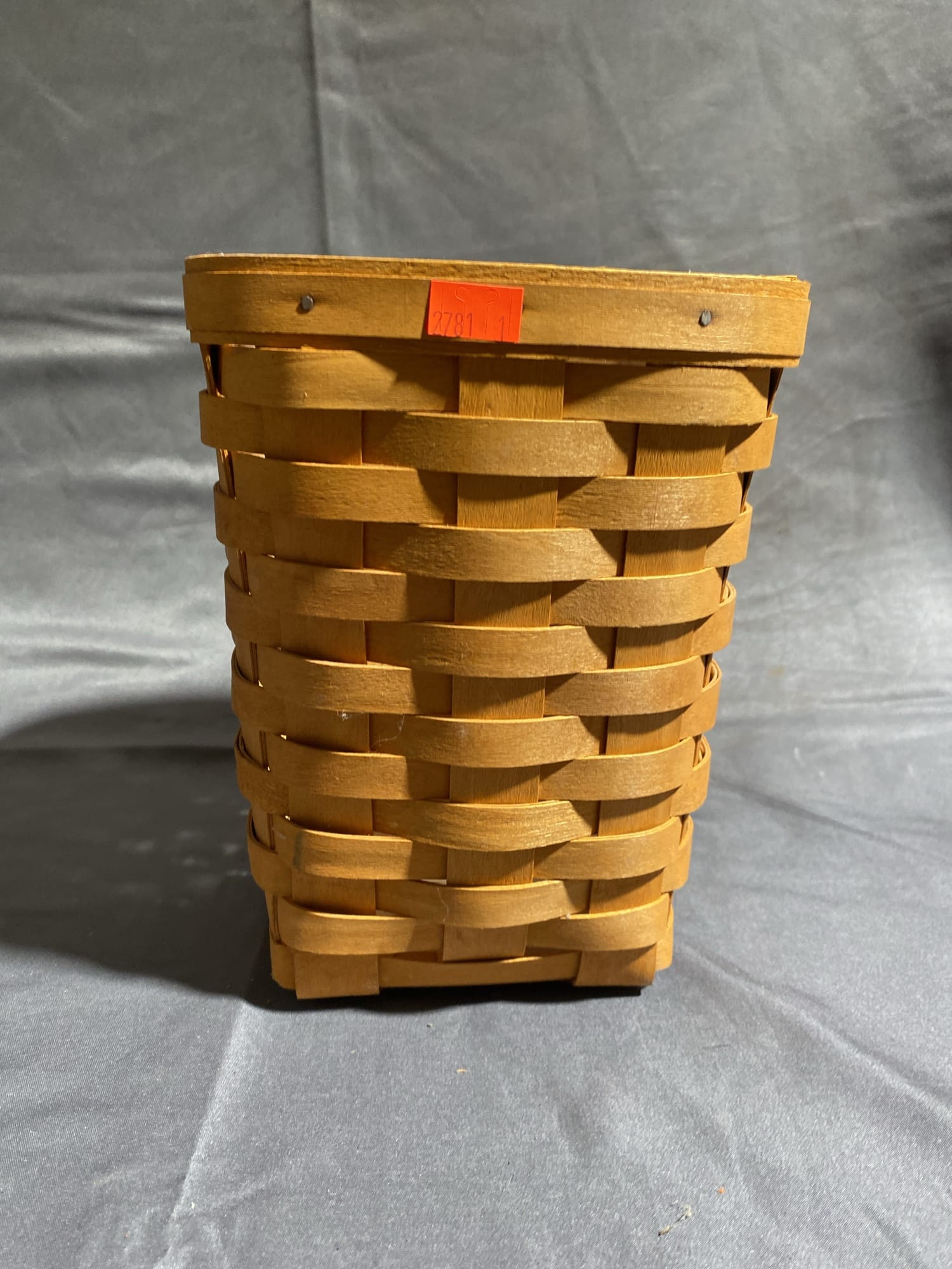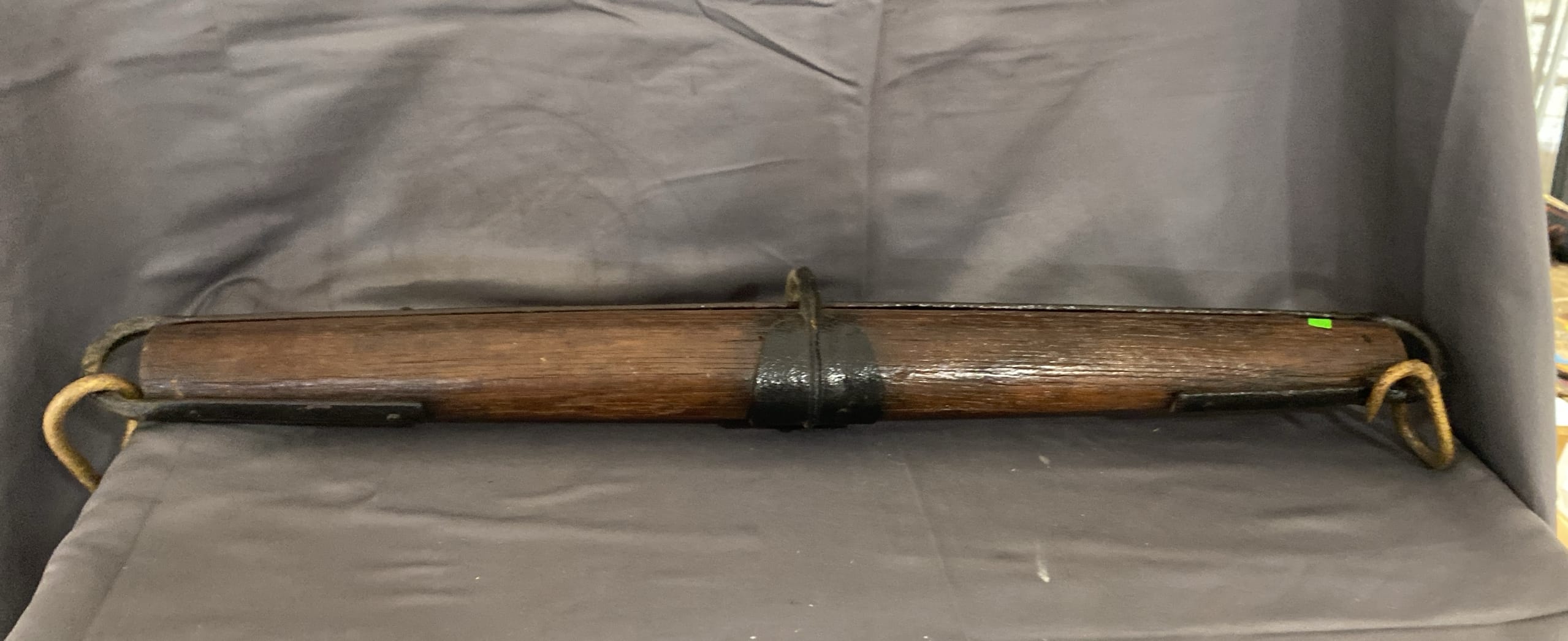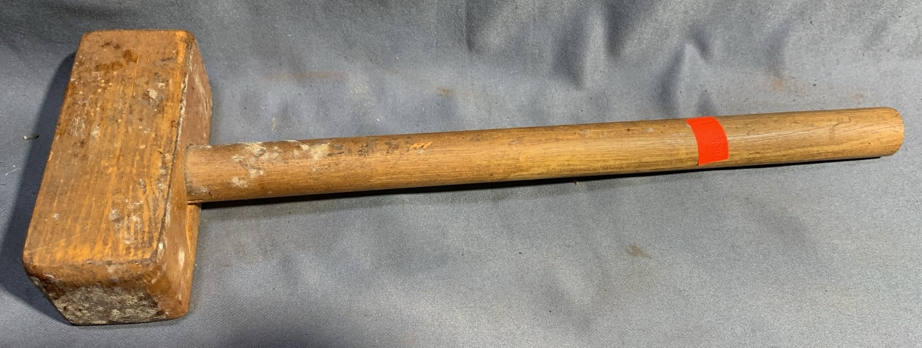 2006 Stoneware Crock W/ Wood Utensil damaged rim 8”