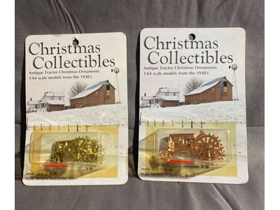 2037 2- Christmas Collectables Antique Tractor Christmas Ornaments 1-64 Scale Model 19302
