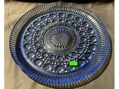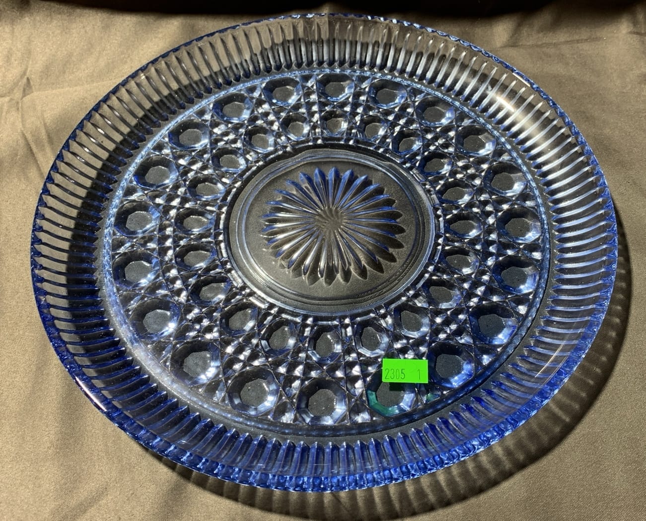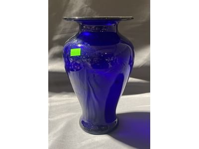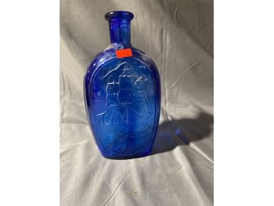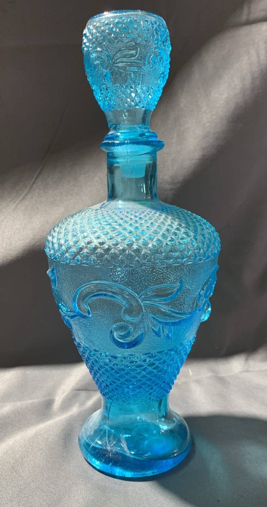2048 Blue Glass Franklin’s TWD Decanter, Missing Stopper 9”