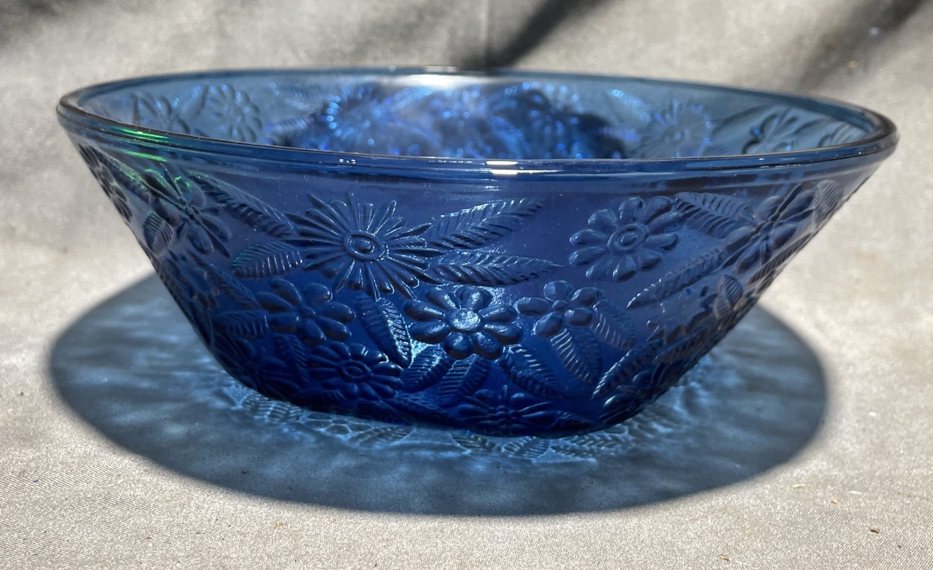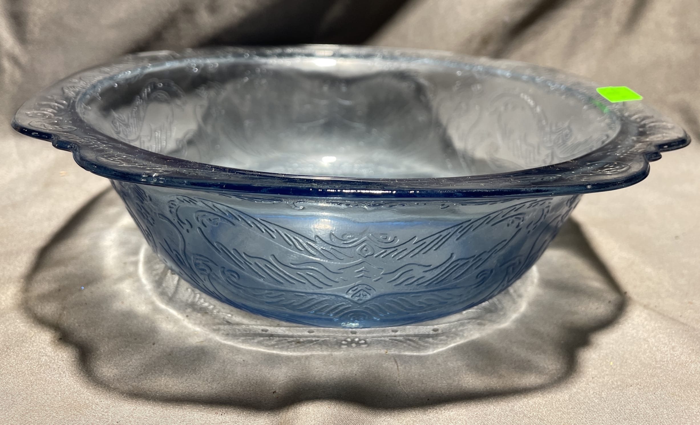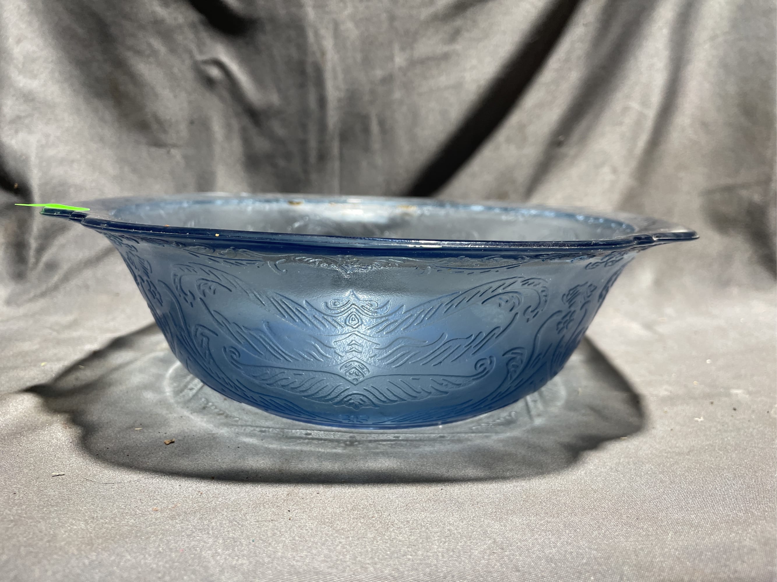 2048 Blue Glass Franklin’s TWD Decanter, Missing Stopper 9”