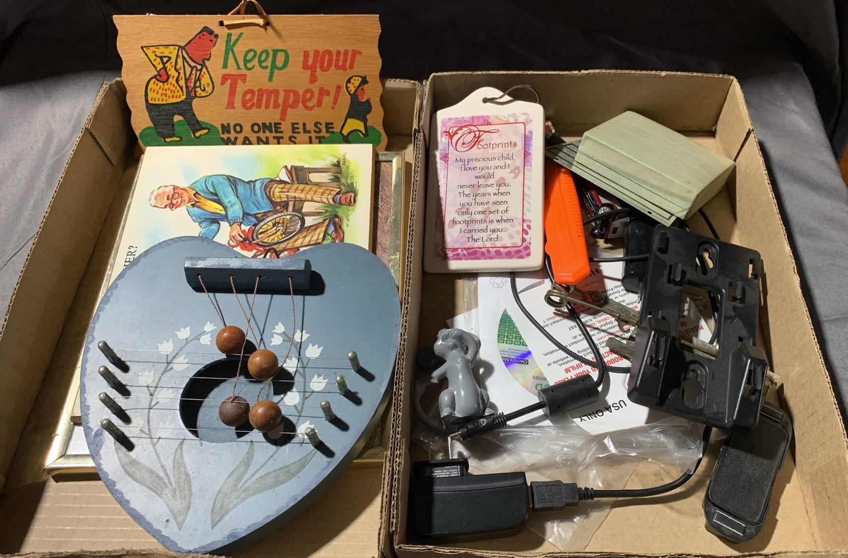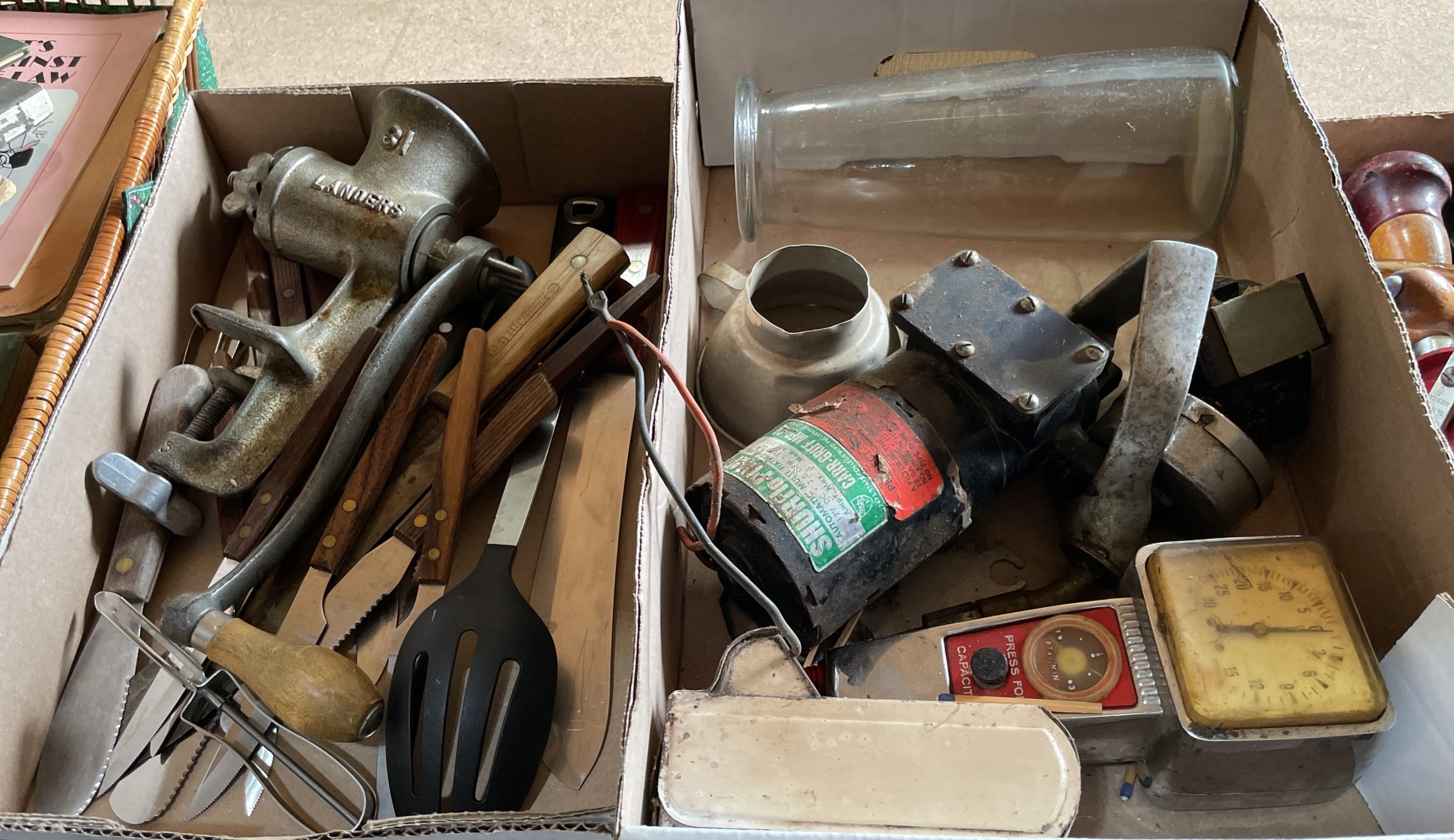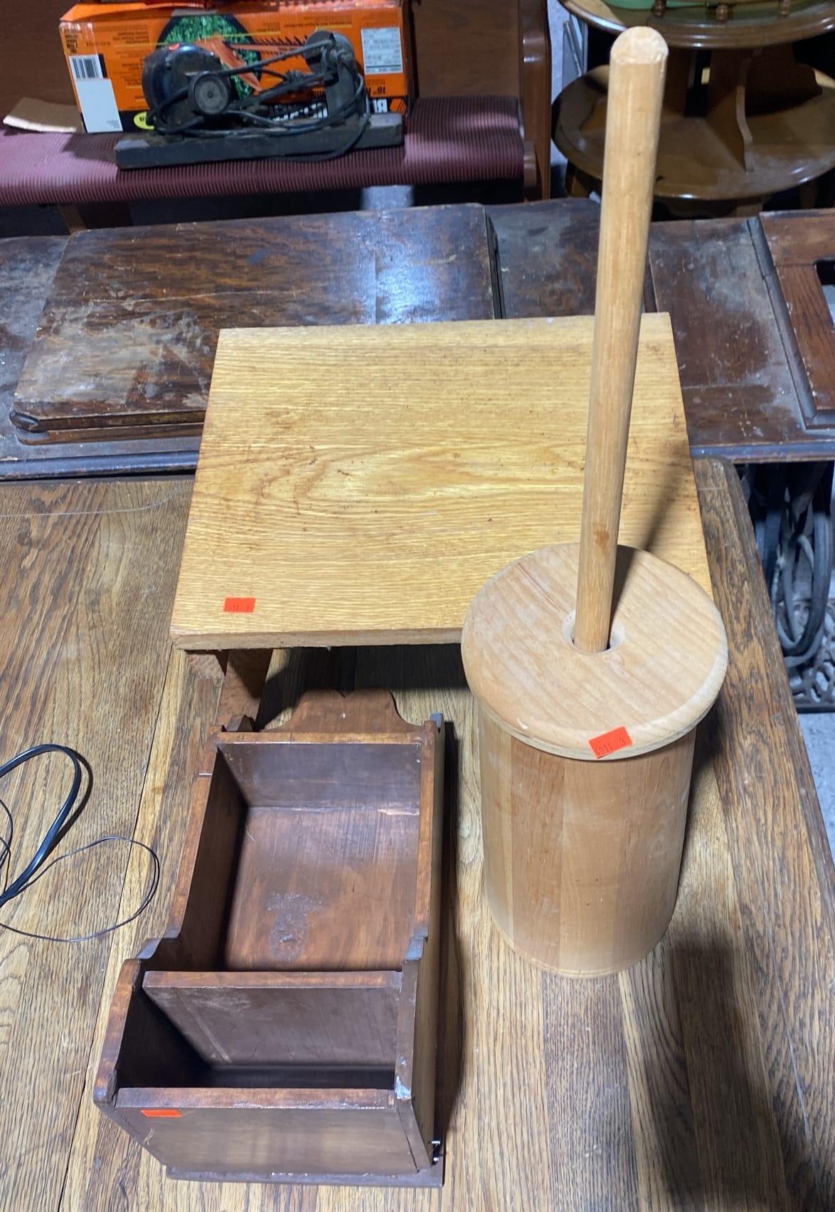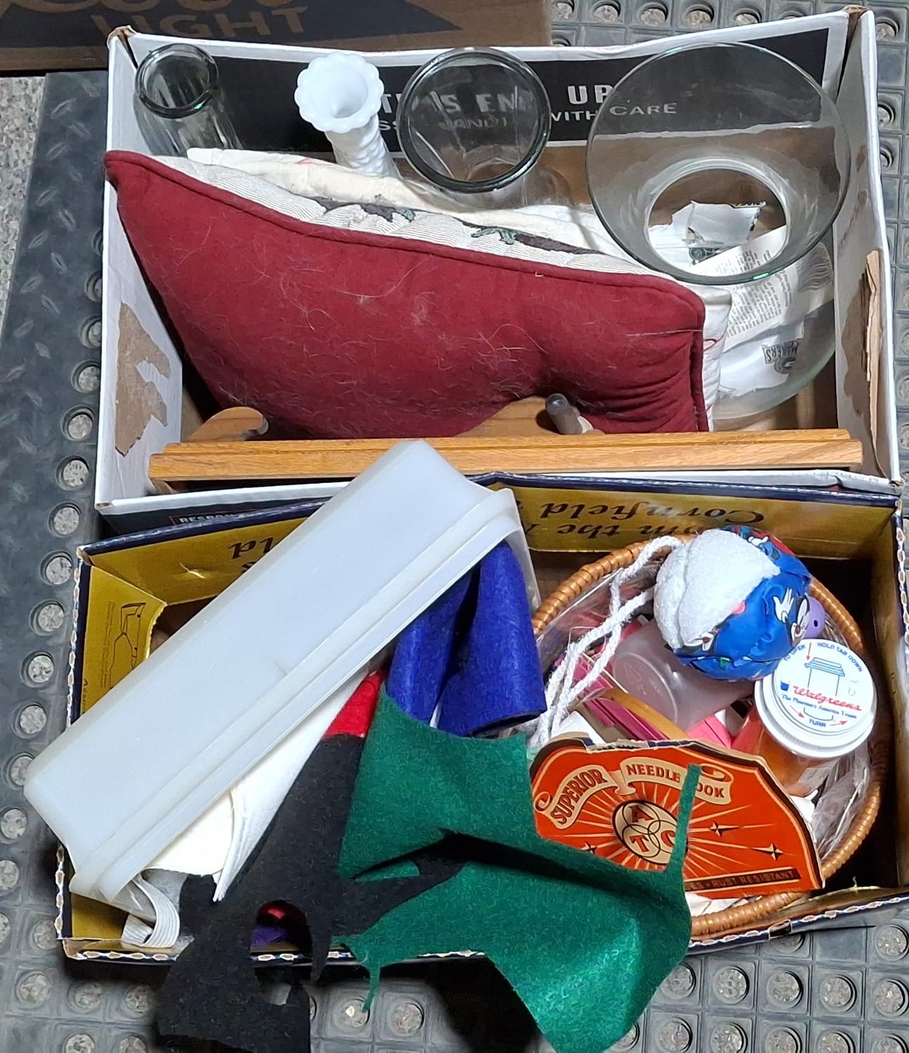 2001 Knife Sharpener, Crochet Hook, Wood Container