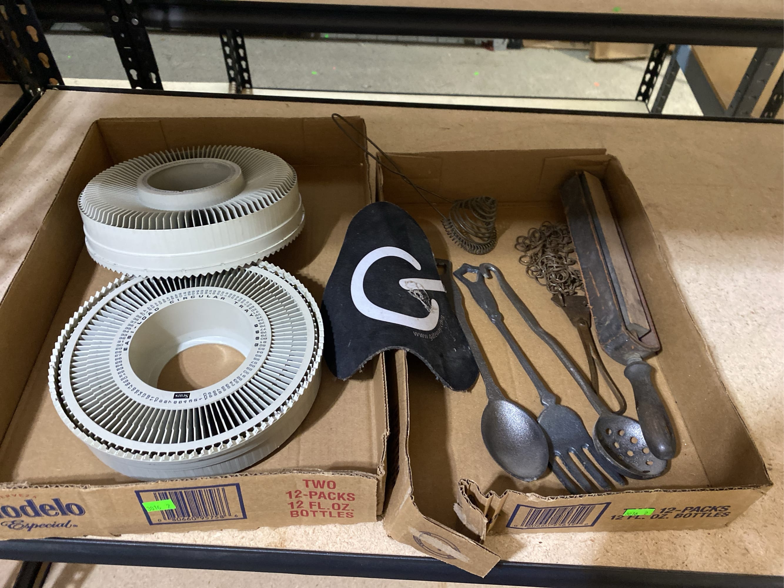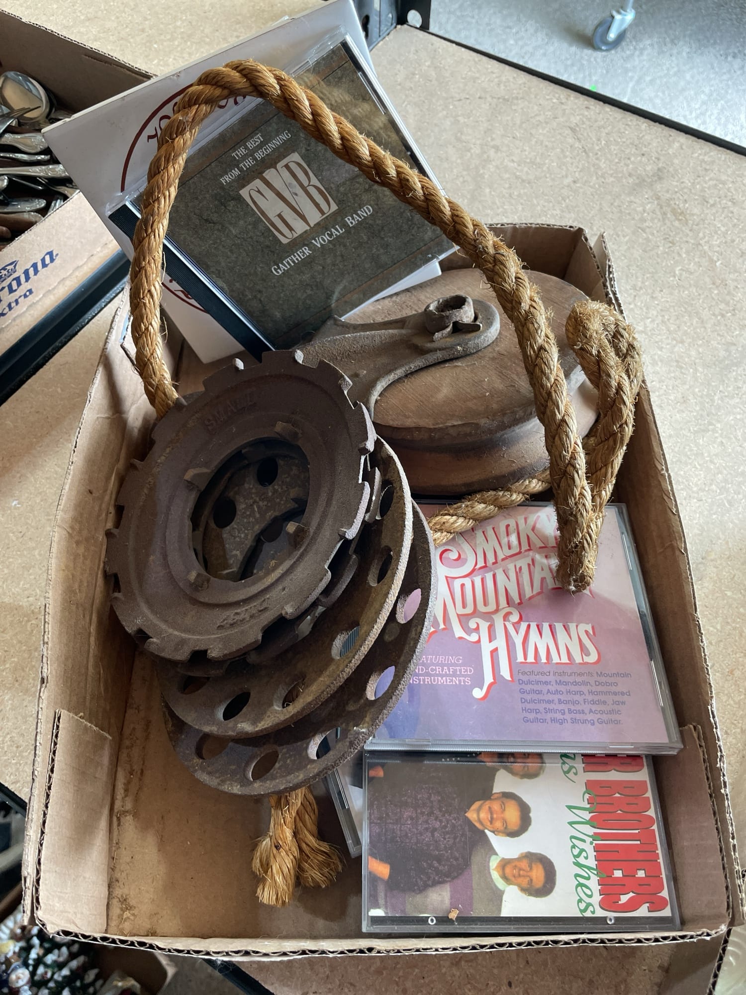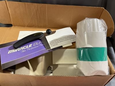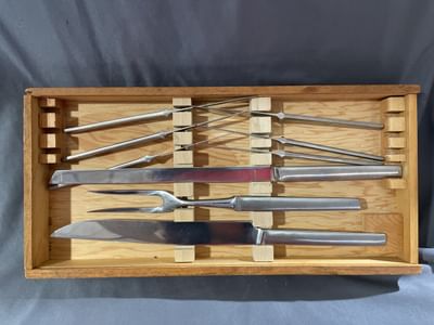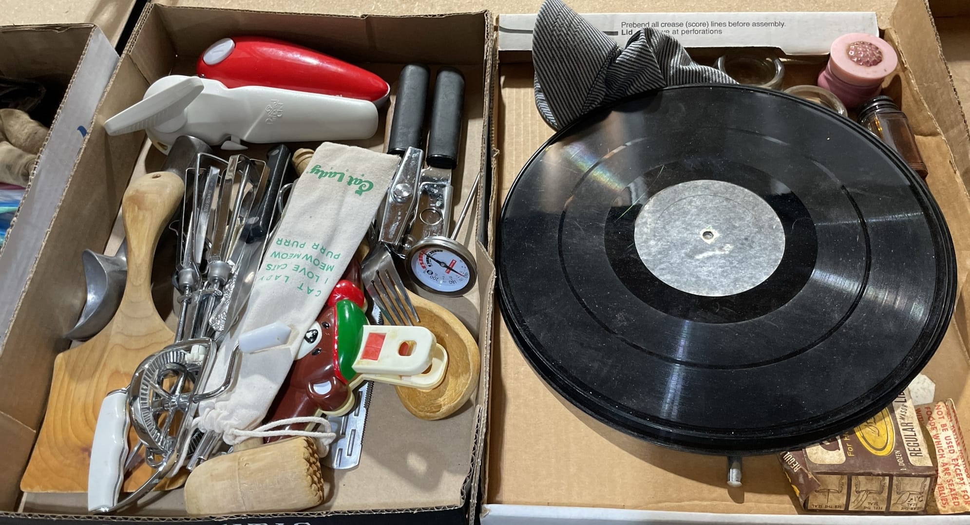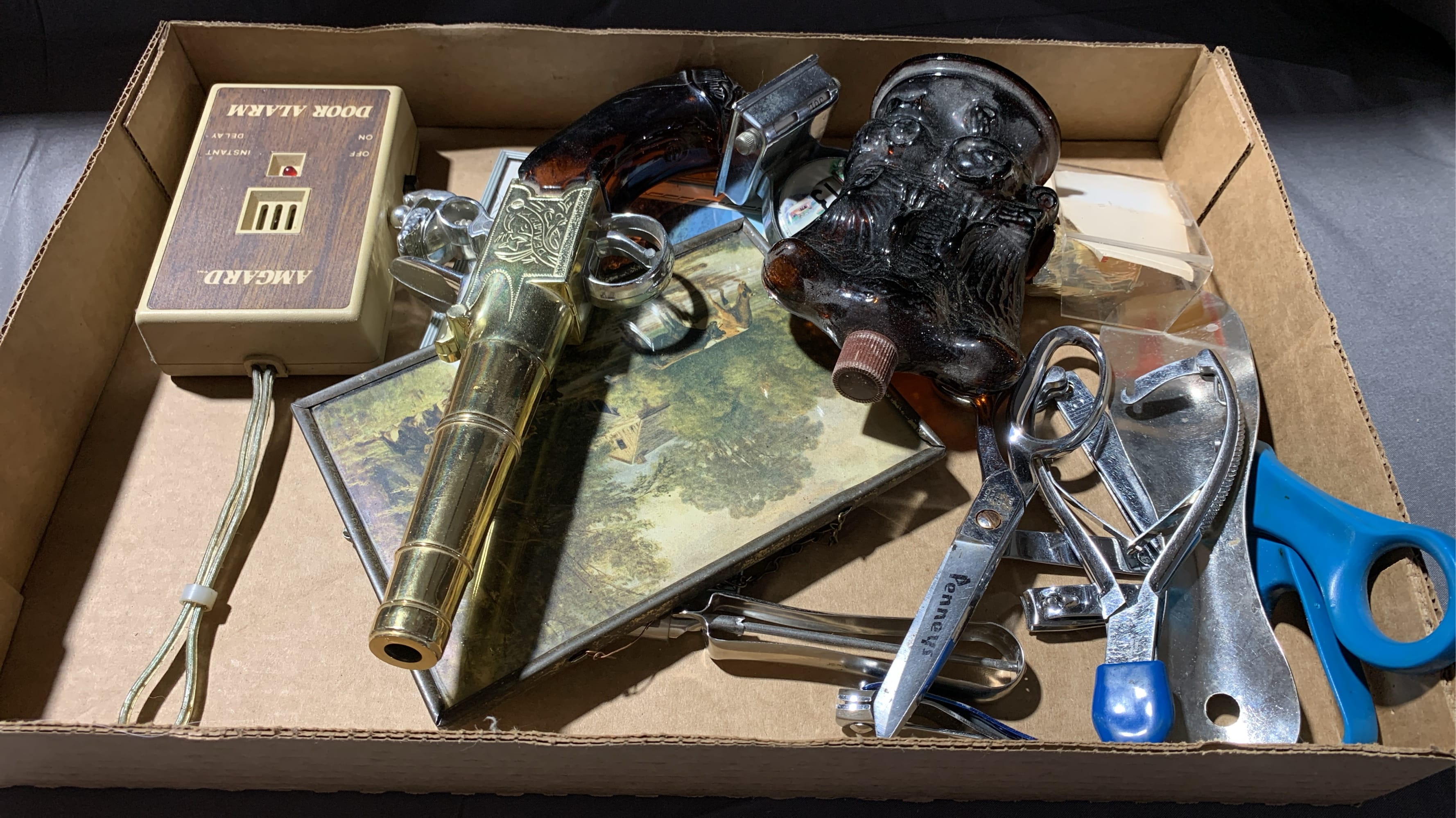 2001 Knife Sharpener, Crochet Hook, Wood Container