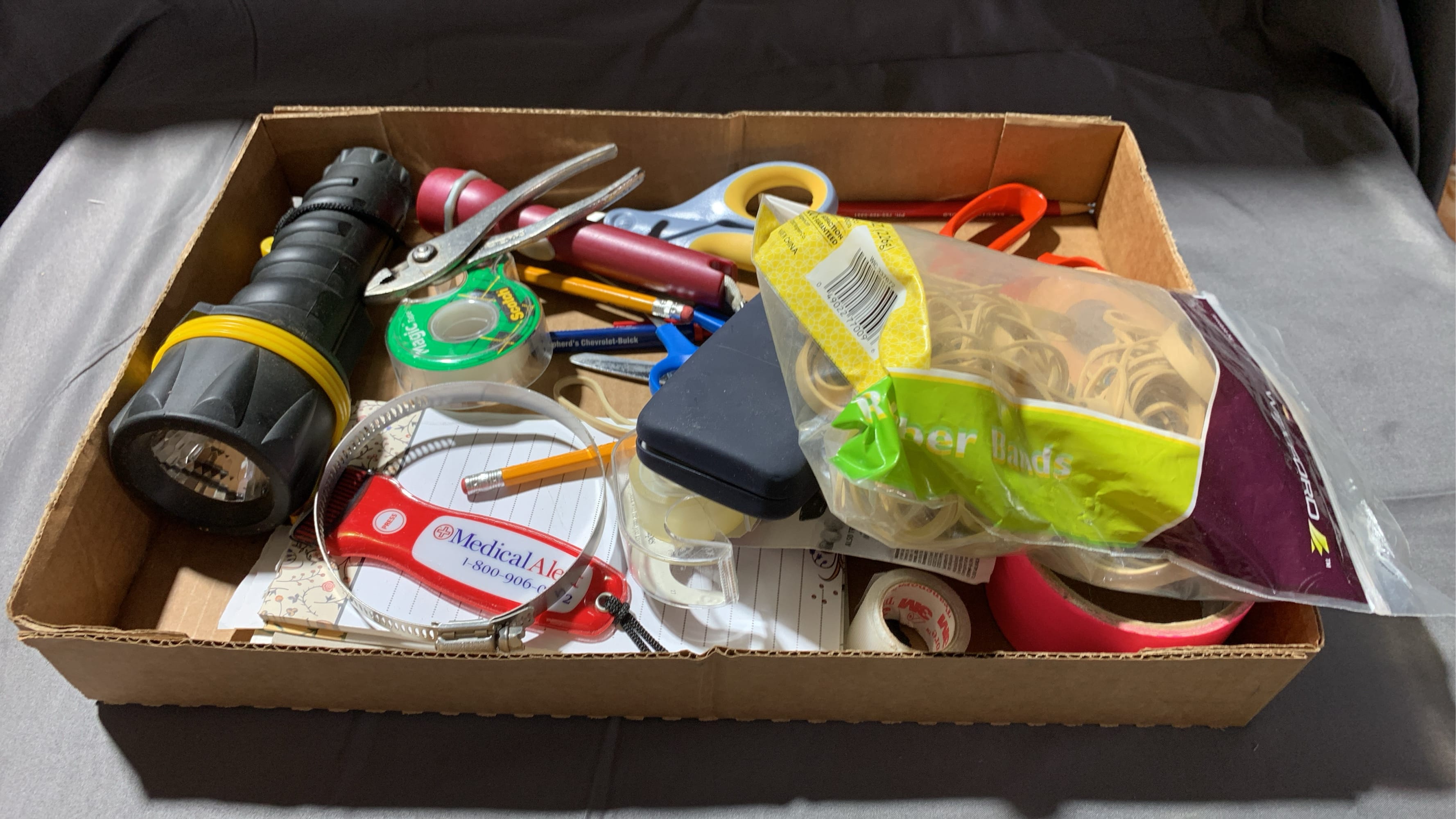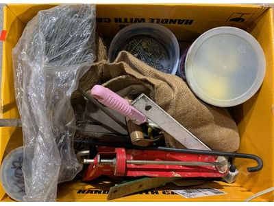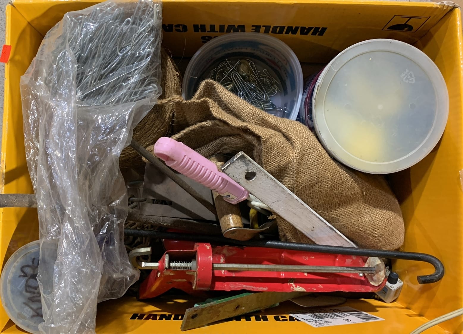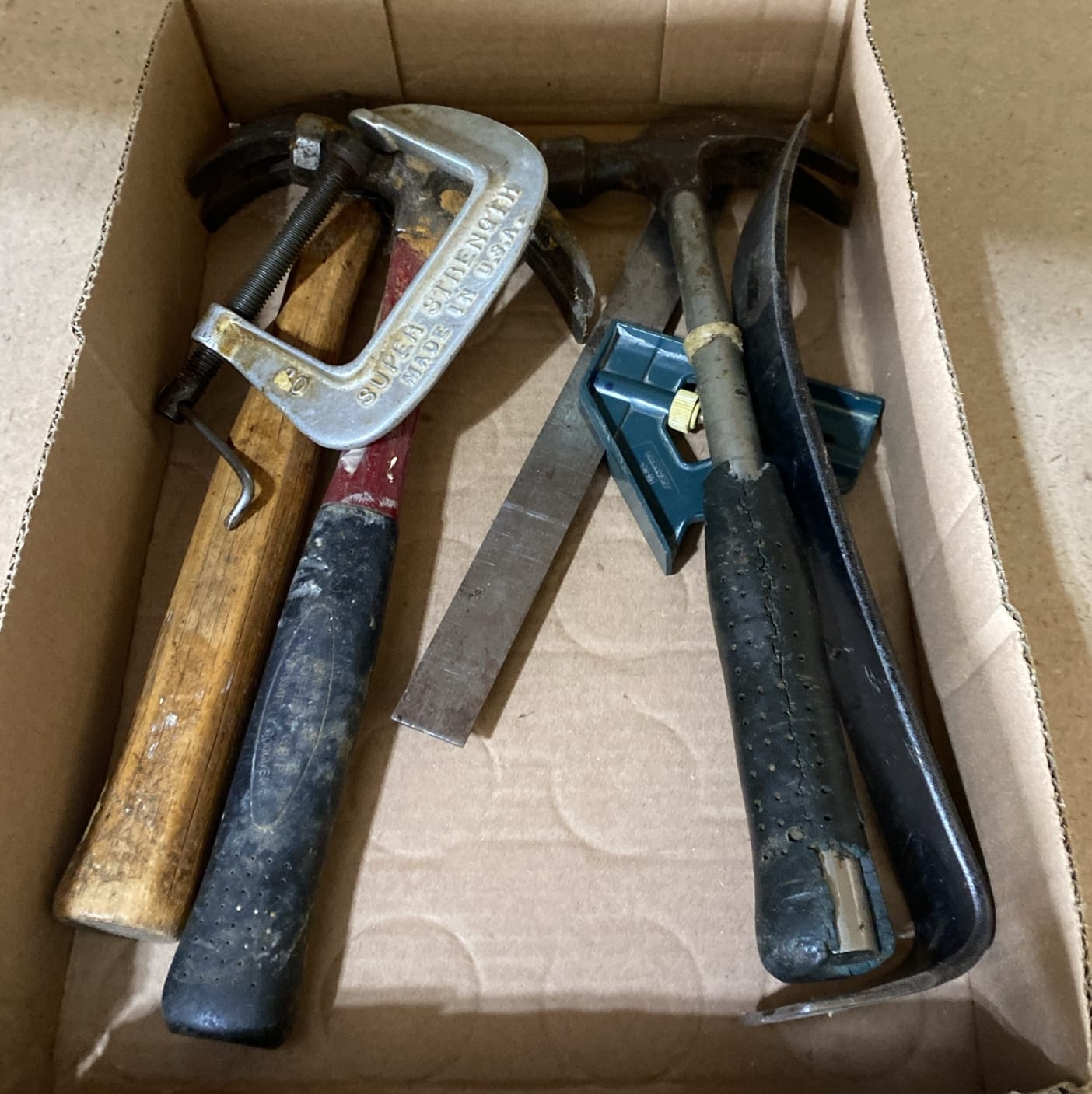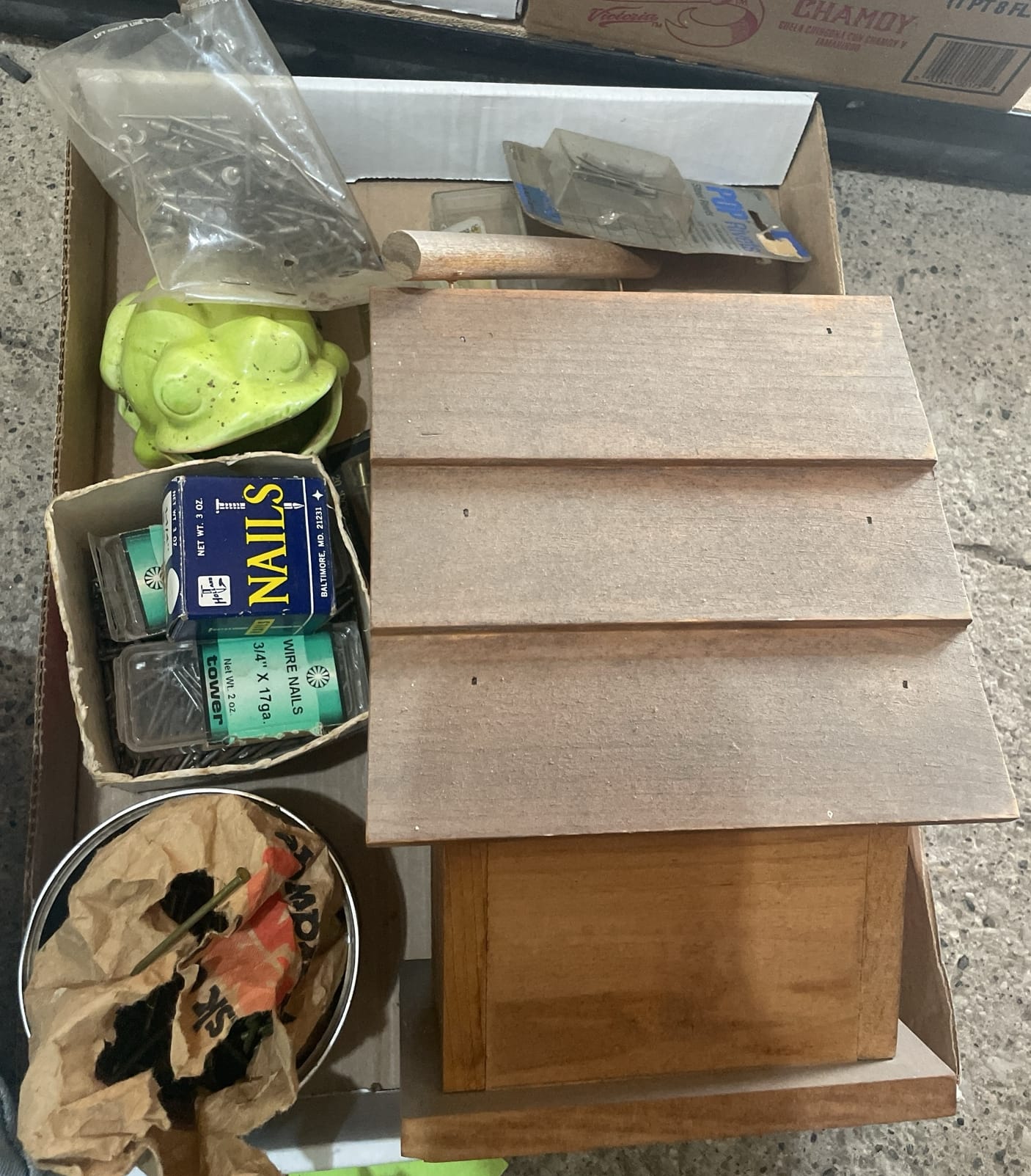 2001 Knife Sharpener, Crochet Hook, Wood Container