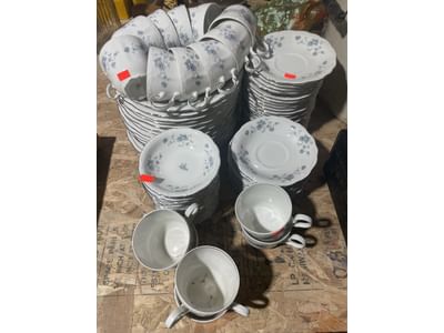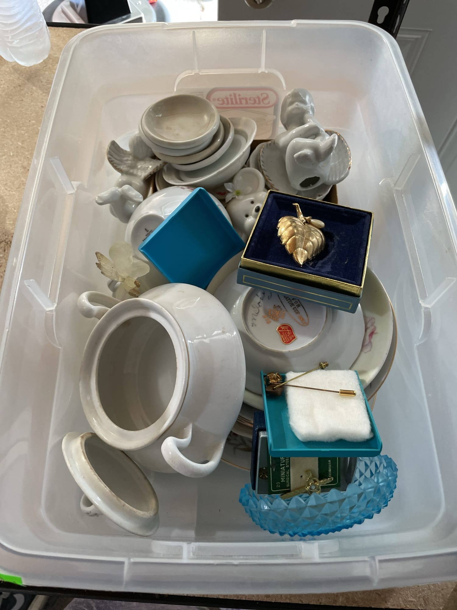 10172 (2) Home Interiors & Gifts Denim Days figurines- 2006 #15001 Shamrocks & Daffodils, 2004 #14040 Debbie’s Afternoon Tea