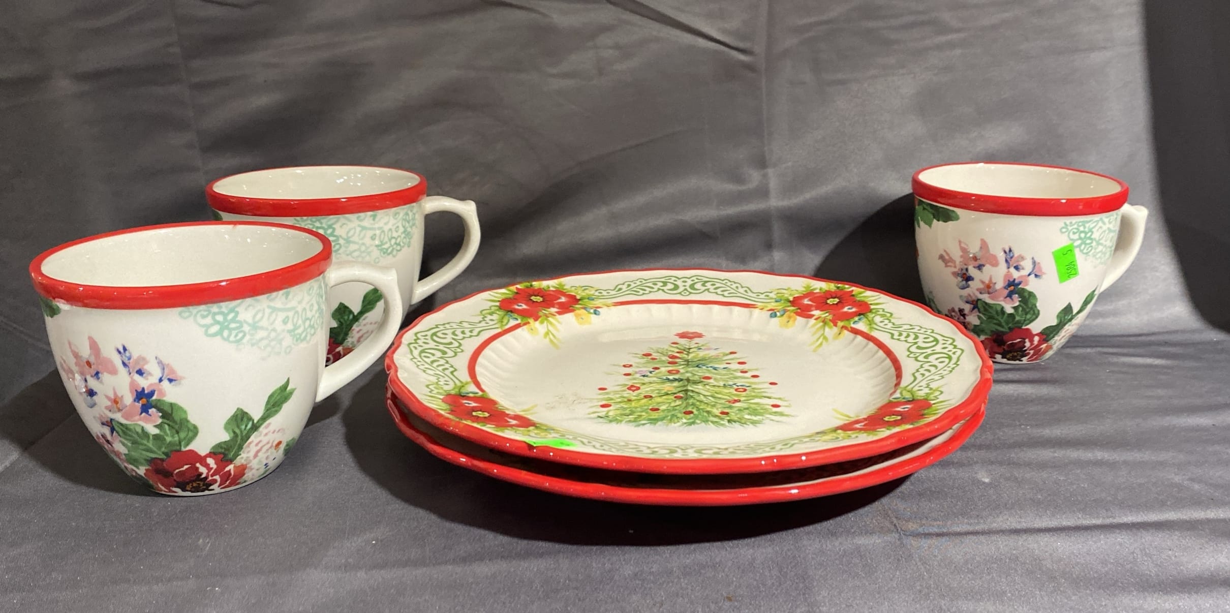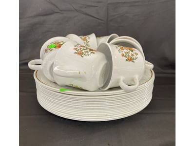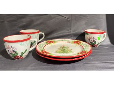 10202 International tableworks 1995 Appletime stoneware dish set including plates, shallow bowls, mugs