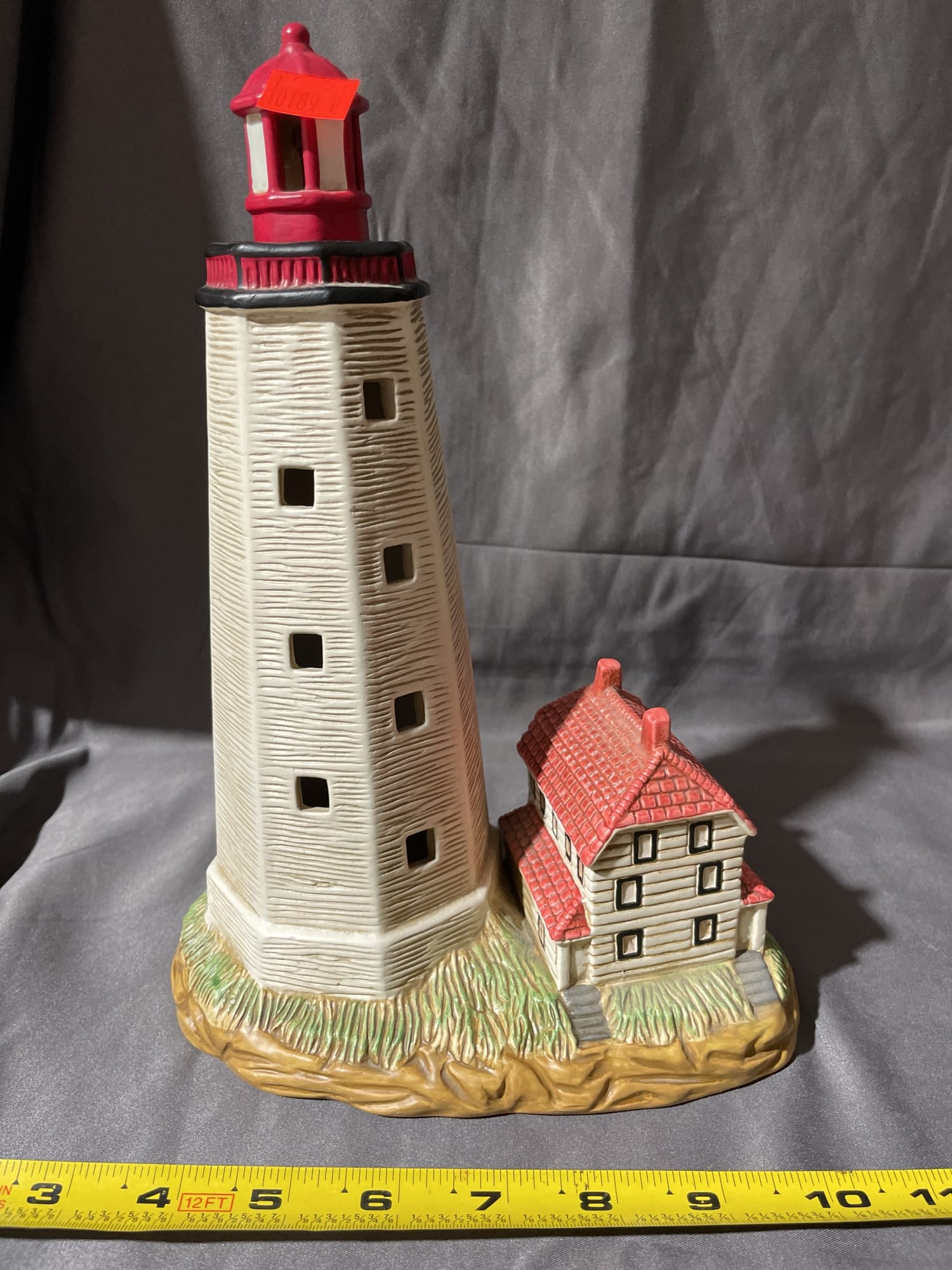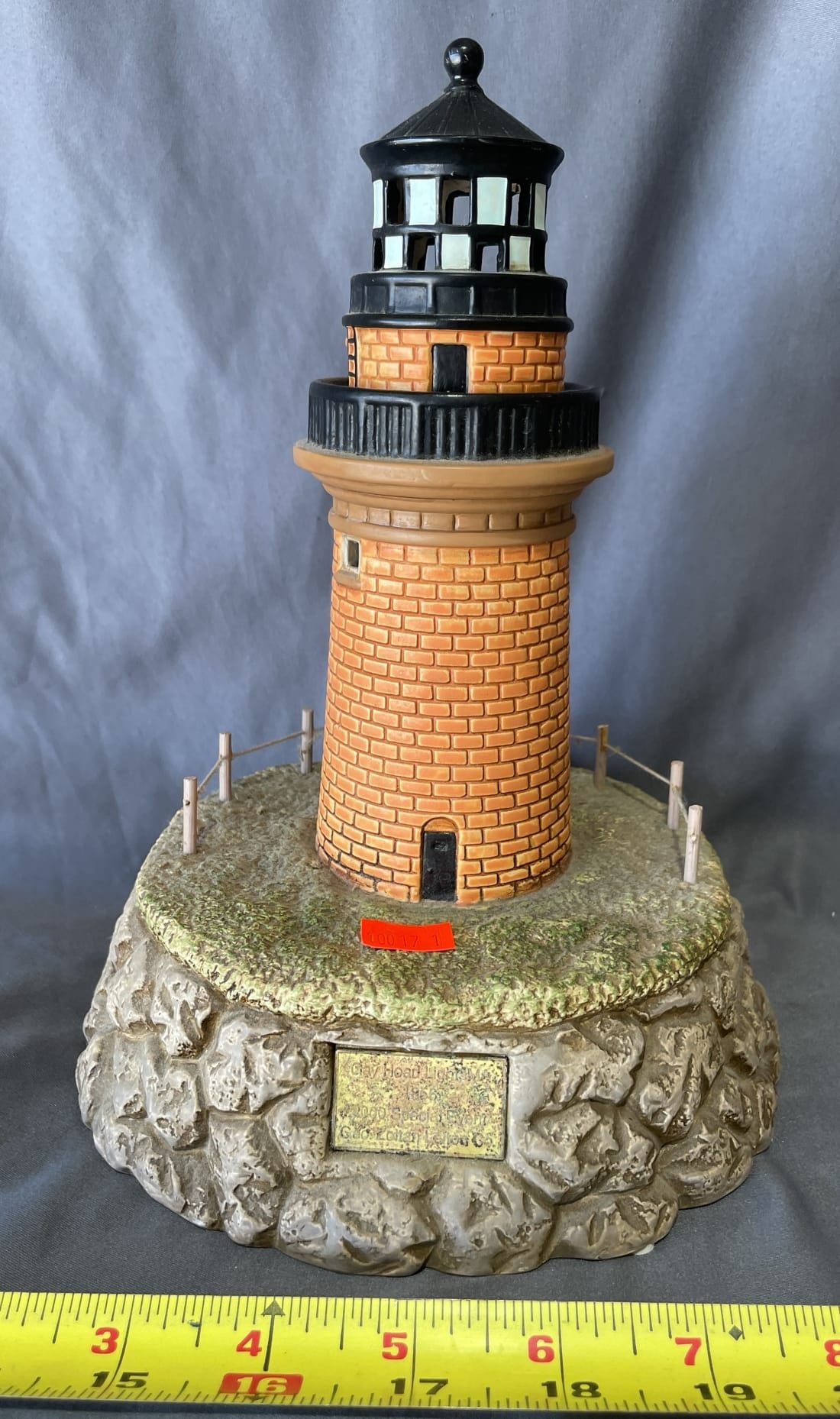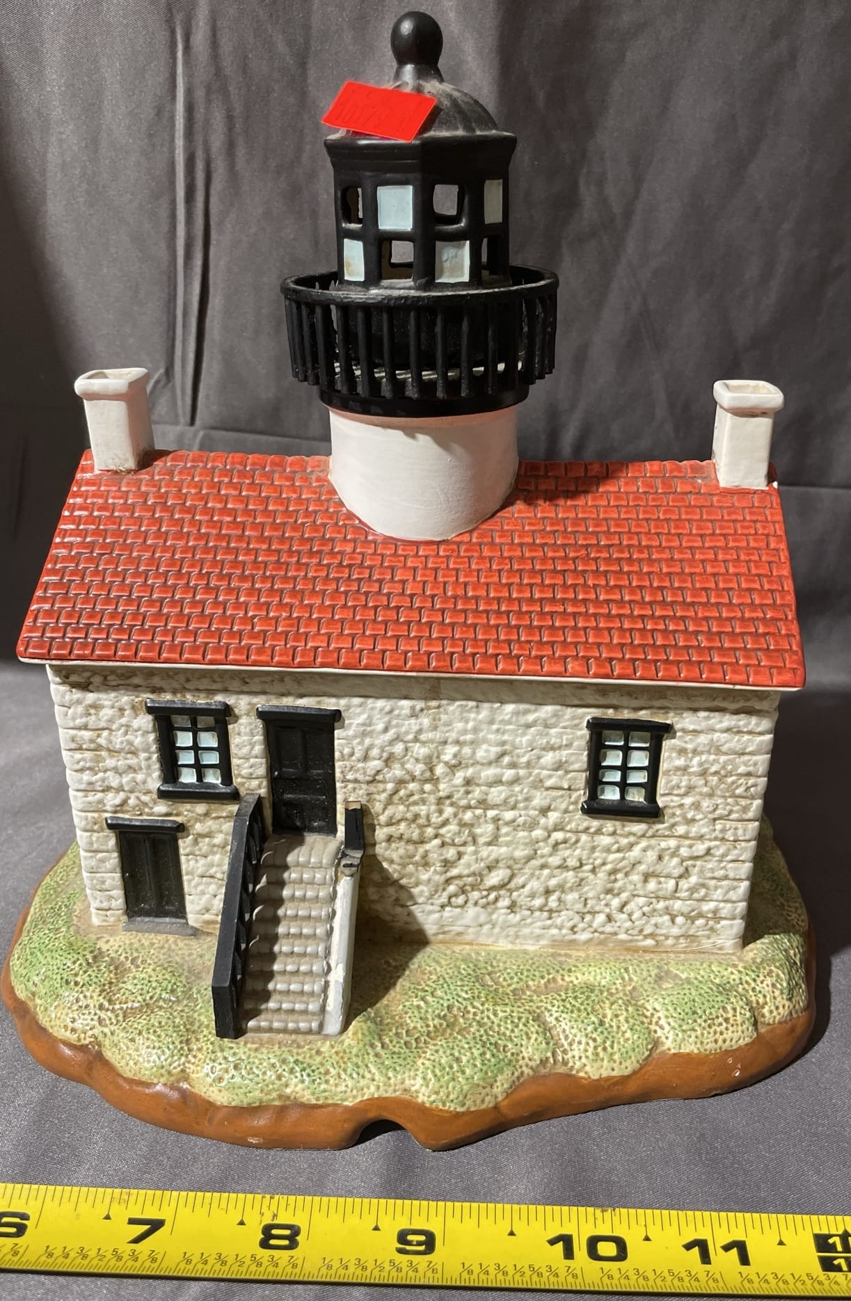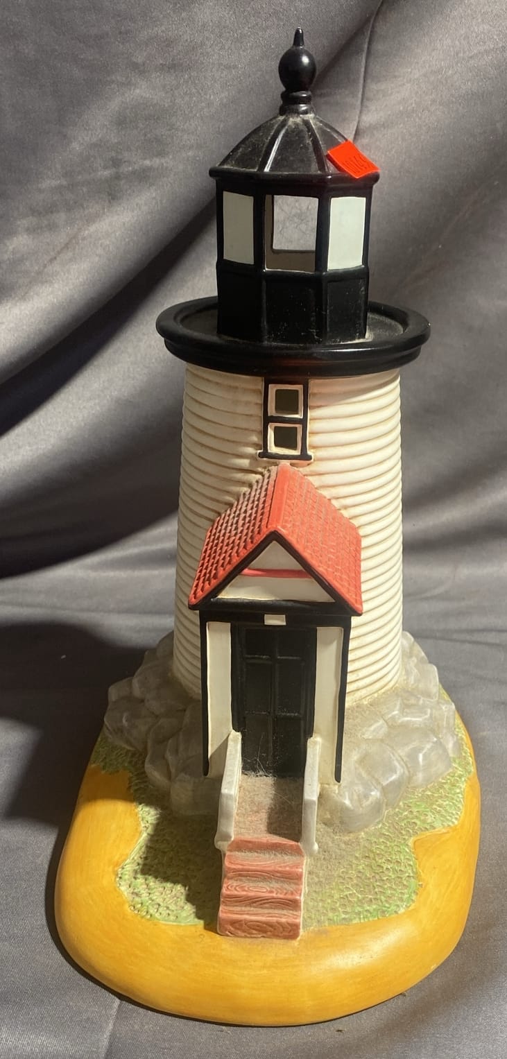 10180 Lefton 1995 Block Island Southeast Light portable lamp lighthouse figurine 9”