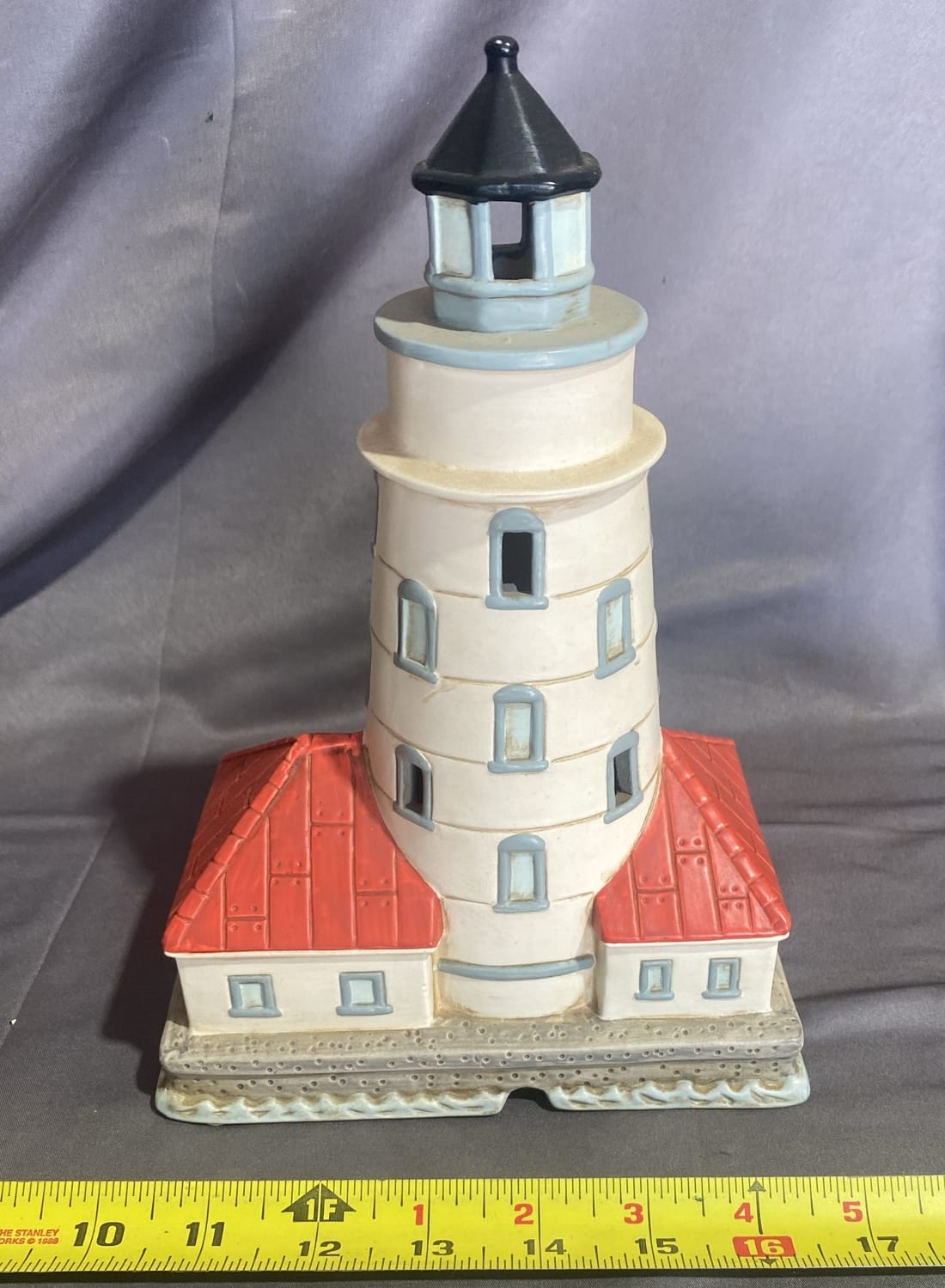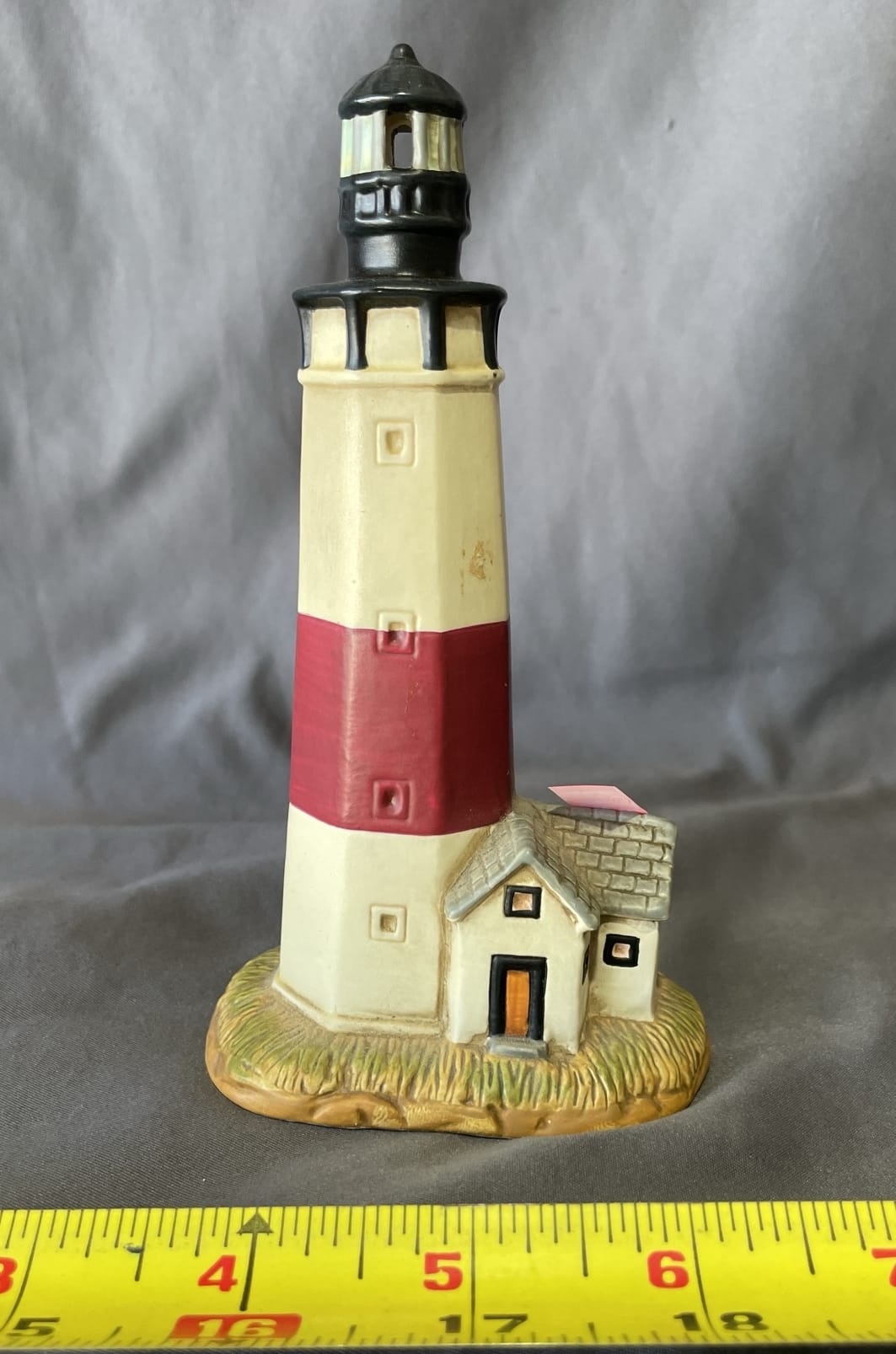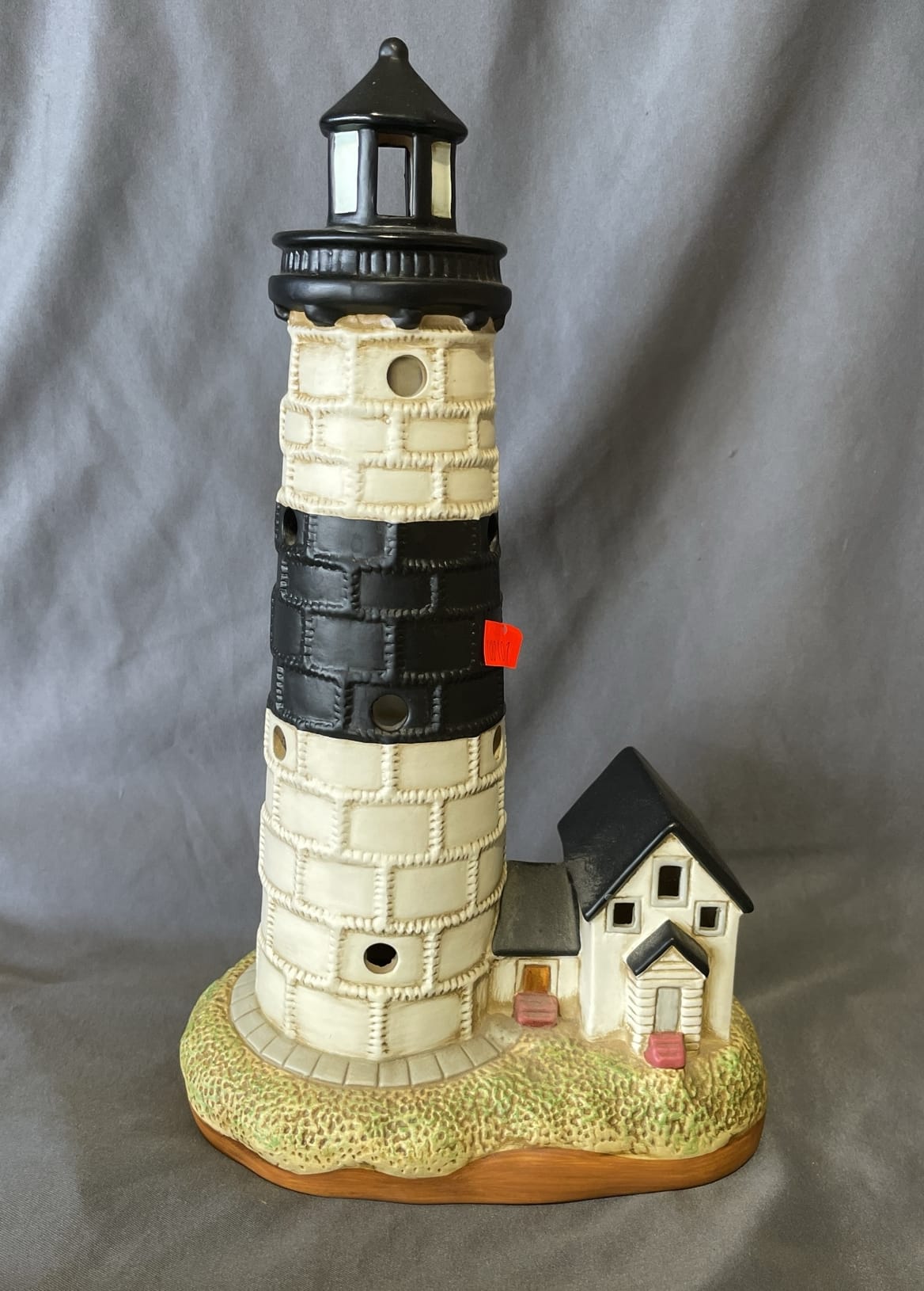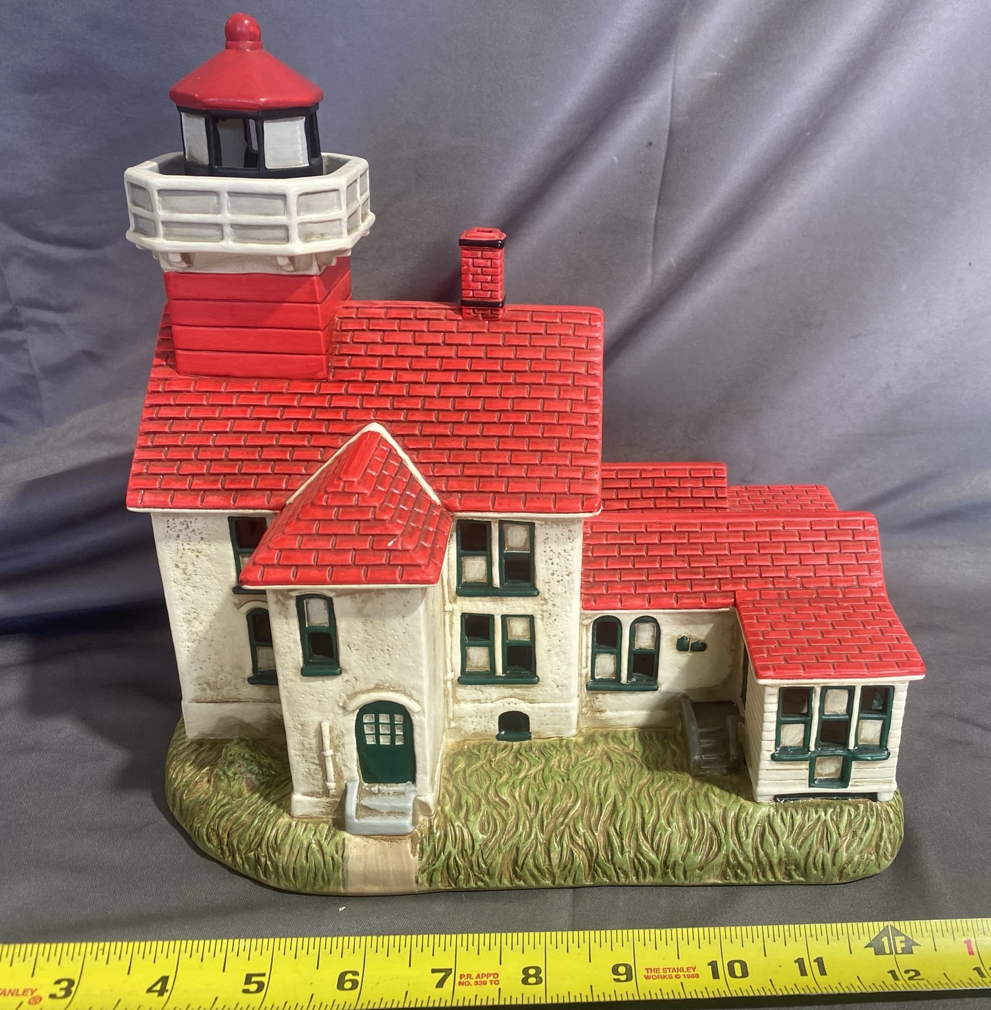 10180 Lefton 1995 Block Island Southeast Light portable lamp lighthouse figurine 9”