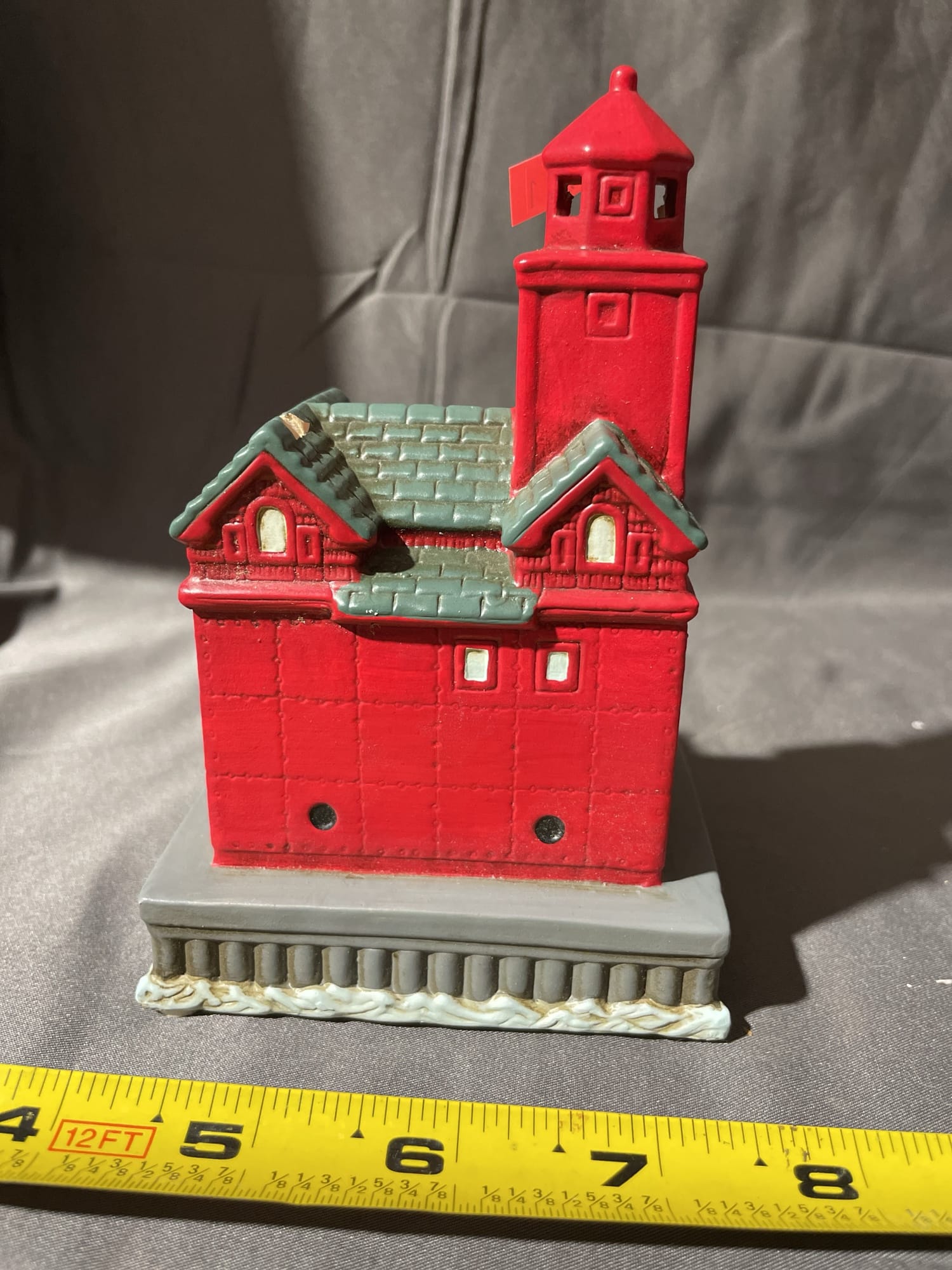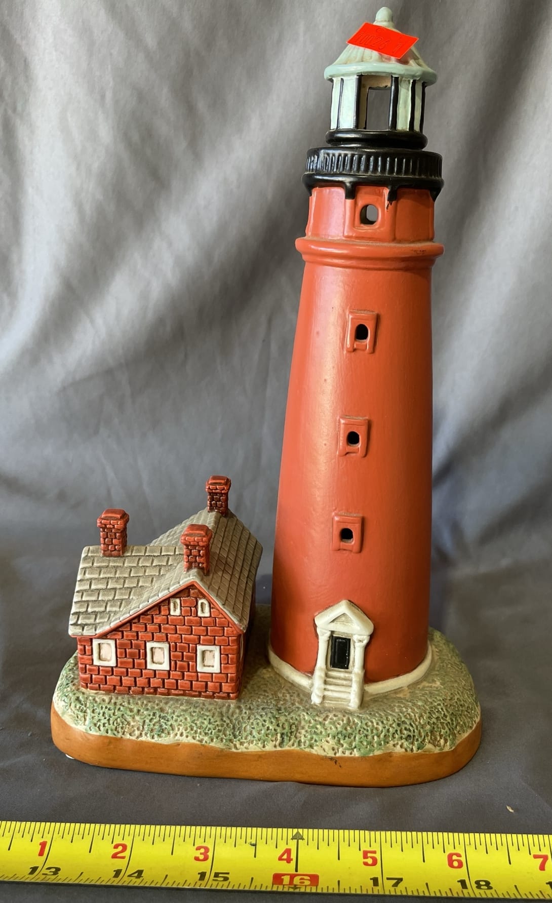 10177 Lefton 1995 Buffalo portable lamp lighthouse figurine 11”