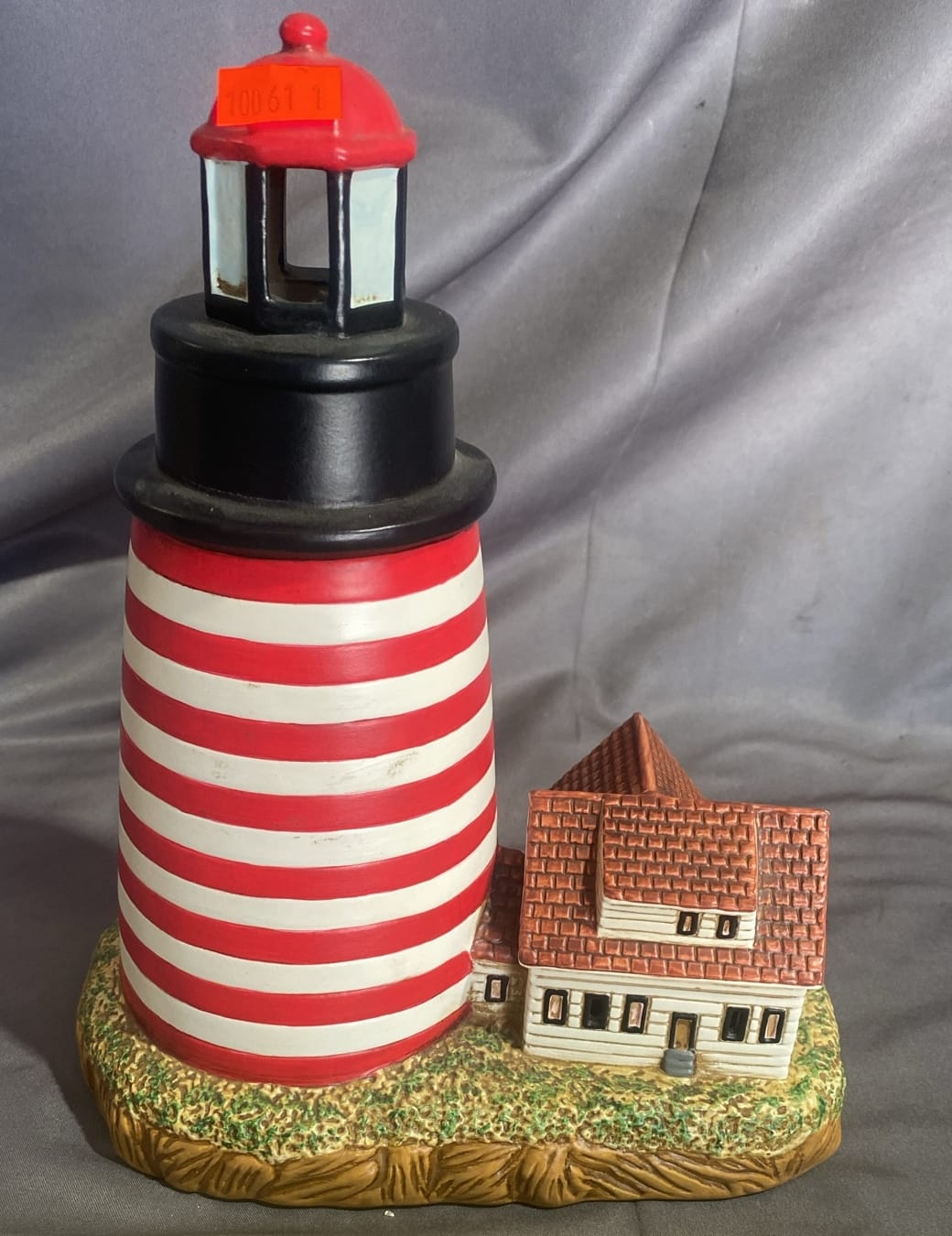10181 Lefton 1995 Cape Neddick hand painted portable lamp lighthouse figurine 8”