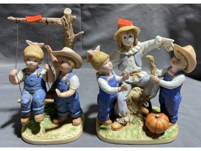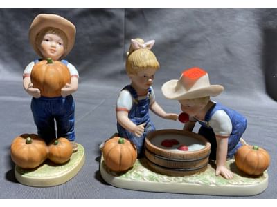 10143 (2) Homco Home Interiors & Gifts Denim Days figurines- 1997 #1531 The Prize Pumpkin & 1985 #8888