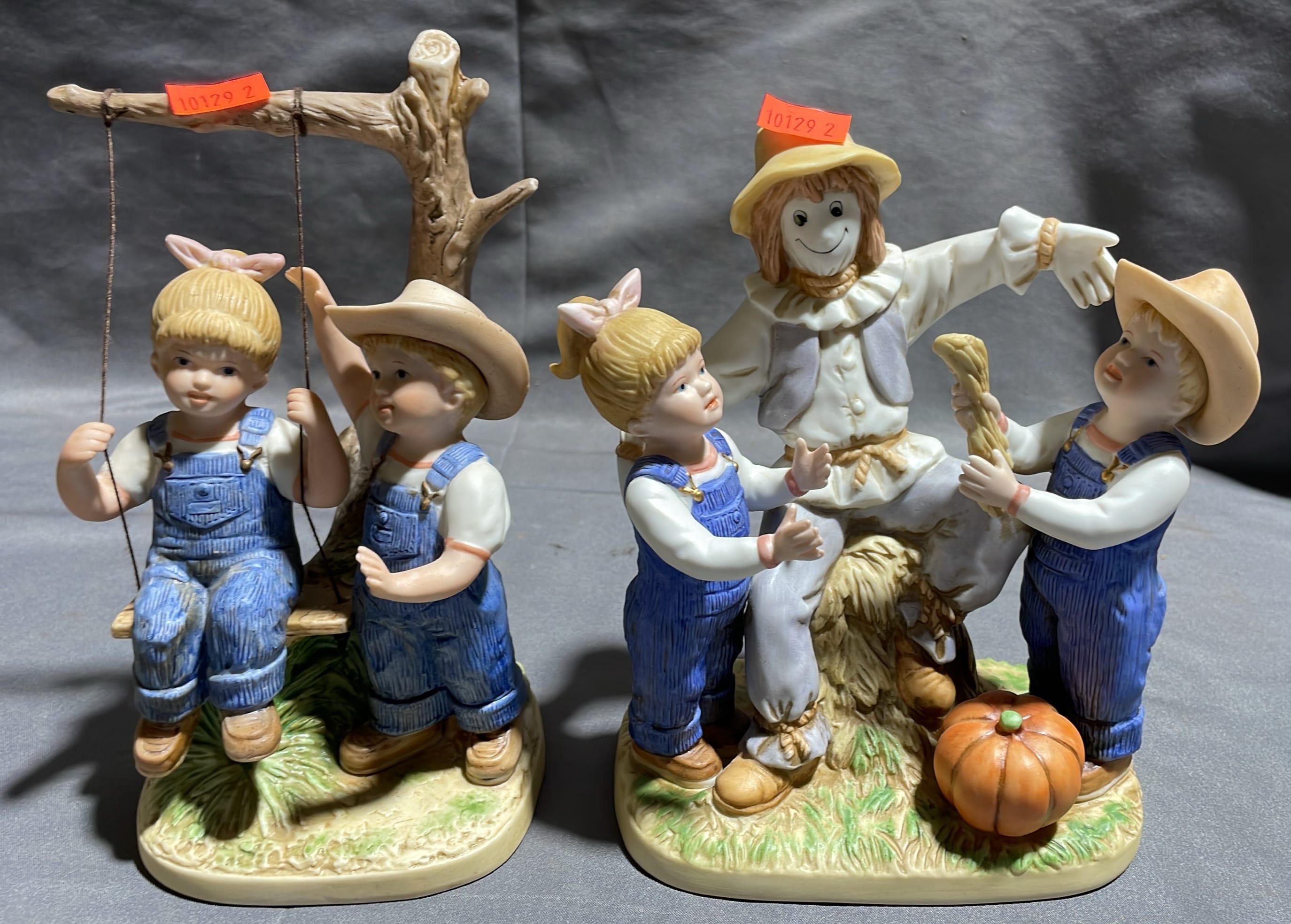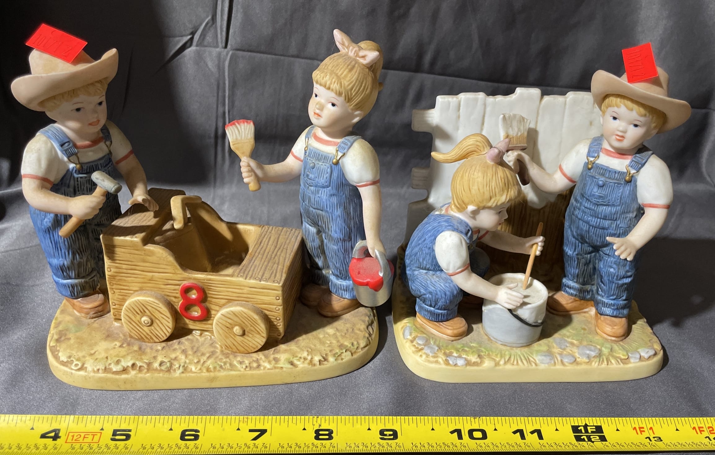 10171 (2) Home Interiors & Gifts Denim Days figurines- 2000 #15352 The Go Cart & 2001 #15353 Whitewashing the Fence