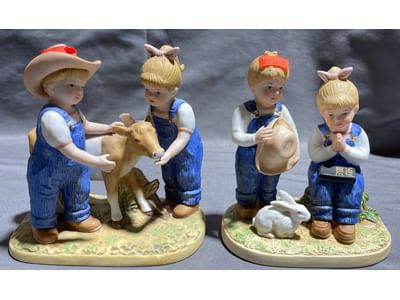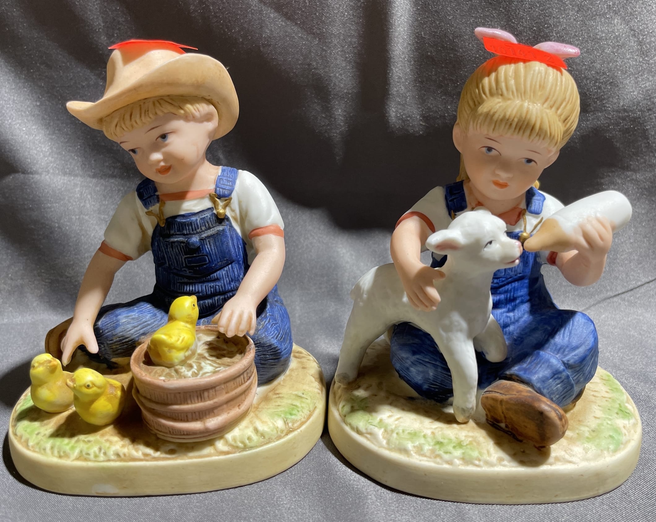 10134 (2) Homco Home Interiors & Gifts Denim Days figurines- 1998 #88351 Barnyard Baby & 1985 #8867