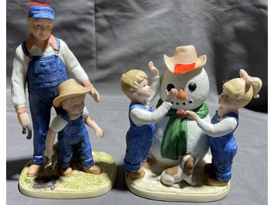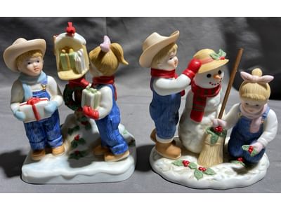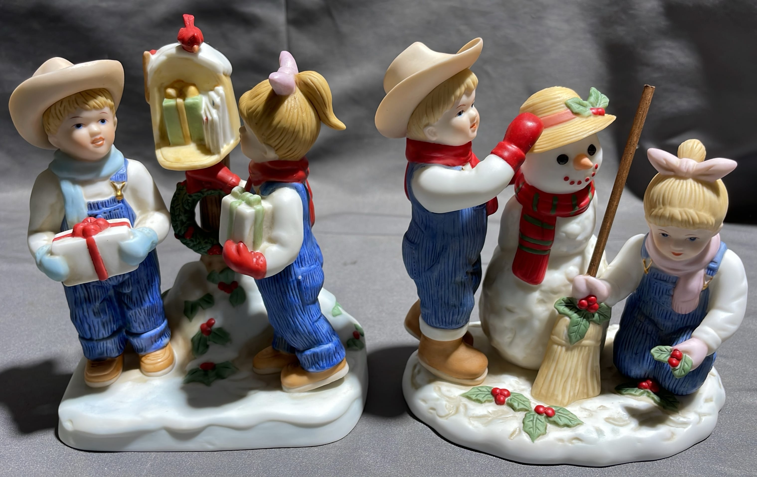 10144 (2) Homco Home Interiors & Gifts Denim Days figurines- 2004 #57064 Sharing the Joy of Christmas & 2003 #56072 Holiday Time Snowman