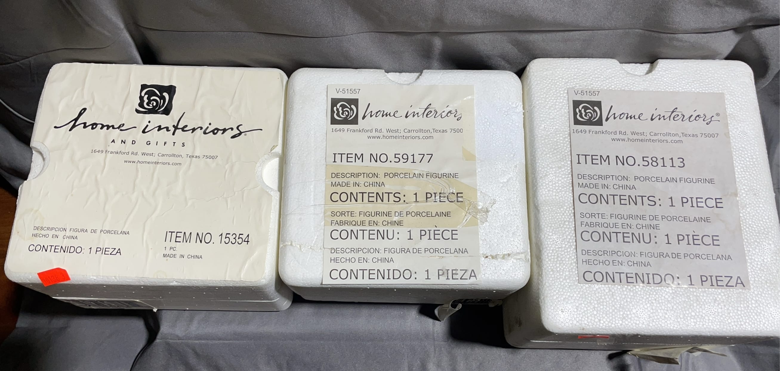 10138 (3) Homco Home Interiors & Gifts Denim Days figurines NIB- 2001 #15354 Bringing Home the Tree, 2005 #58113 Sharing Christmas Spirit & 2006 #59177 Cookies For Santa