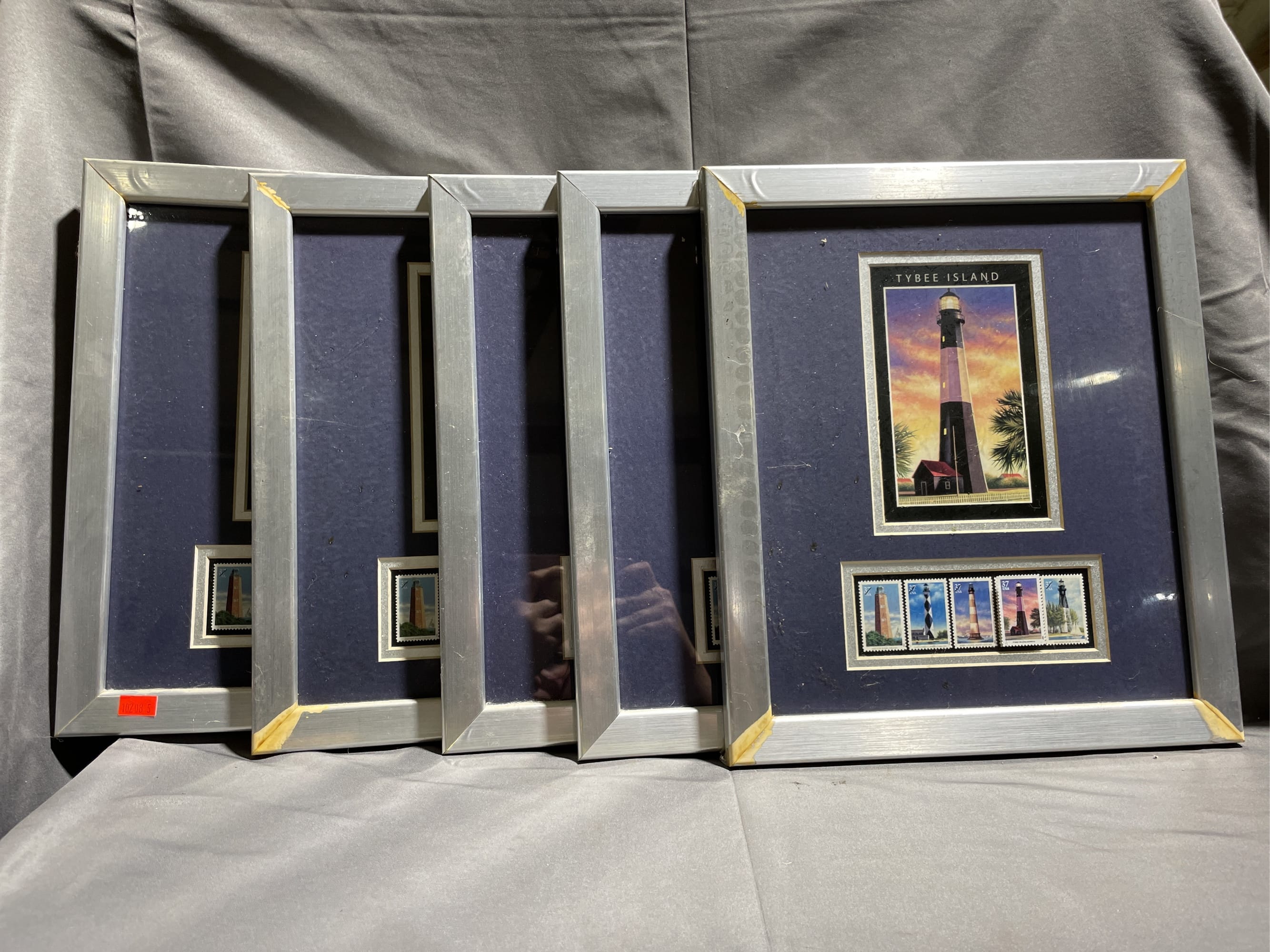 10208 (5) Framed lighthouse prints 13.5”x11.5”
