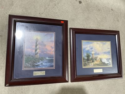 10209 (2) Thomas Kinkade framed lighthouse prints 18”x16”