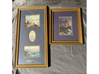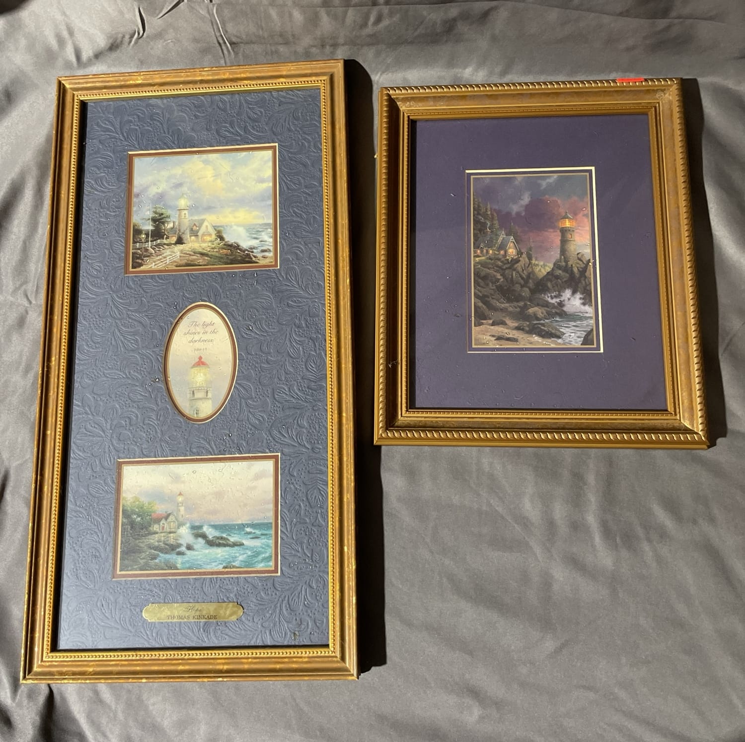 10211 (2) Thomas Kinkade framed lighthouse wall hangings 19.5”x10” & 10”x12”