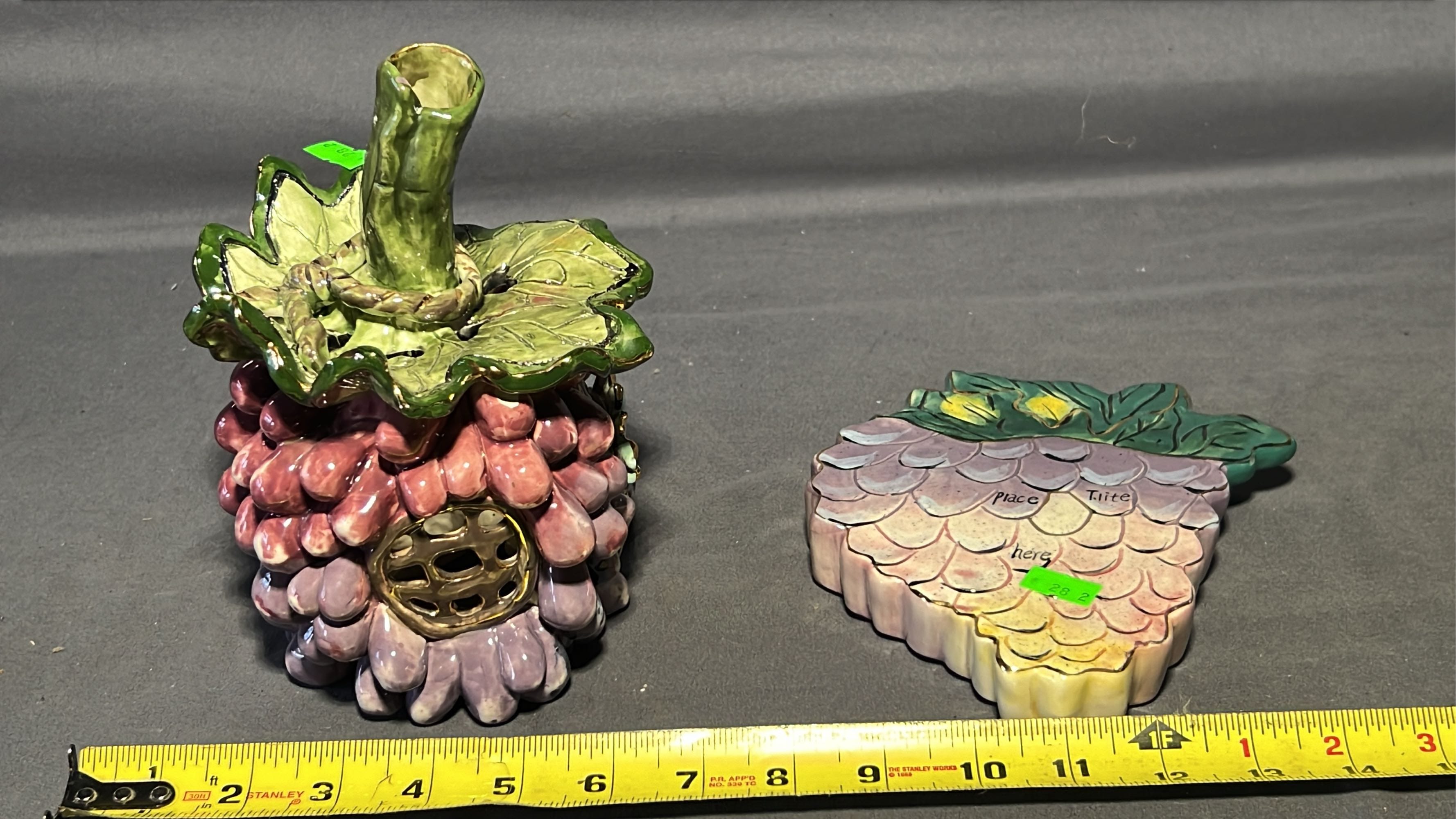 28 Grape Cluster Fairy House candle light ,8”, Grape Cluster Decoration/music box 7.5”,music box doesn’t work ,