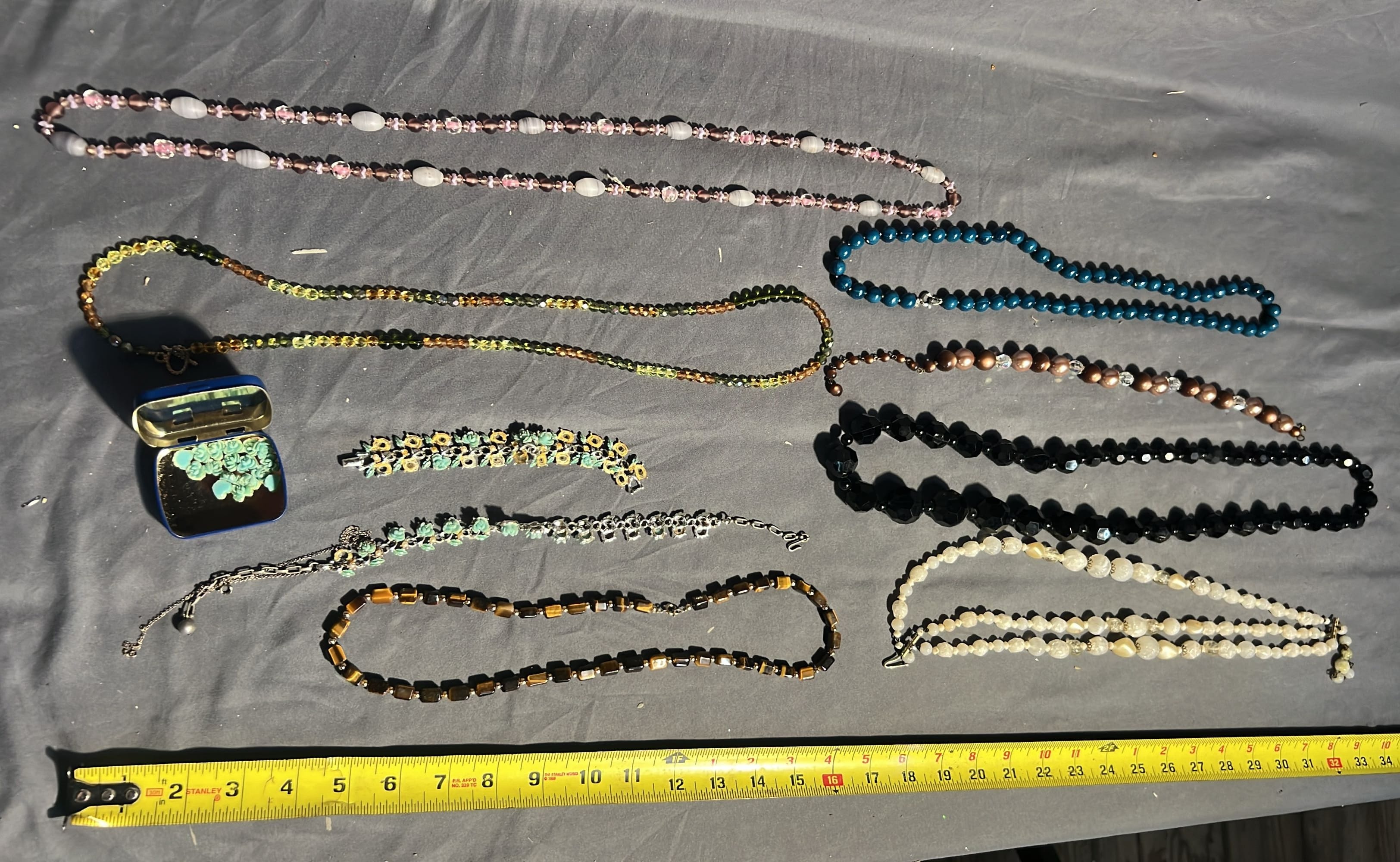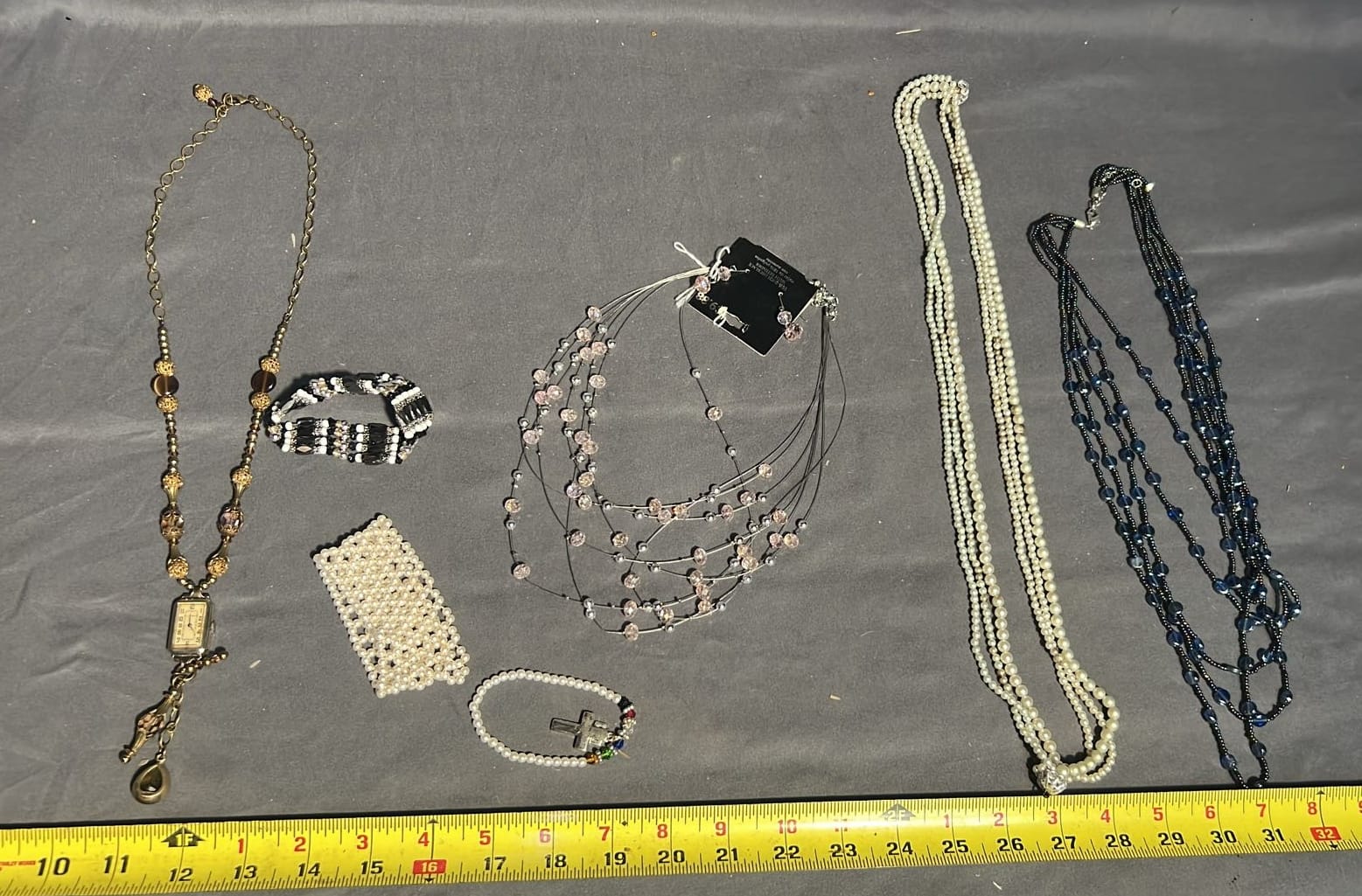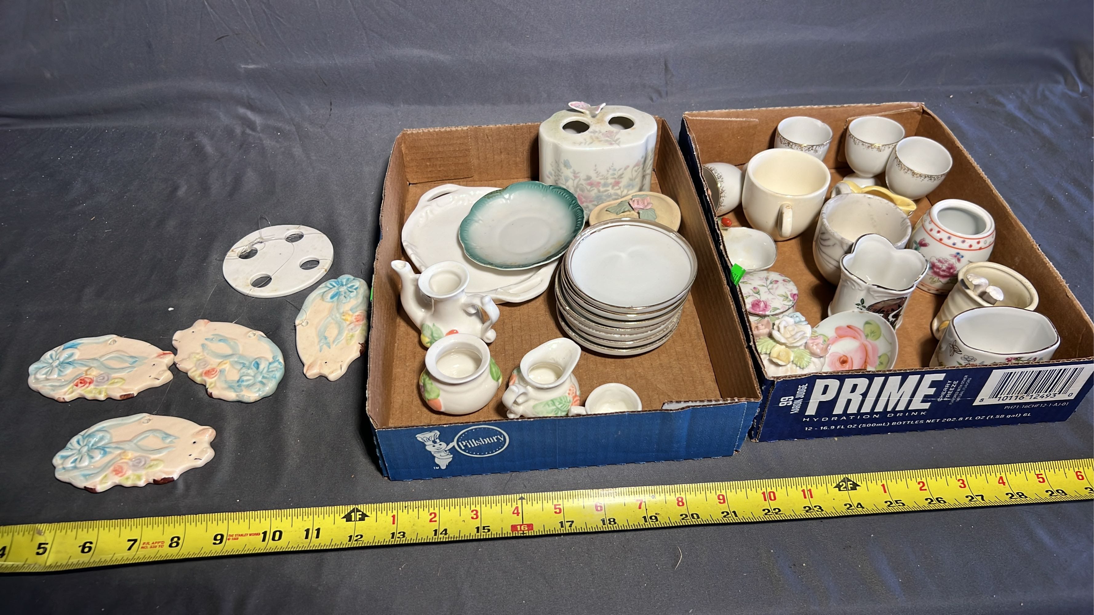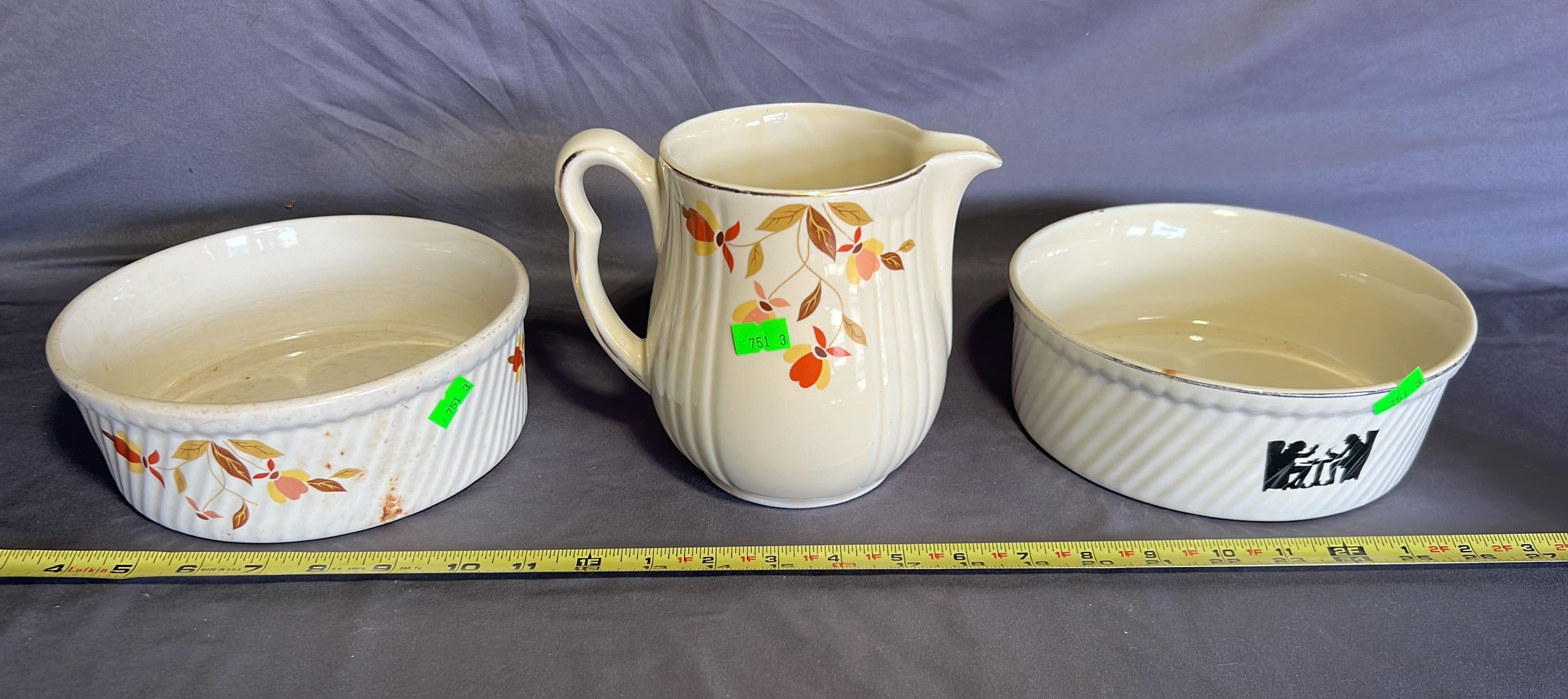 46 Tintern Pitcher 6”,has some chips , sun catcher ,wall decorations , small juke box clock , gas pump clock ,miscellaneous