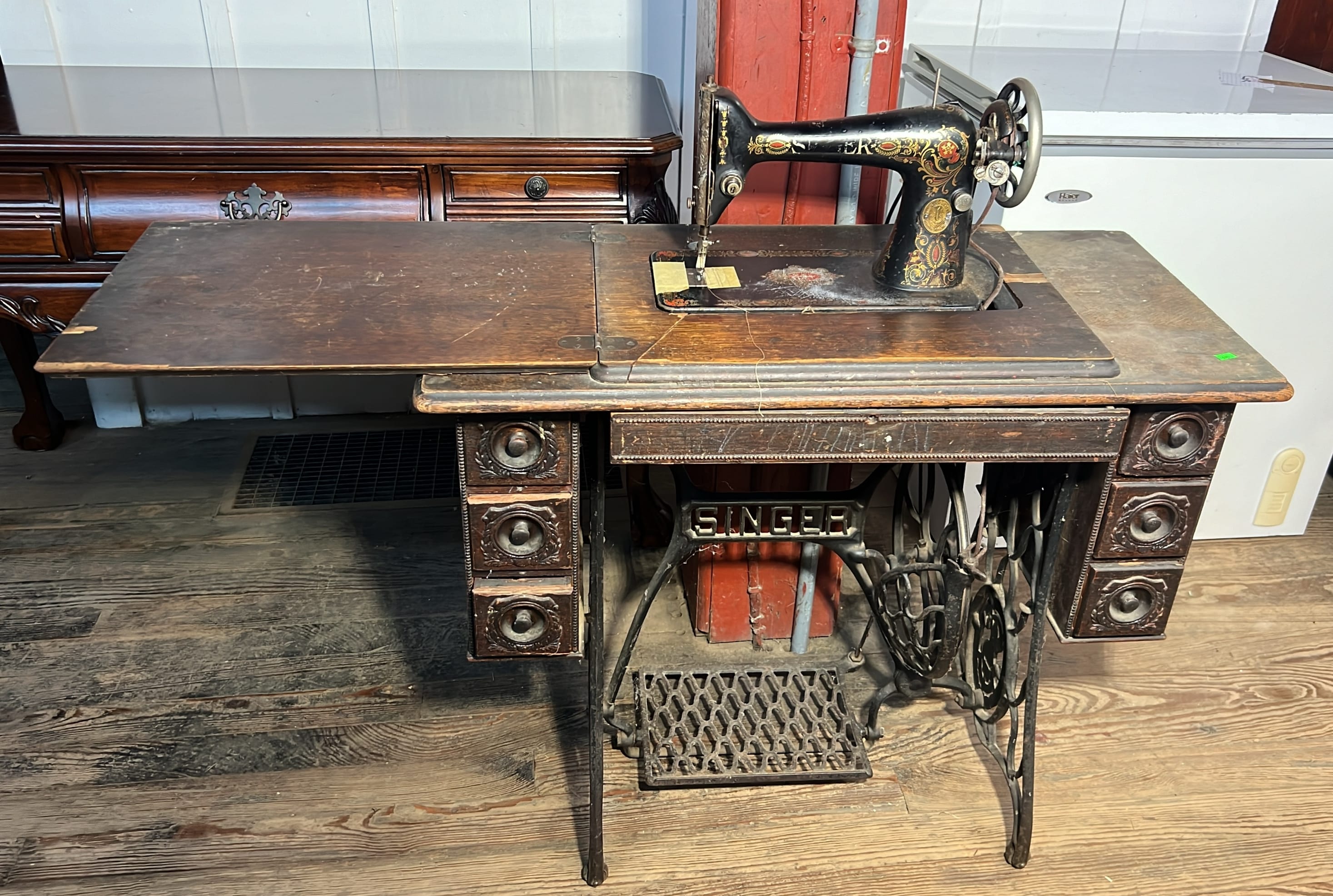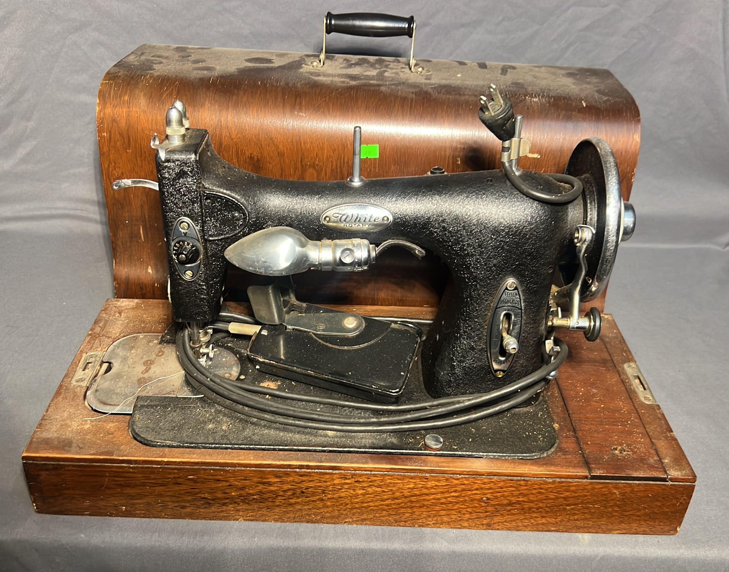 48 Vintage White Rotary Sewing Machine in wood carry case with foot pedal