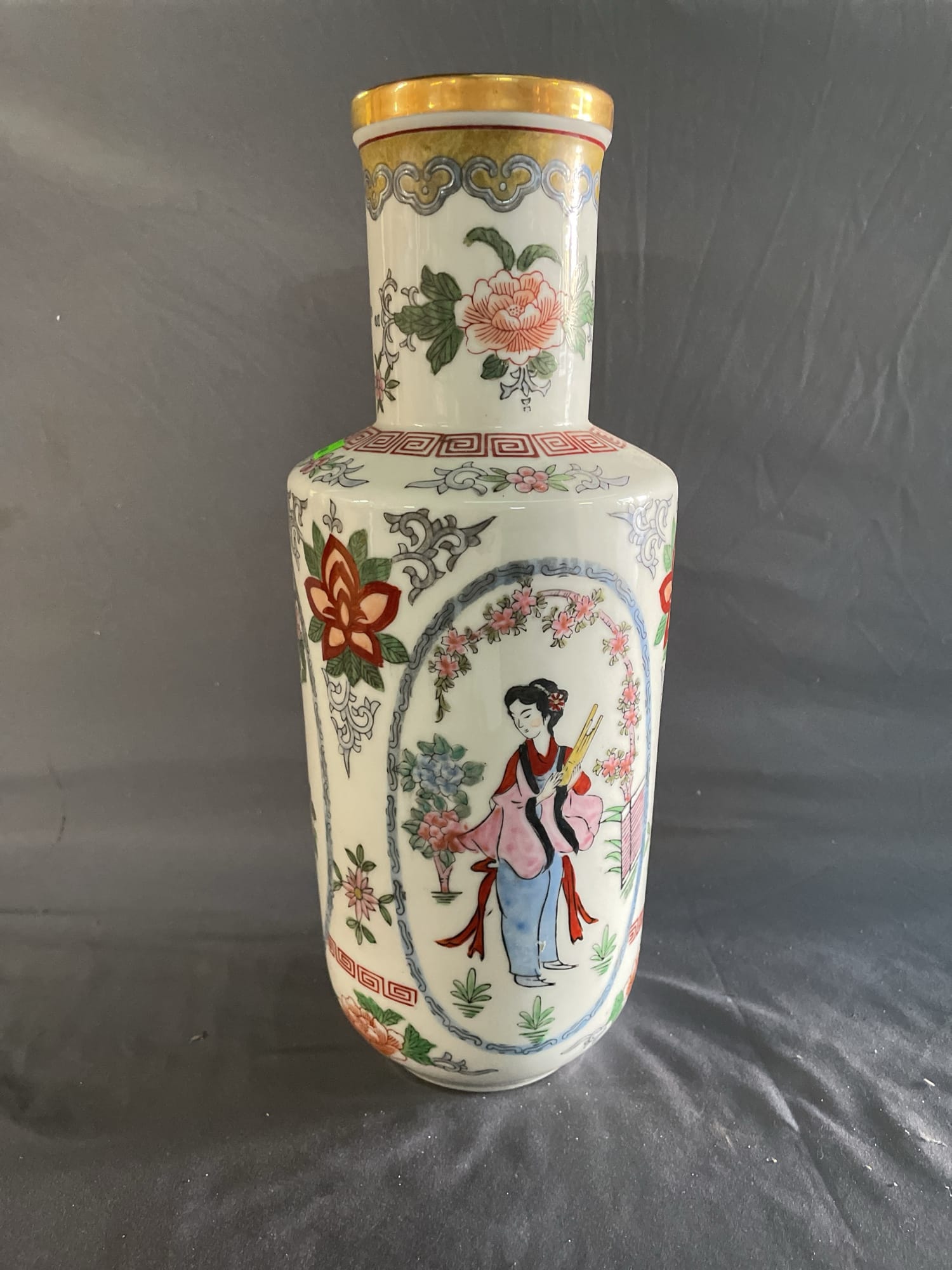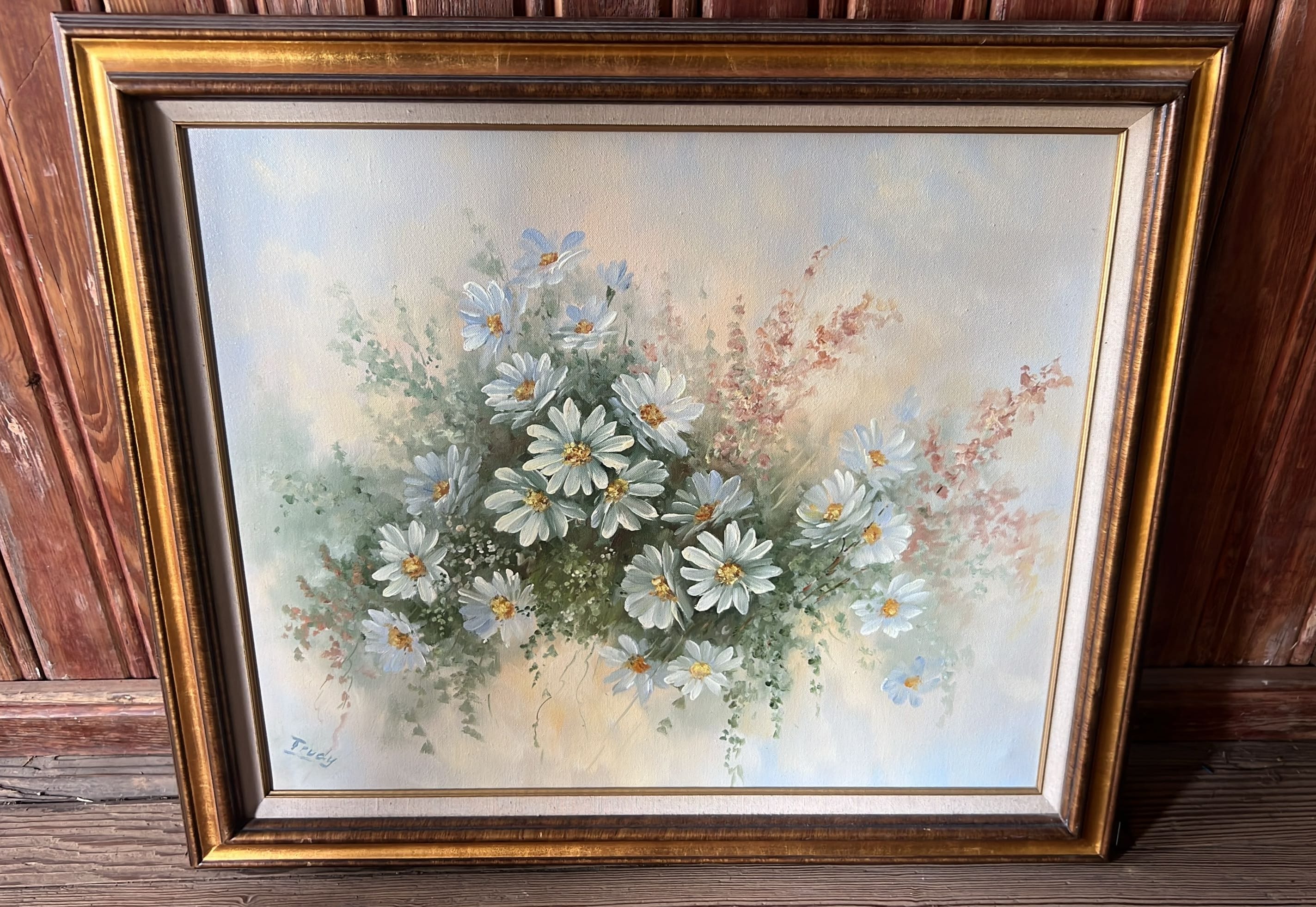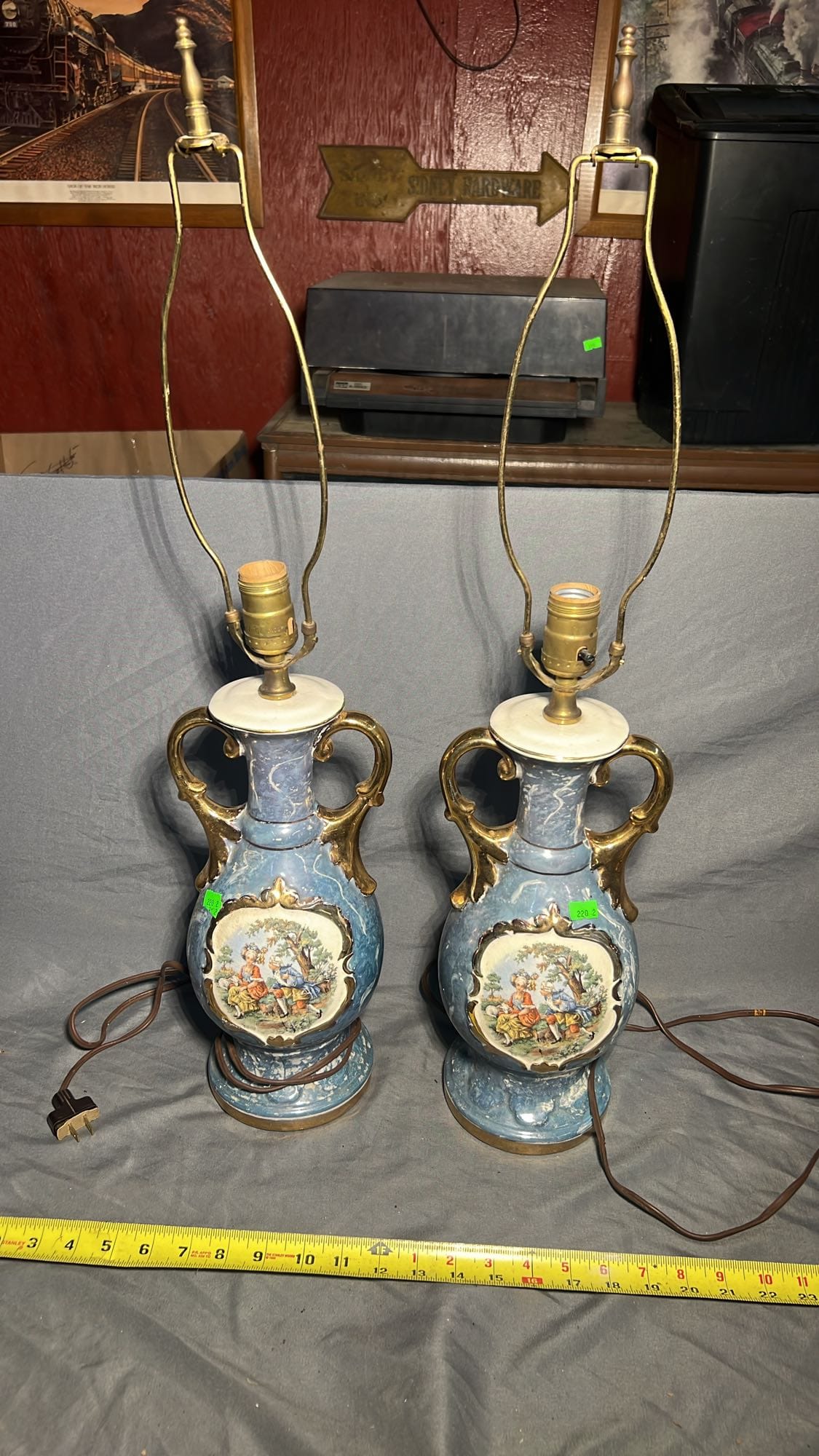 51 Milk Glass Painted Lamp with hobnail shade , 17” ,electric