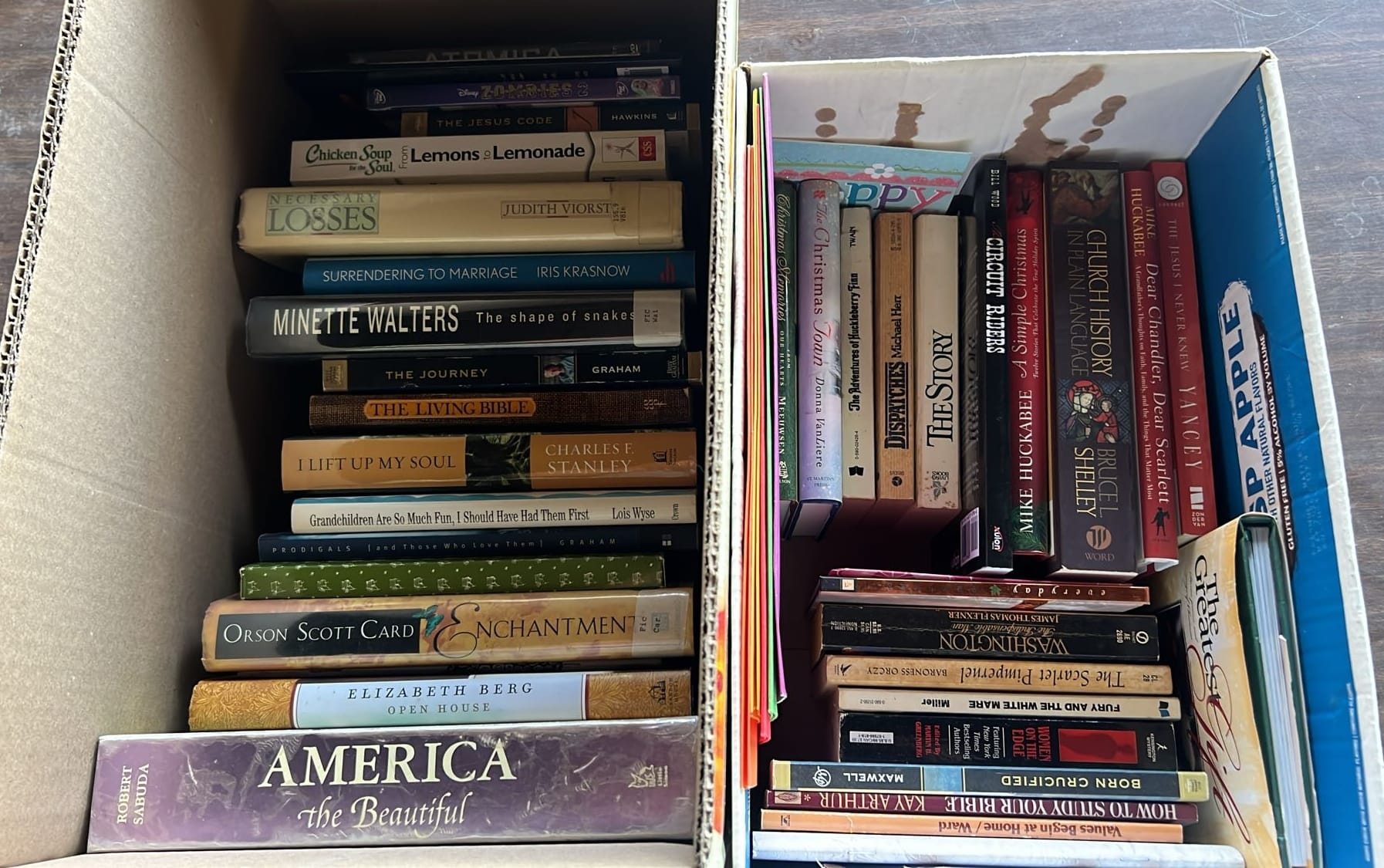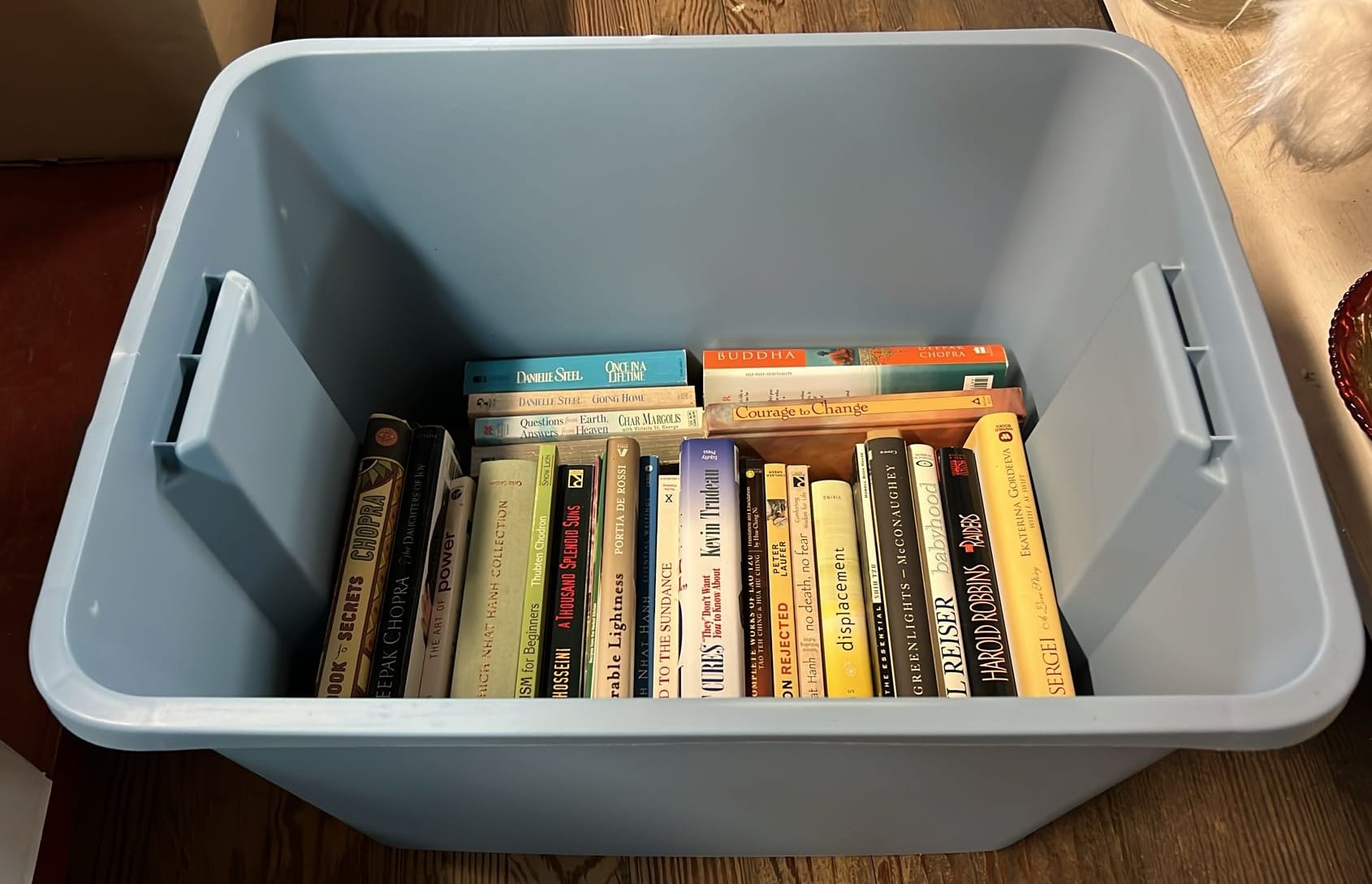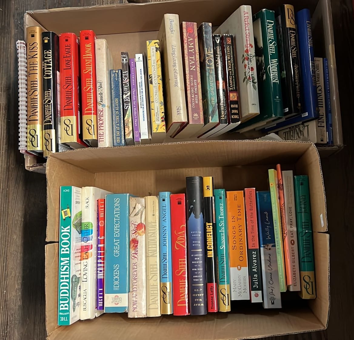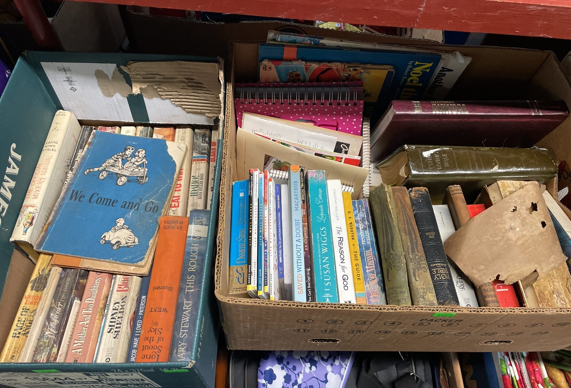 916 Porcelain Clown , books , Santa cookie jar , glass dish , small metal buckets , miscellaneous