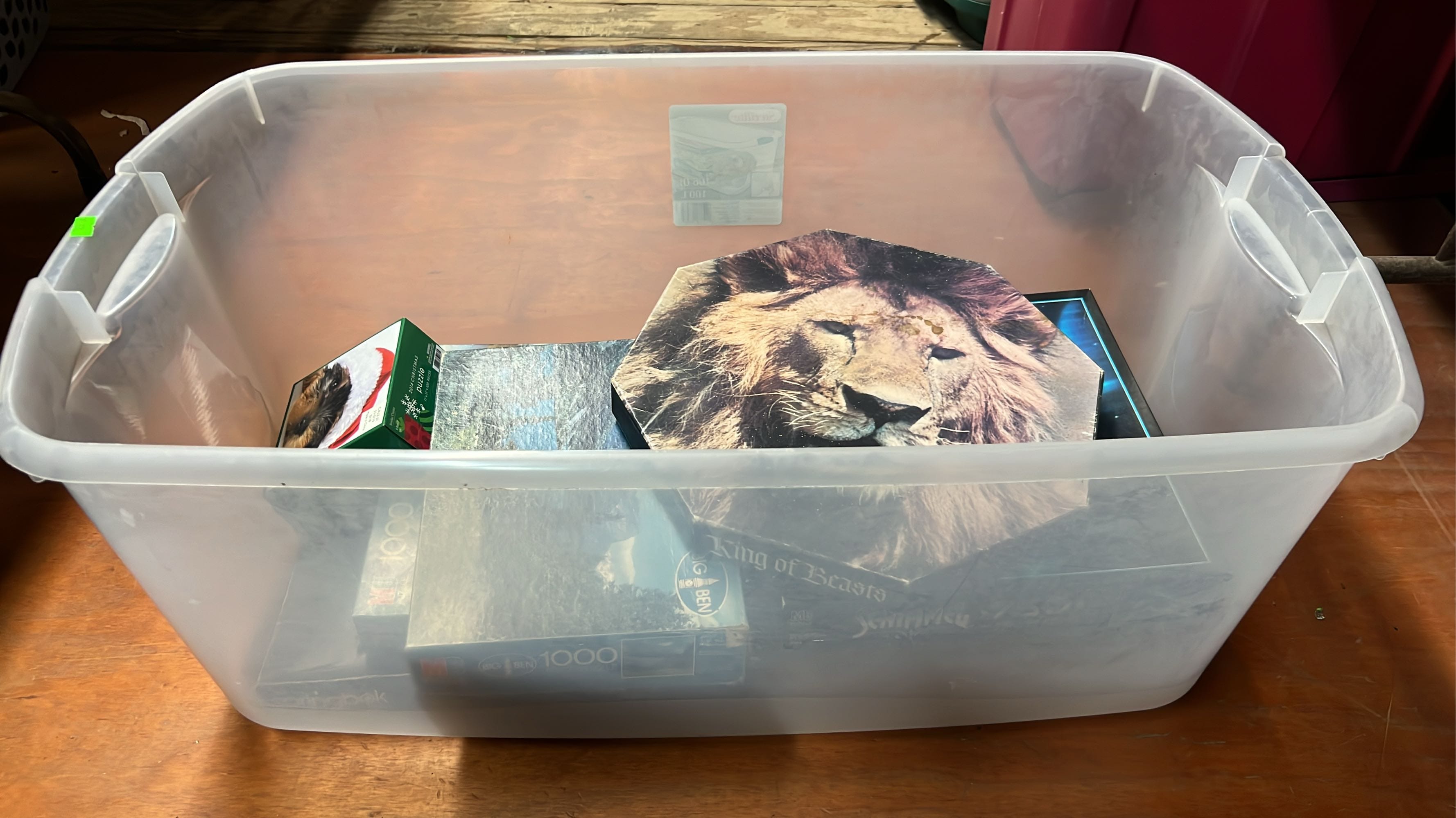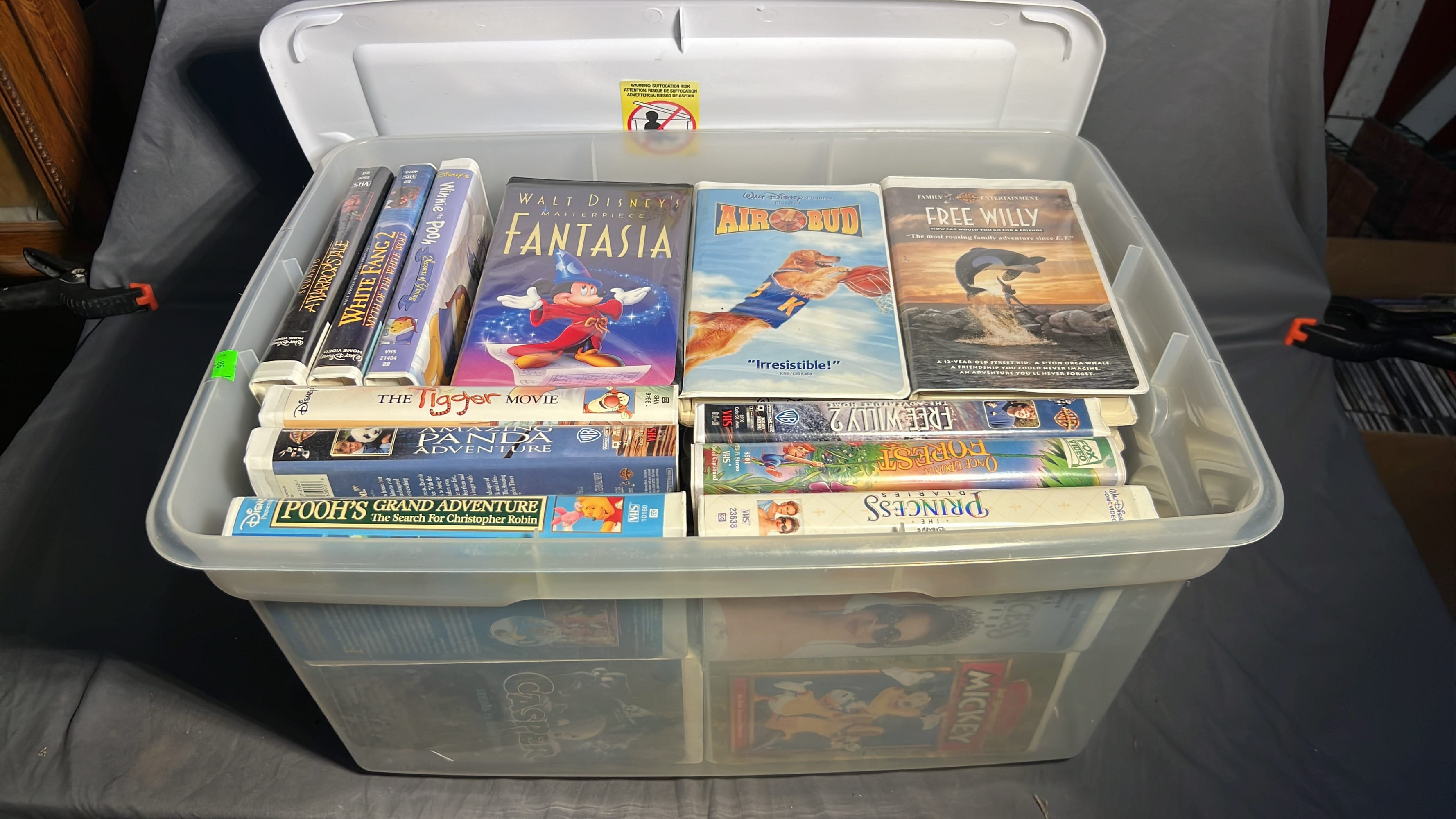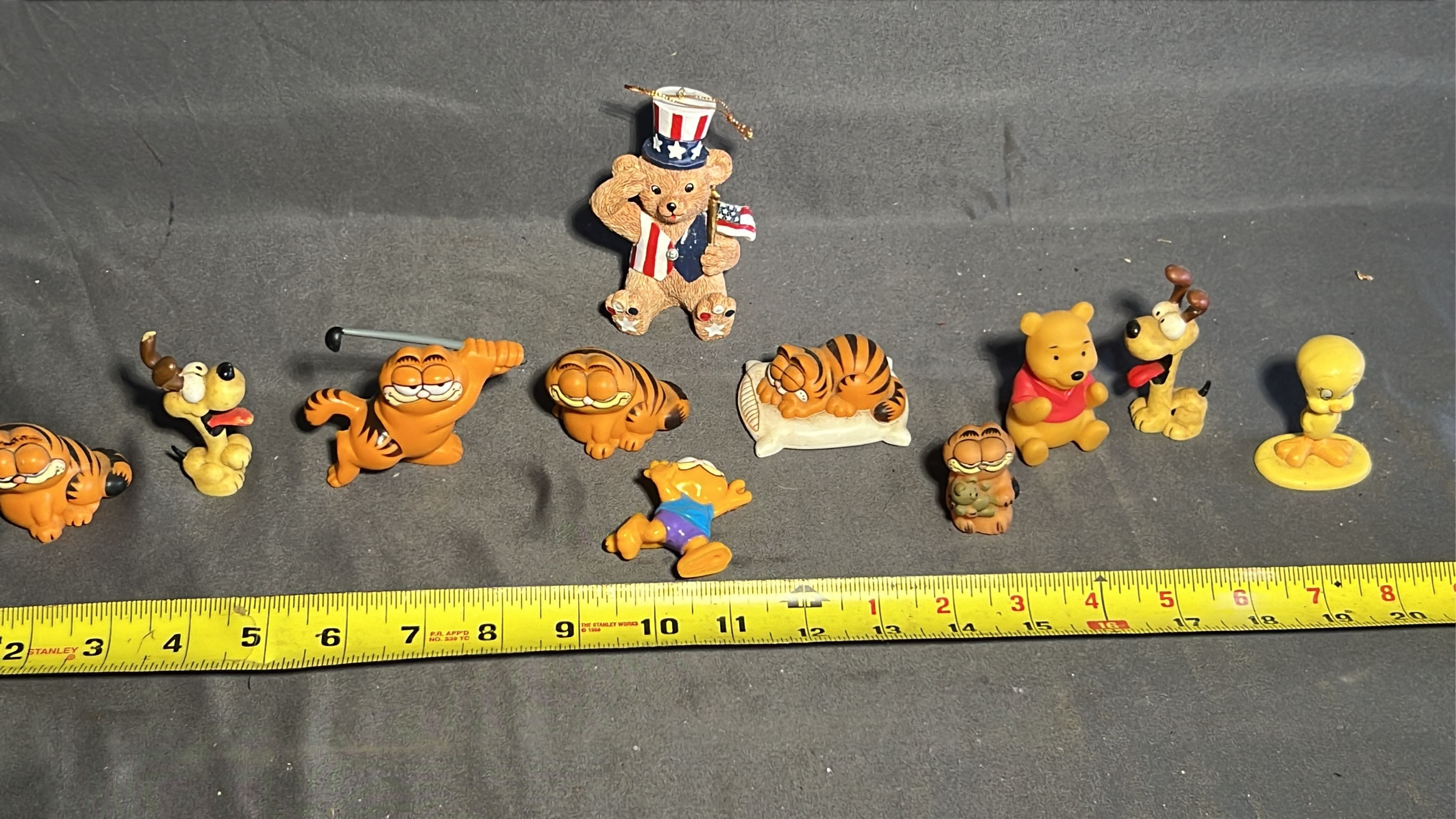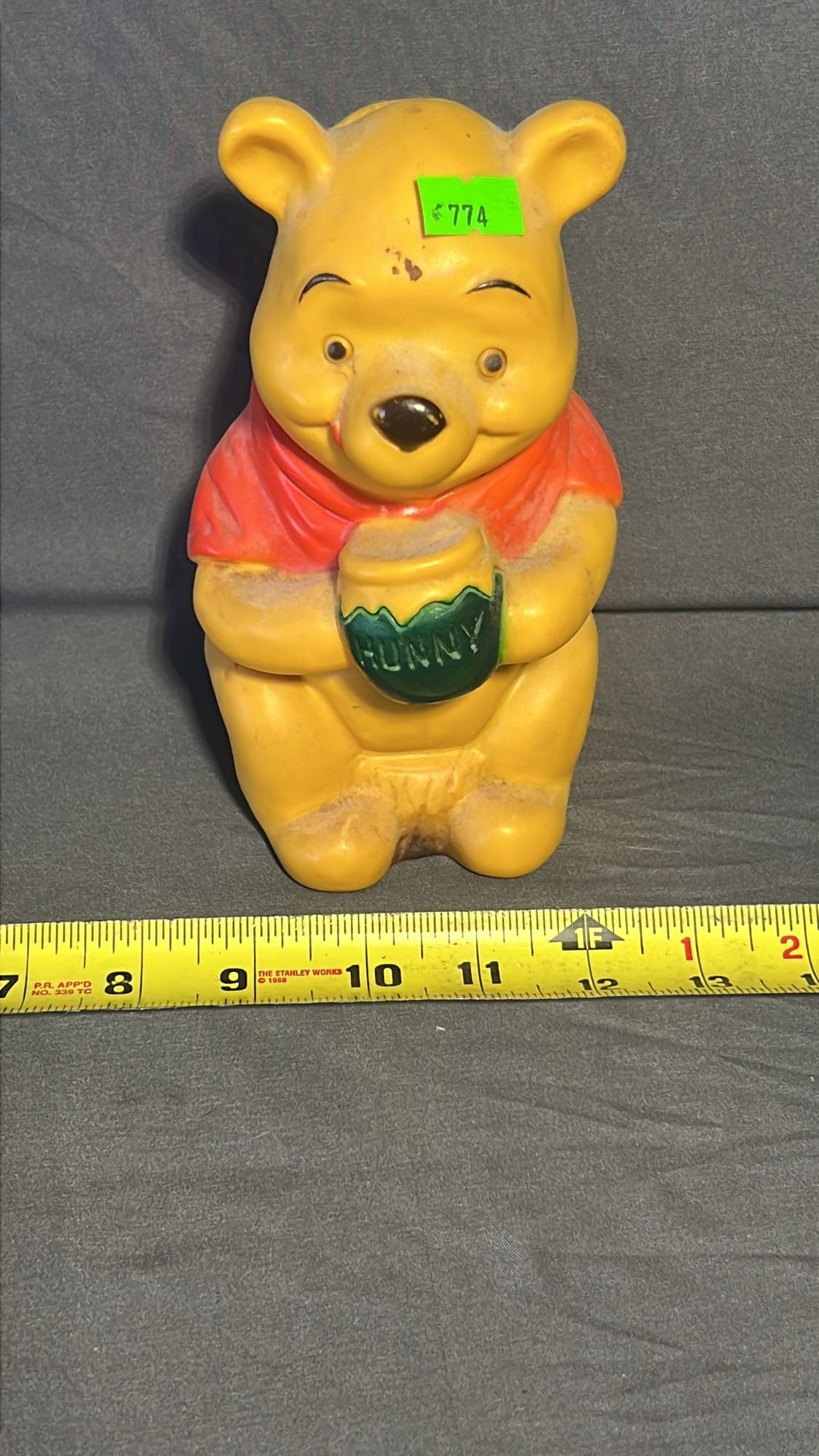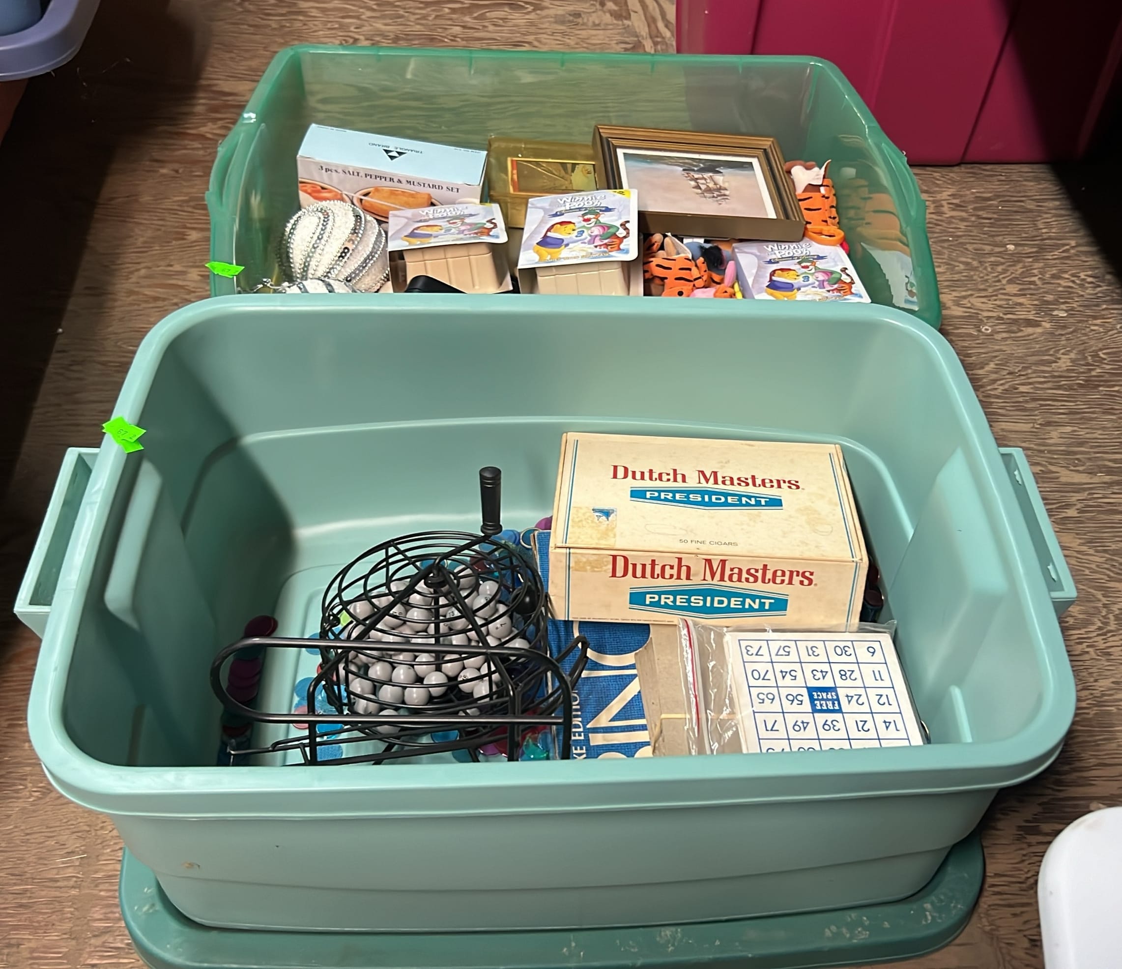 67 Bingo Game , Alarm Radio , stuffed animals , Pooh Character figurines ,miscellaneous in 2- totes with lids
