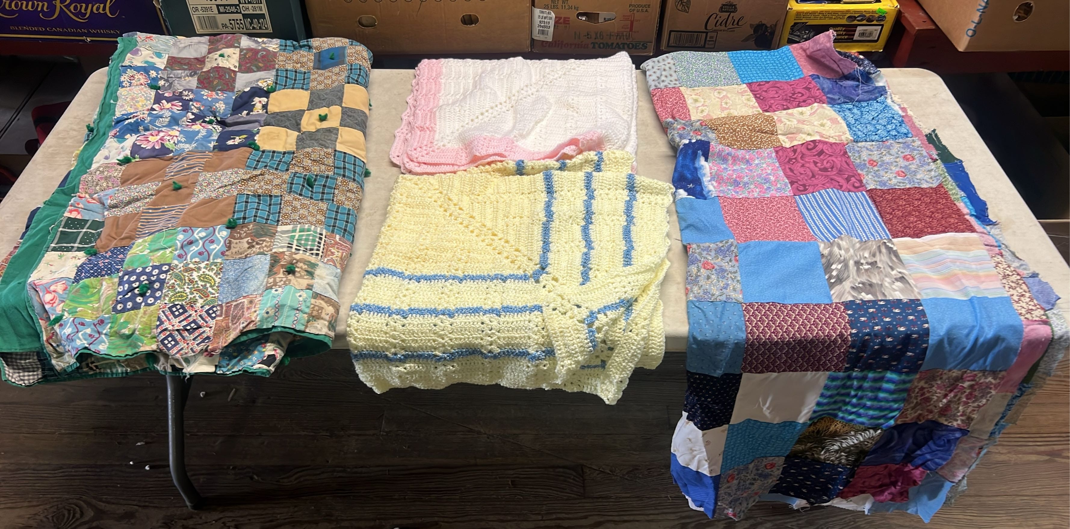 113 Knotted Quilt 70”x85”, 2- Afghans , quilt top