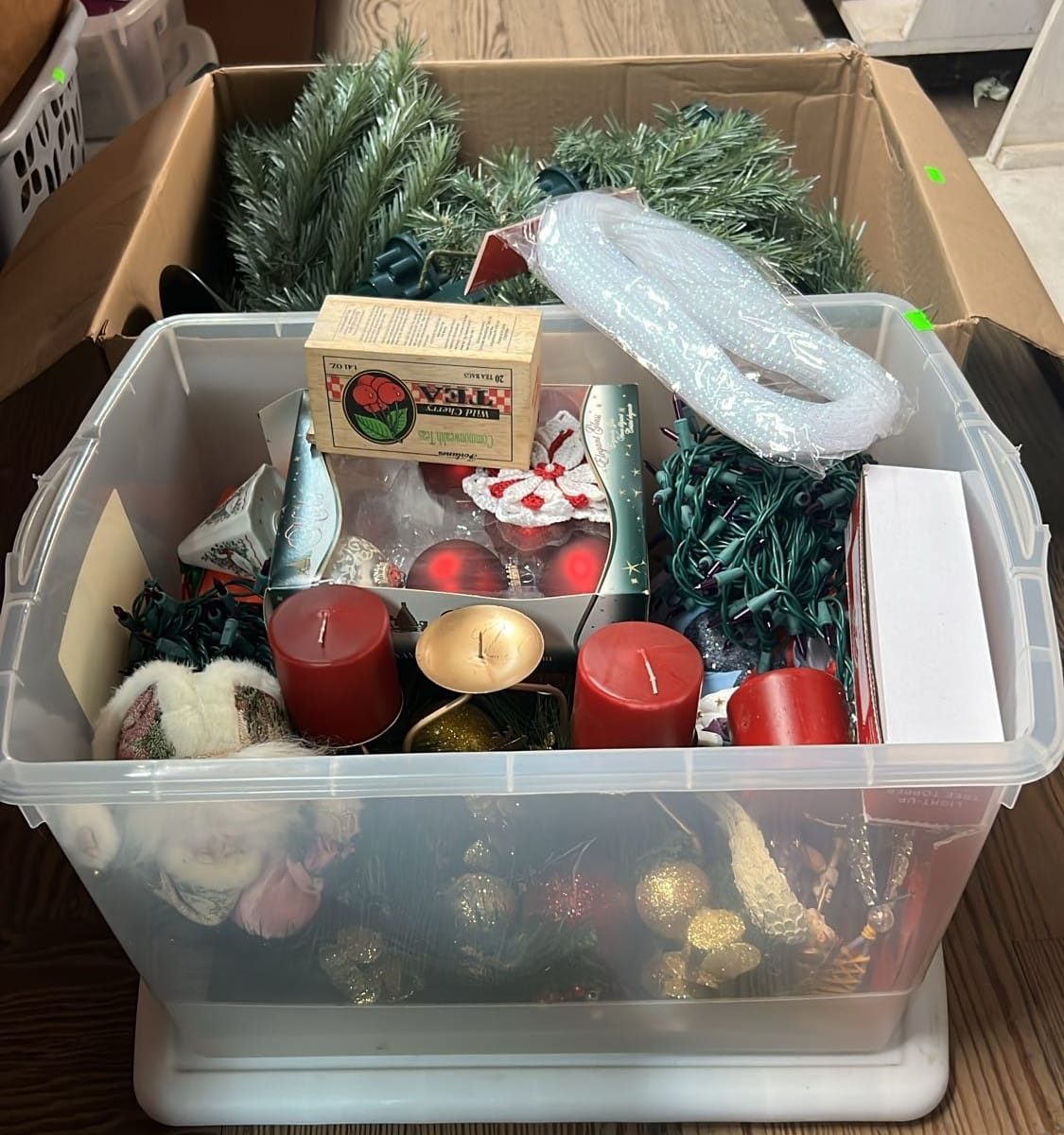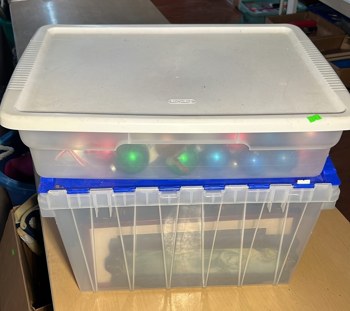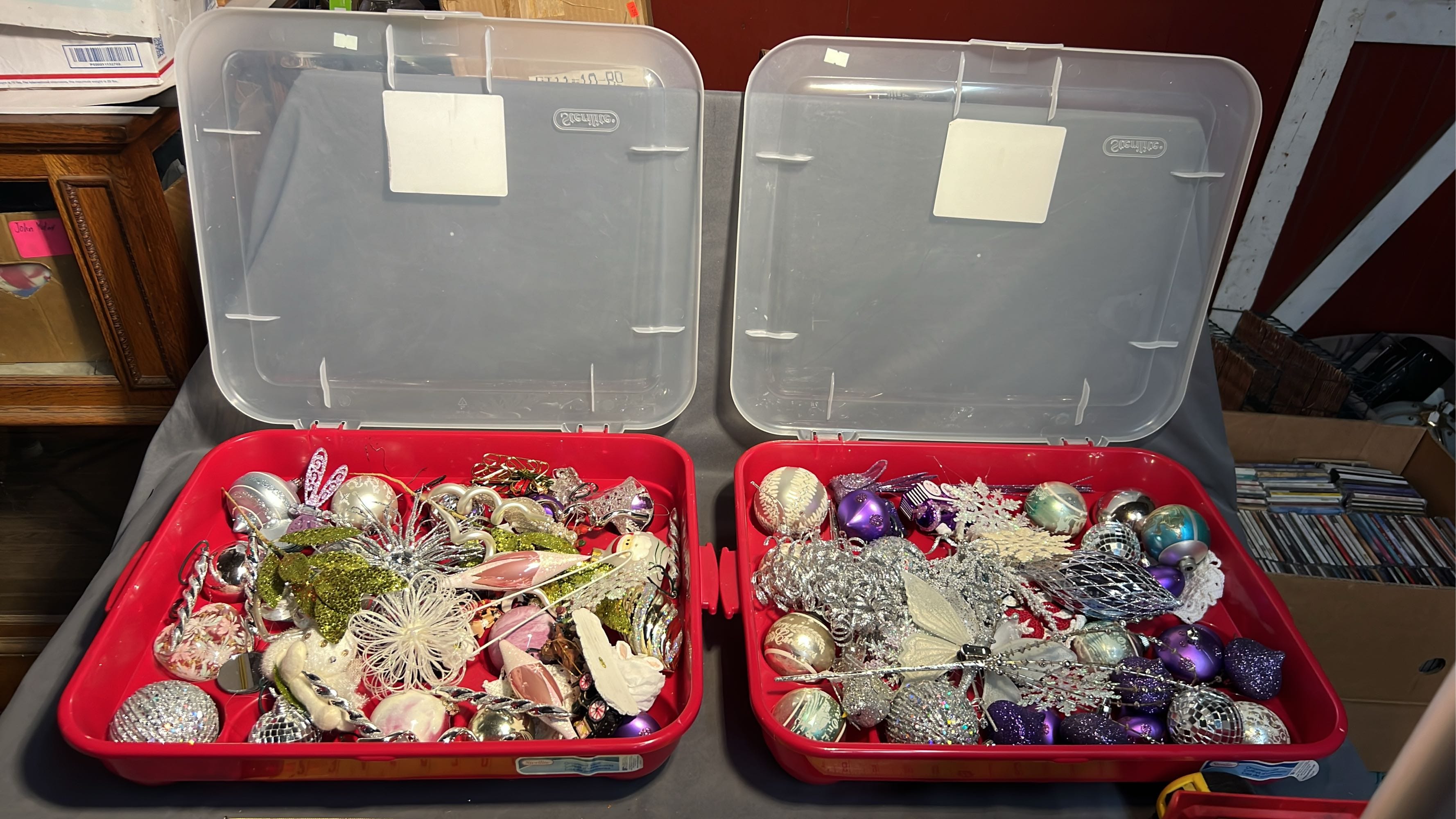 130 Christmas Ornament Assortment in 2- Sterilite Ornament Storage Containers