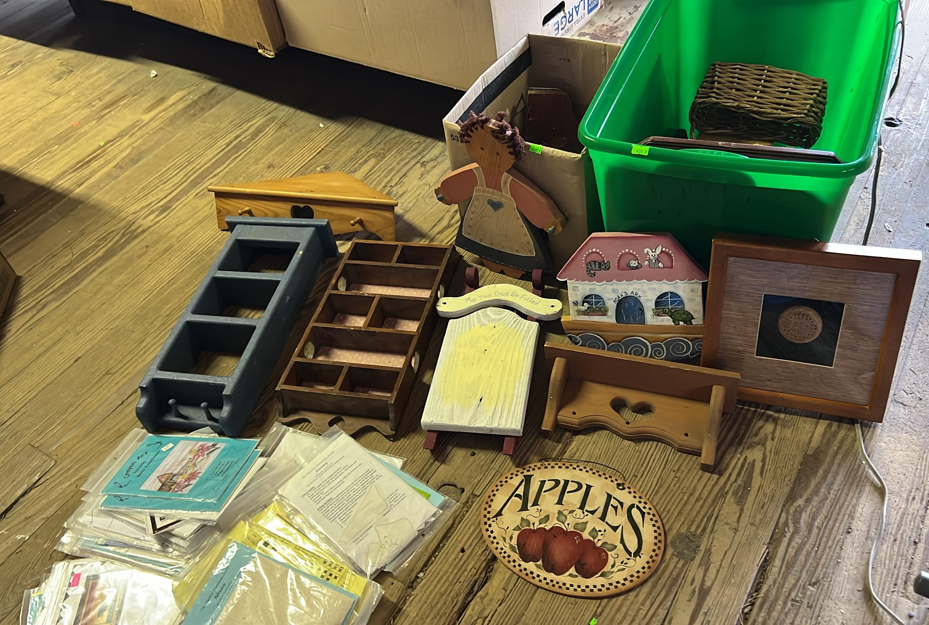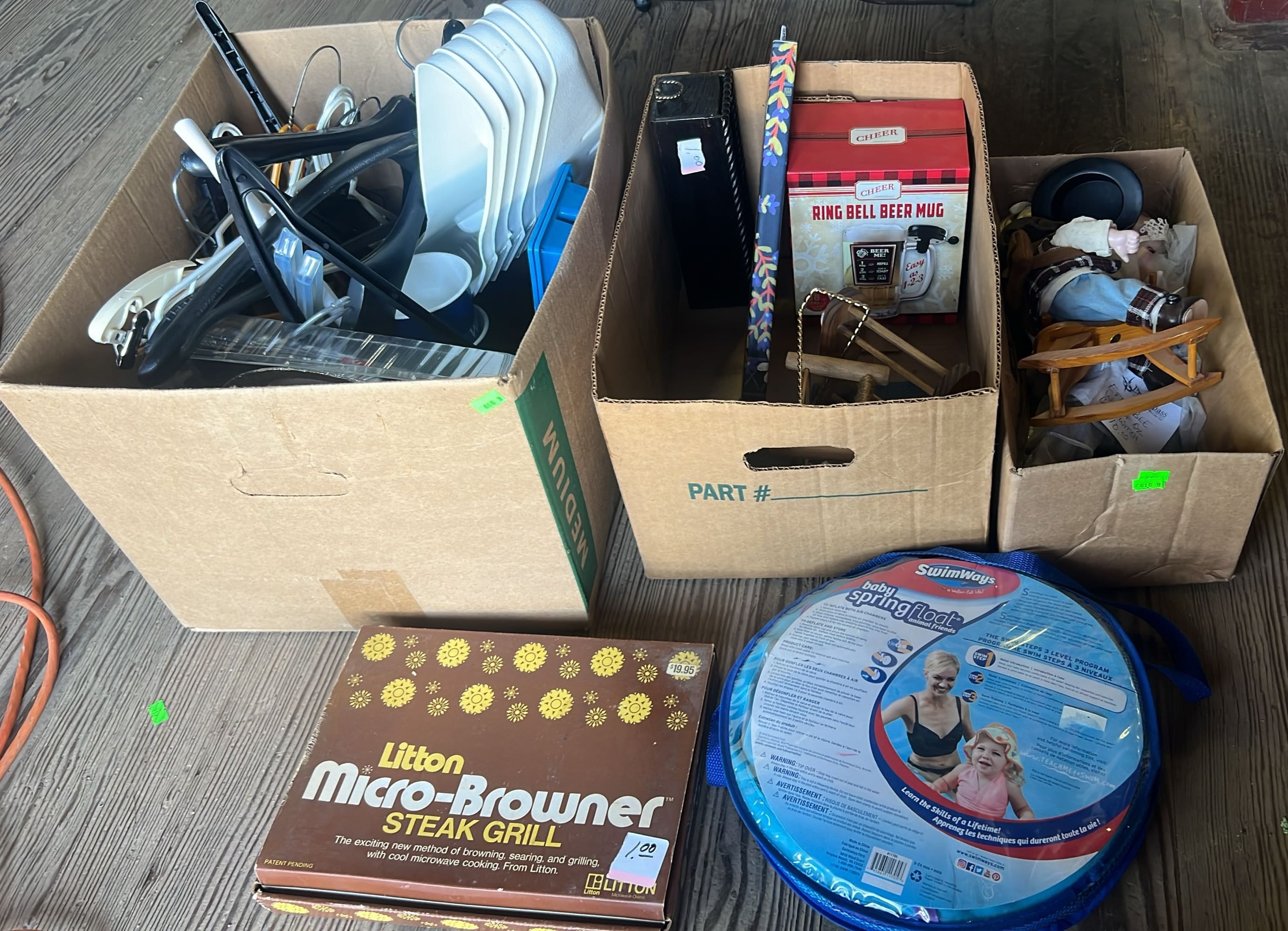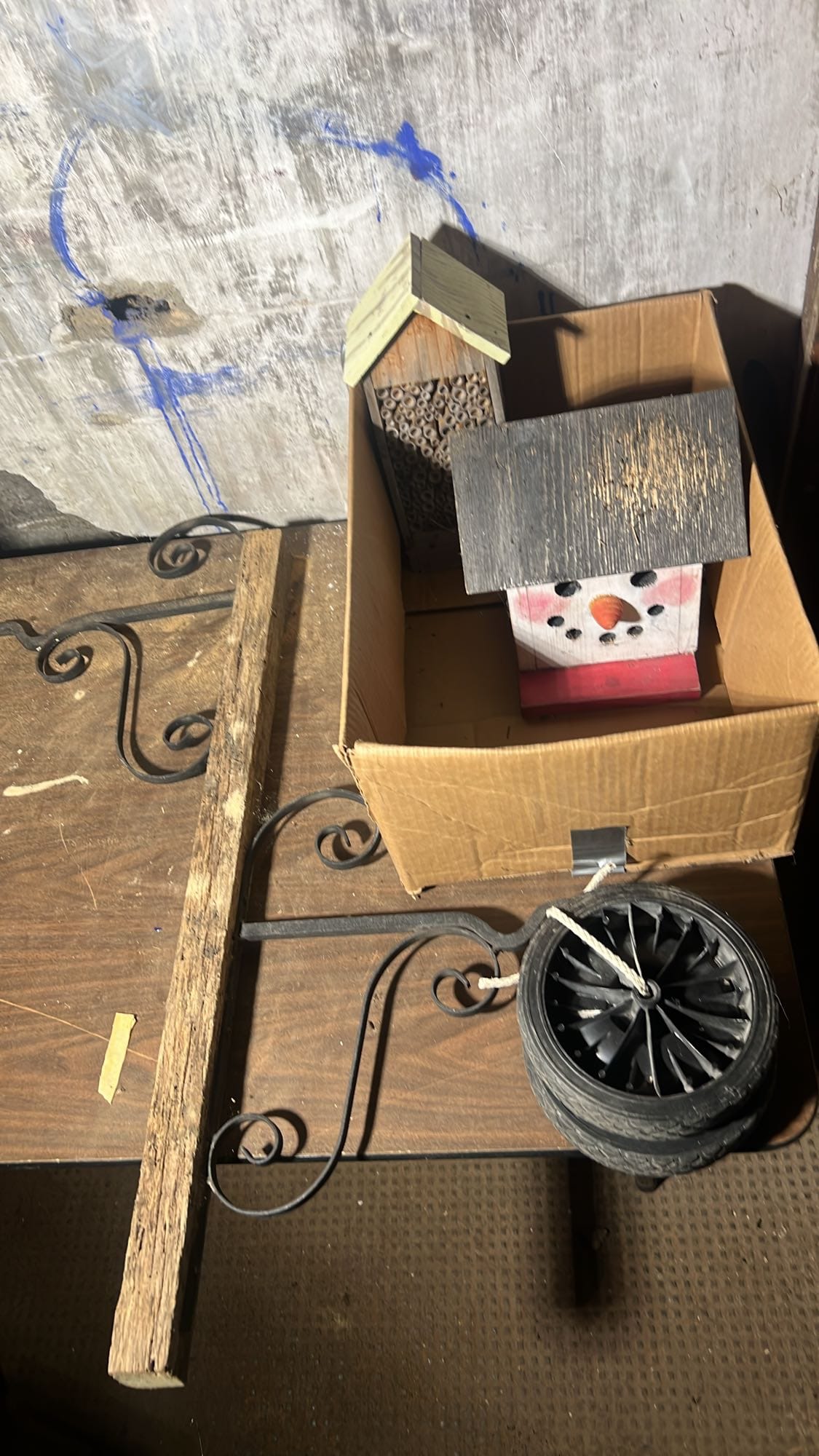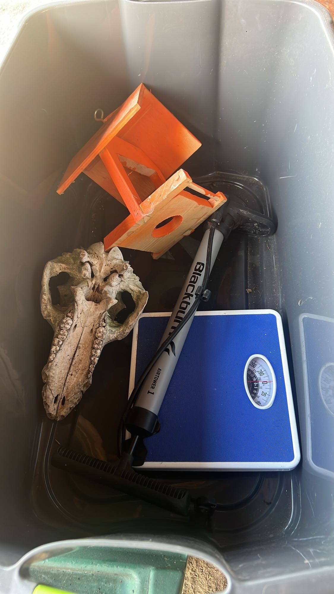 1040 Animal skull , bathroom Scale ,hand air pump , bird feeder frame , tote ,no lid