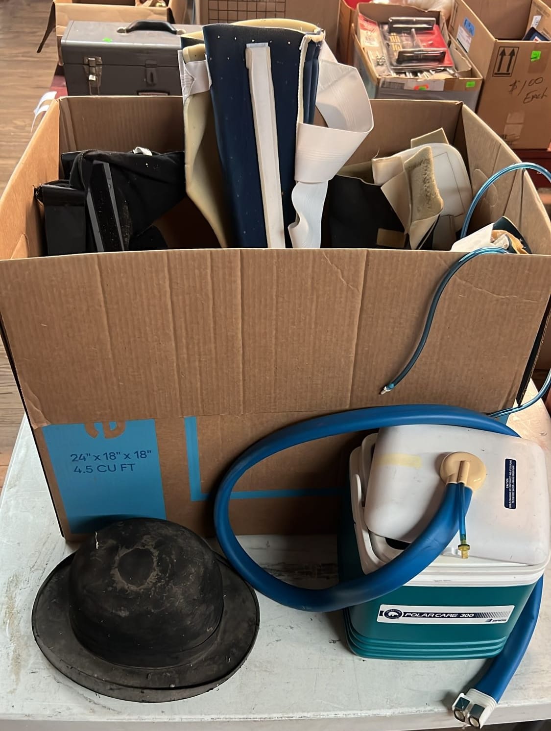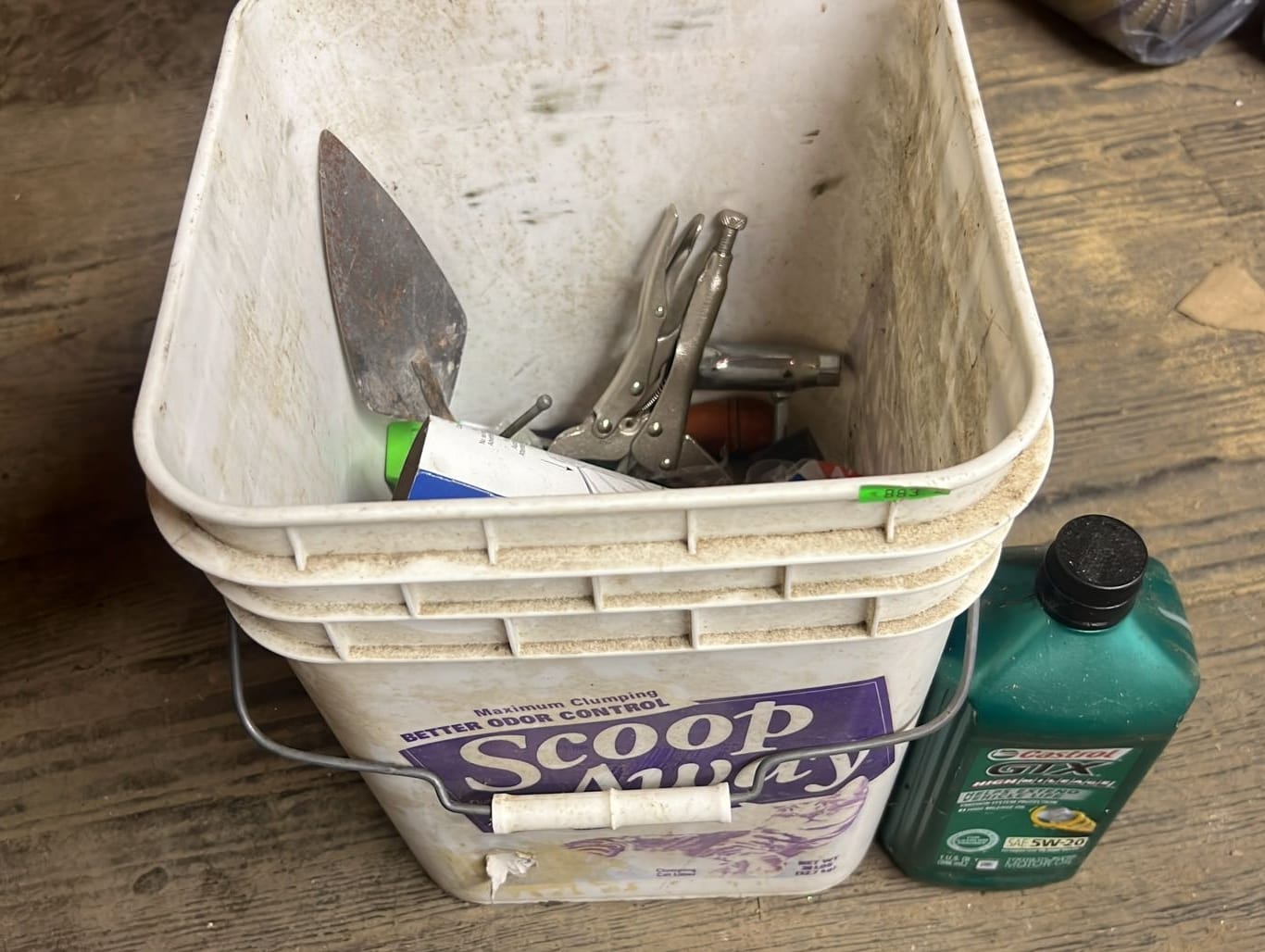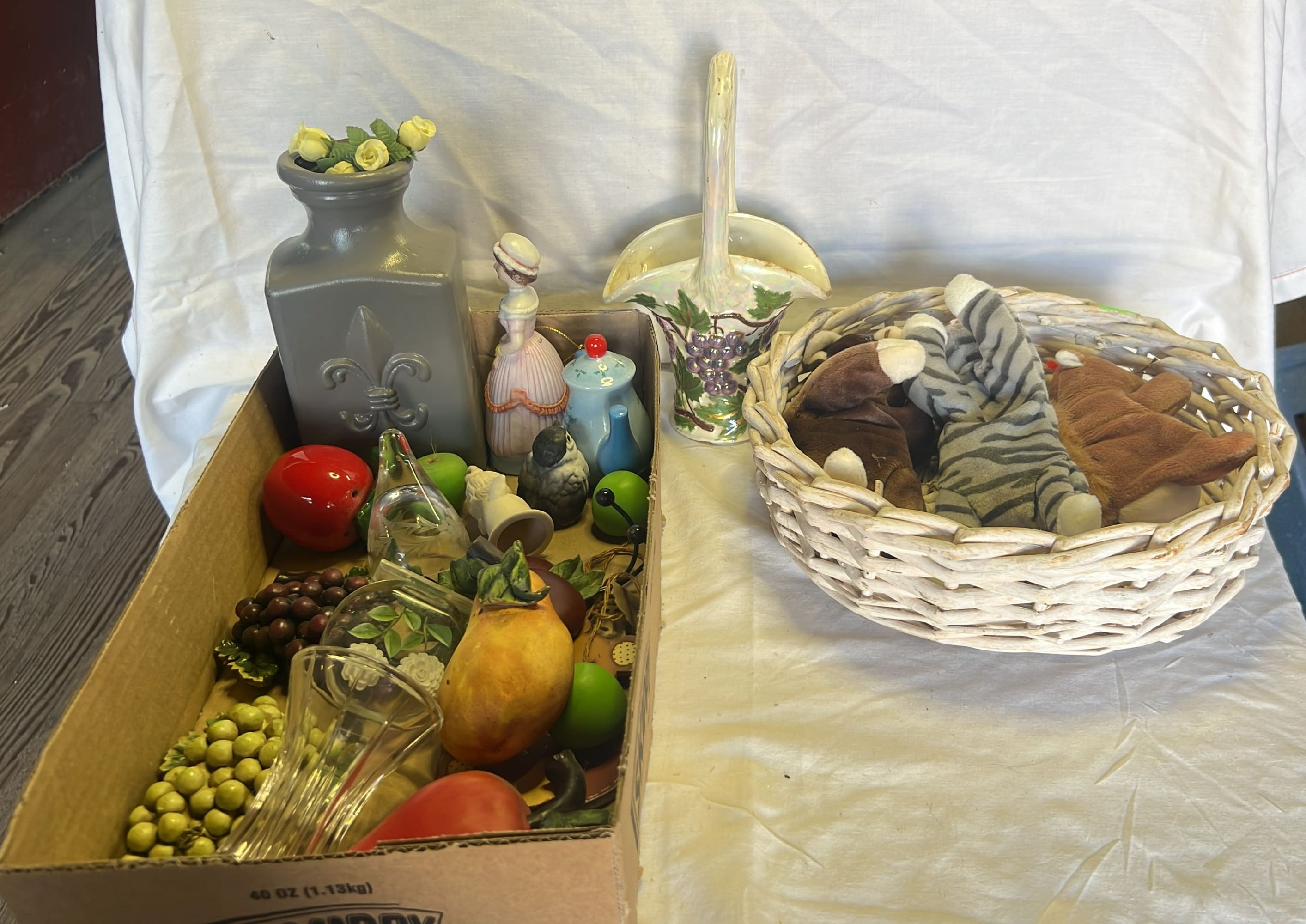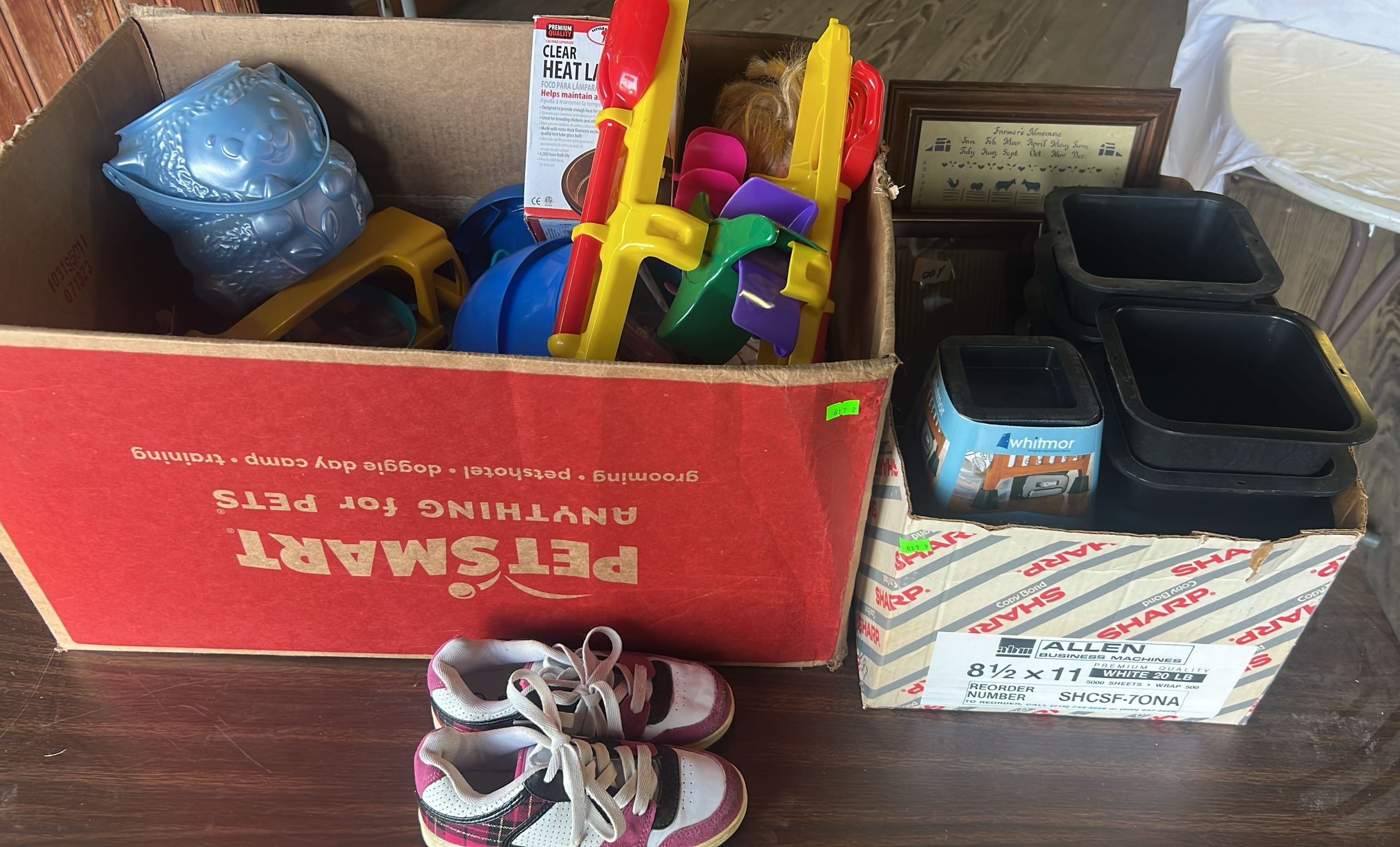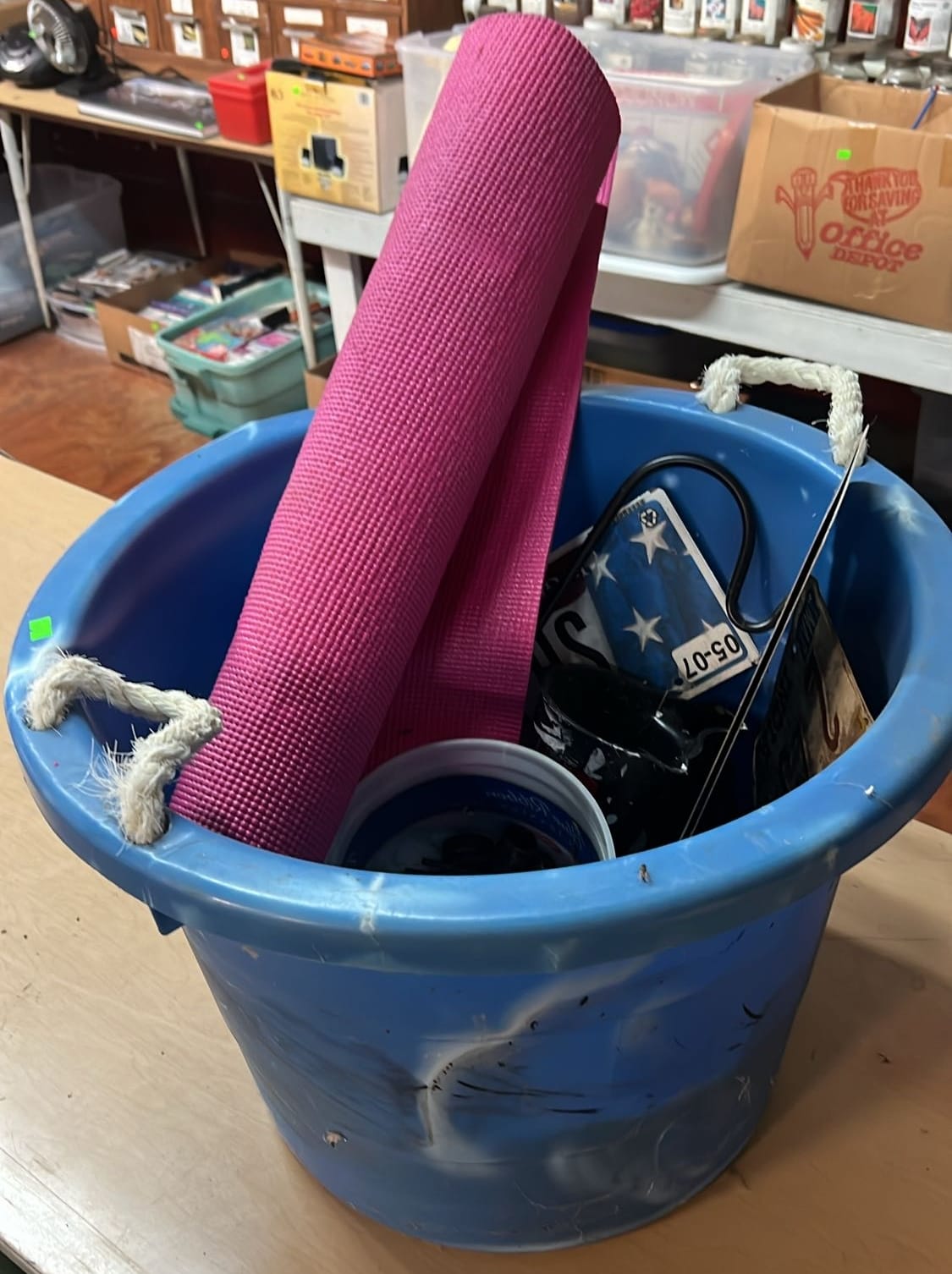 1040 Animal skull , bathroom Scale ,hand air pump , bird feeder frame , tote ,no lid