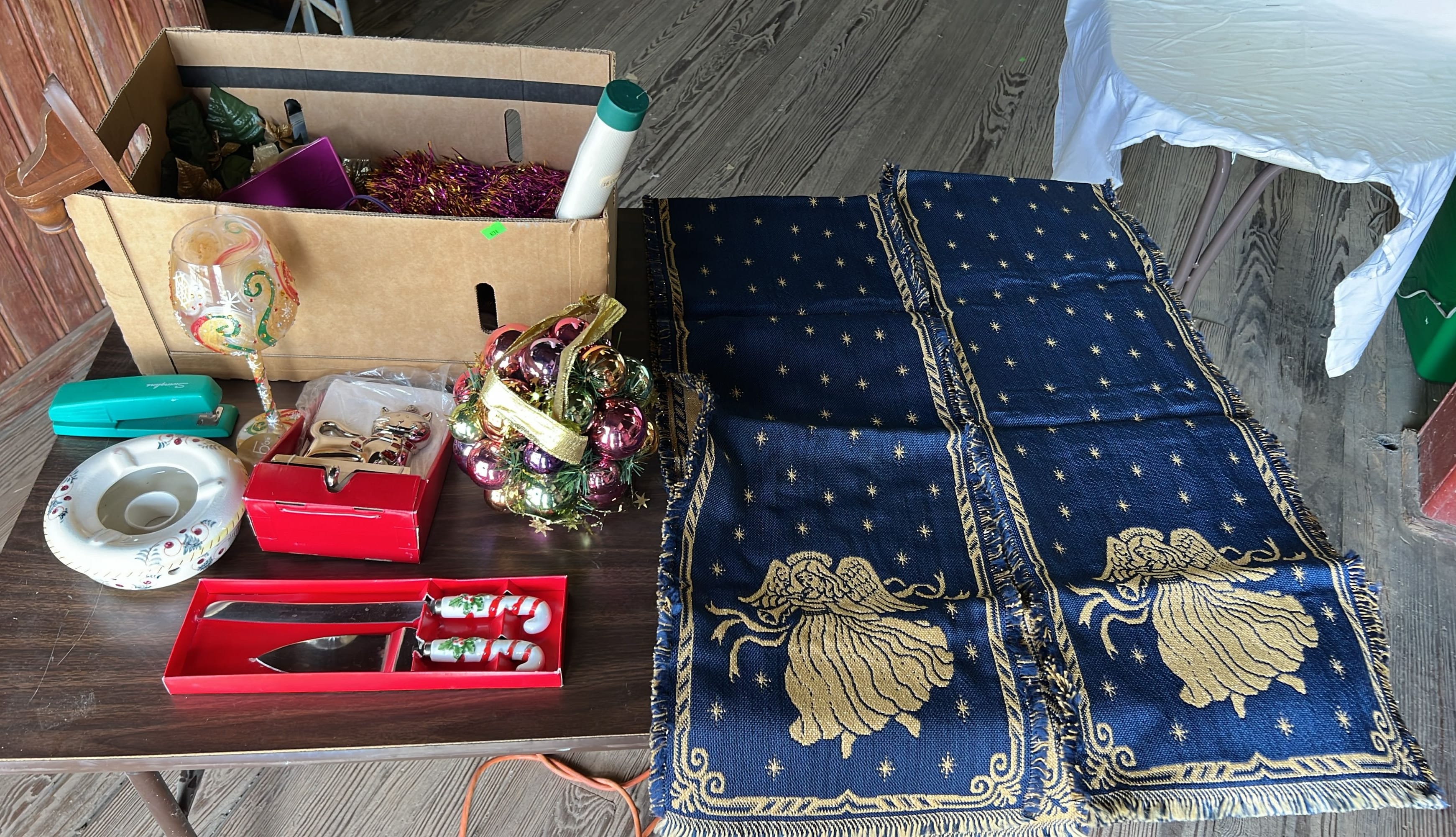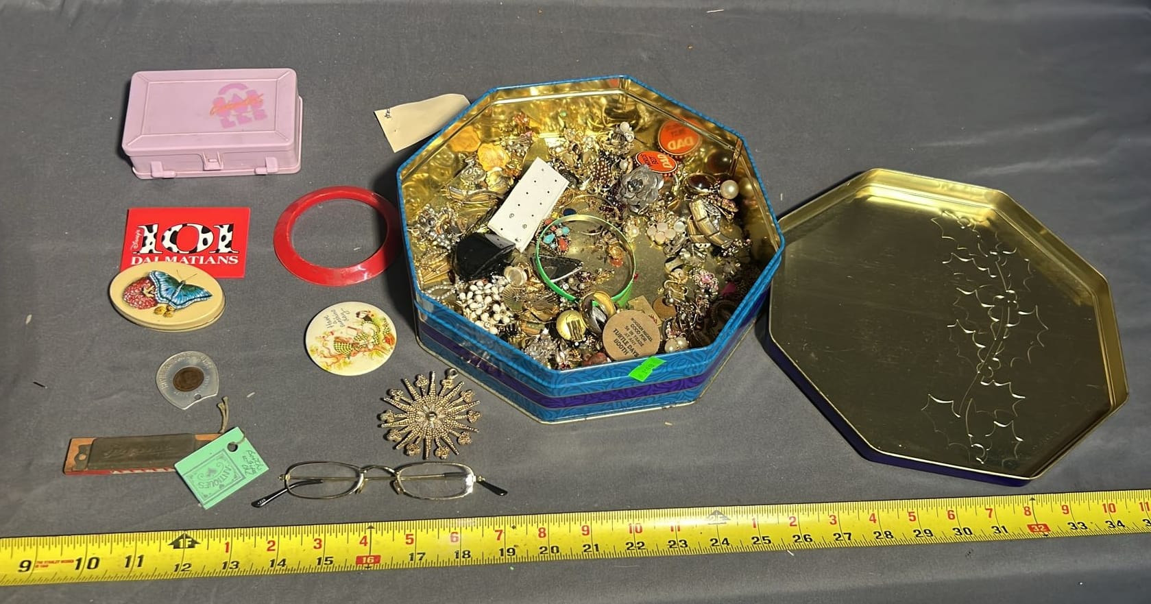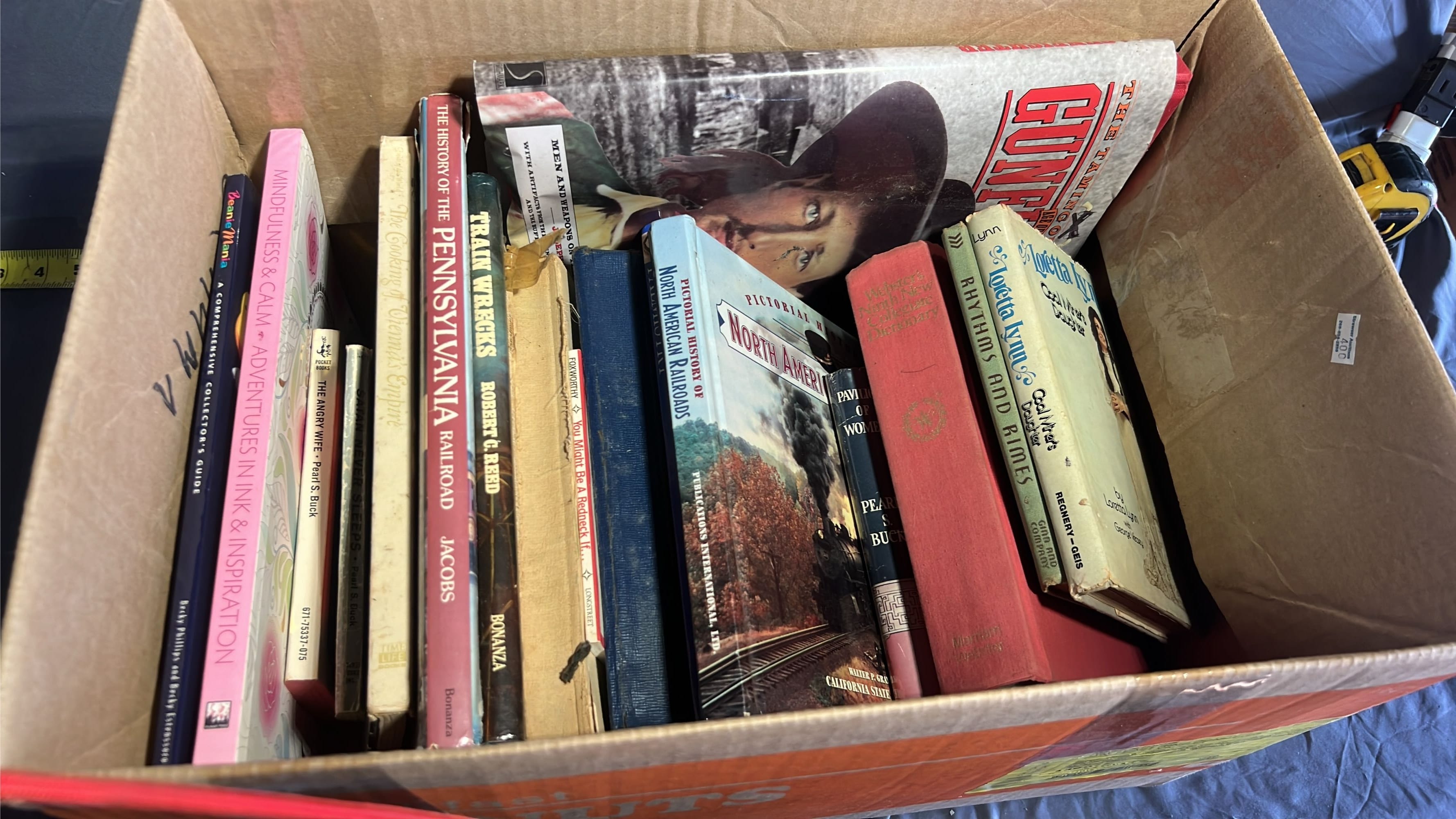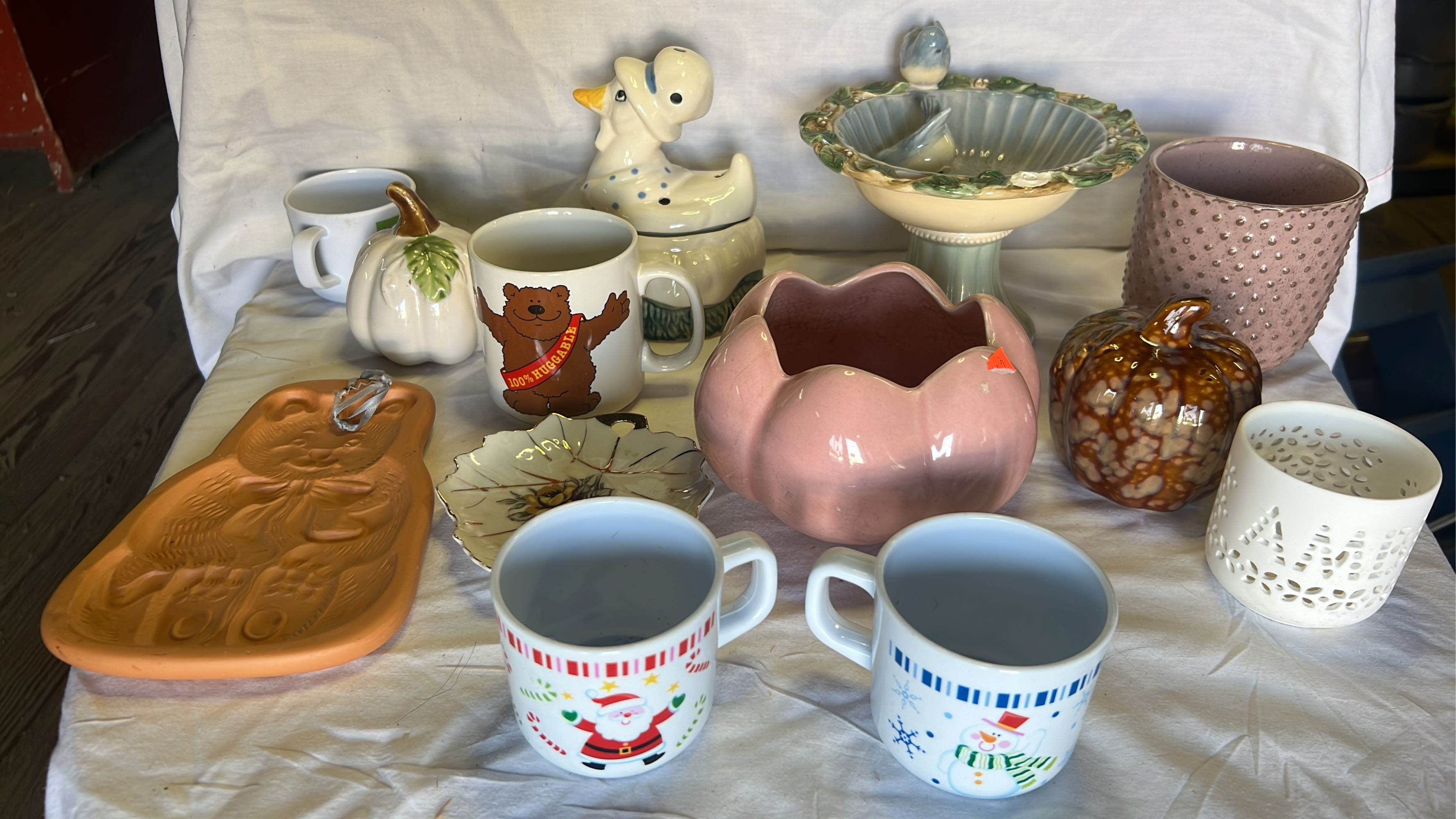 1040 Animal skull , bathroom Scale ,hand air pump , bird feeder frame , tote ,no lid
