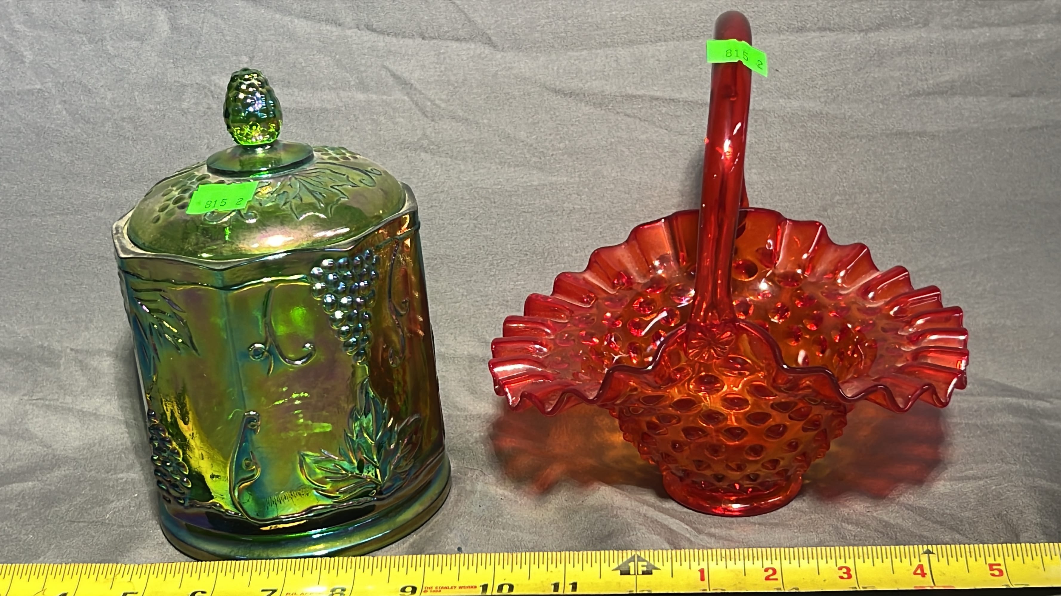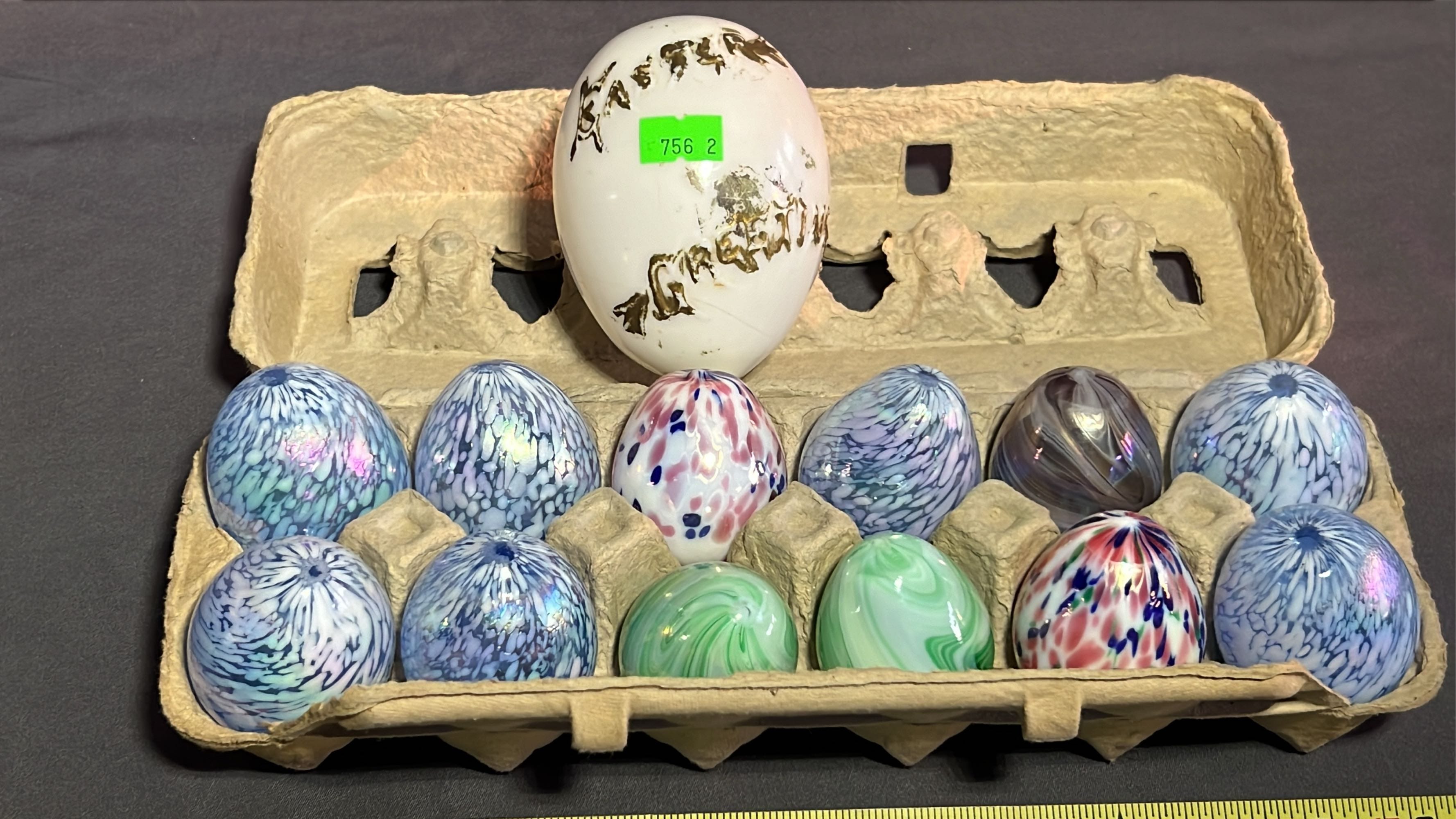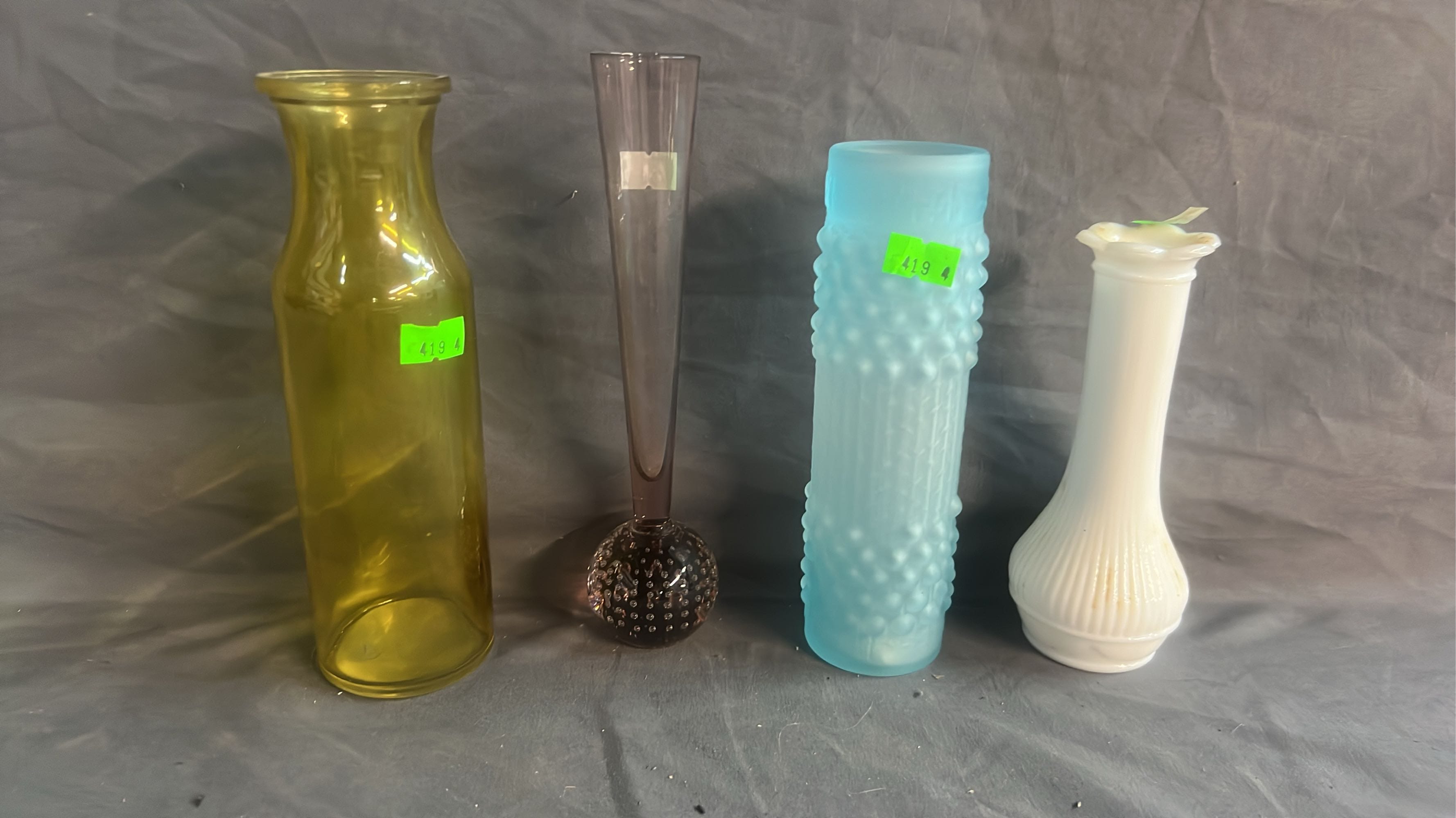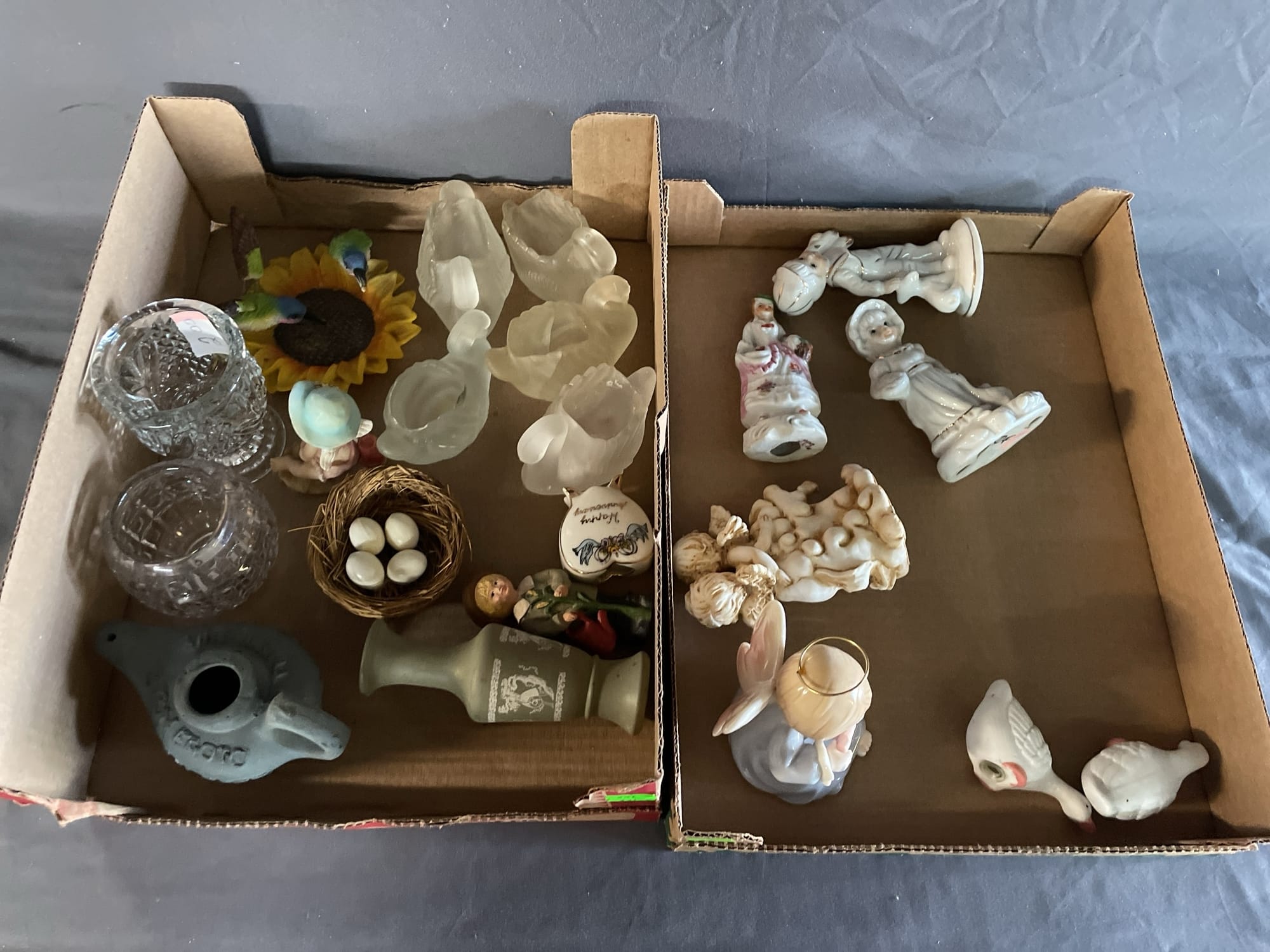 874 Glass Shell Dish , mini Hen on nest , mini glass vases , tins , miscellaneous decorations