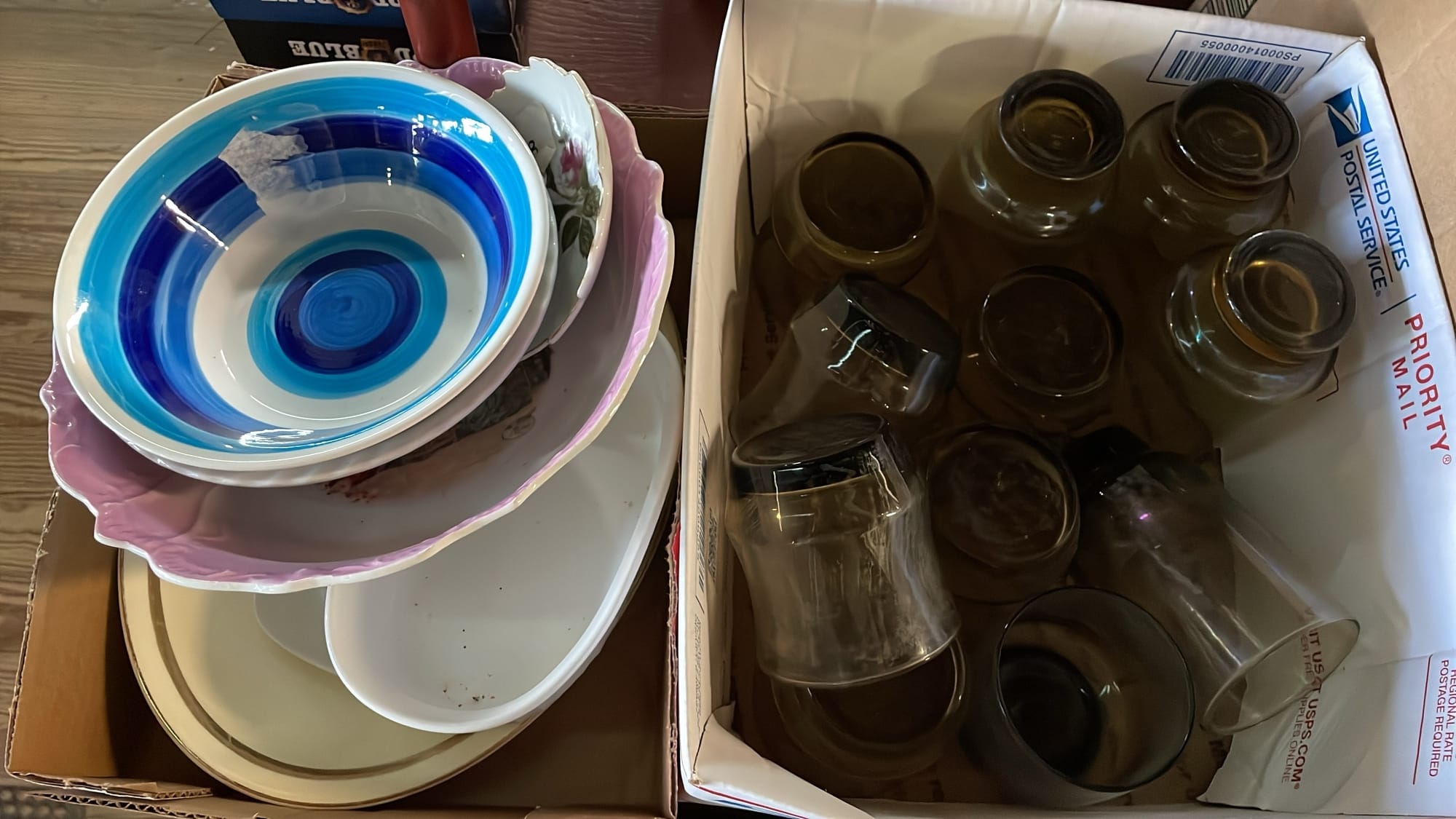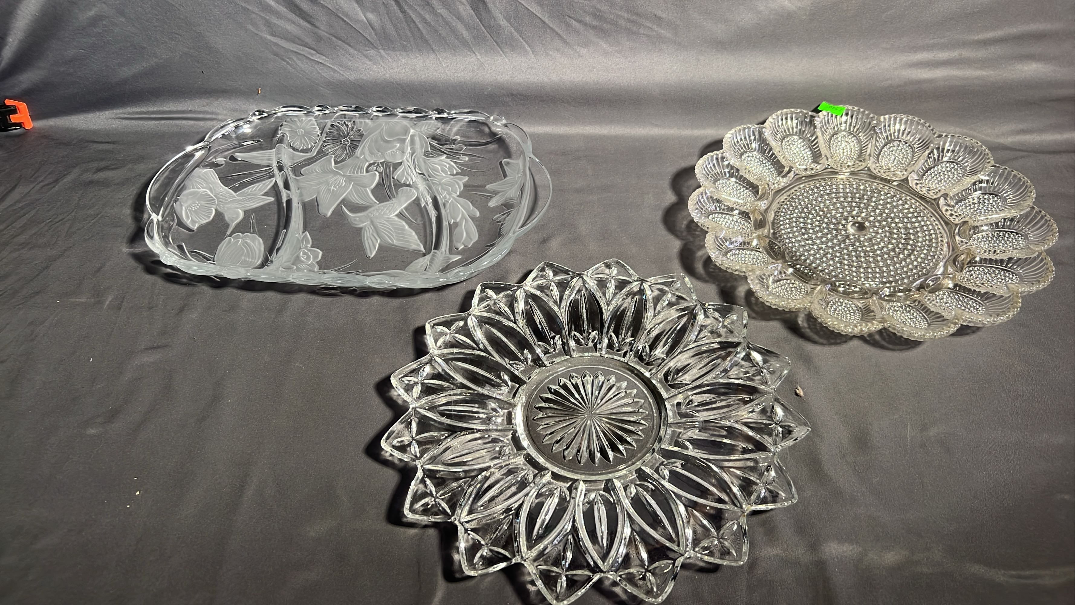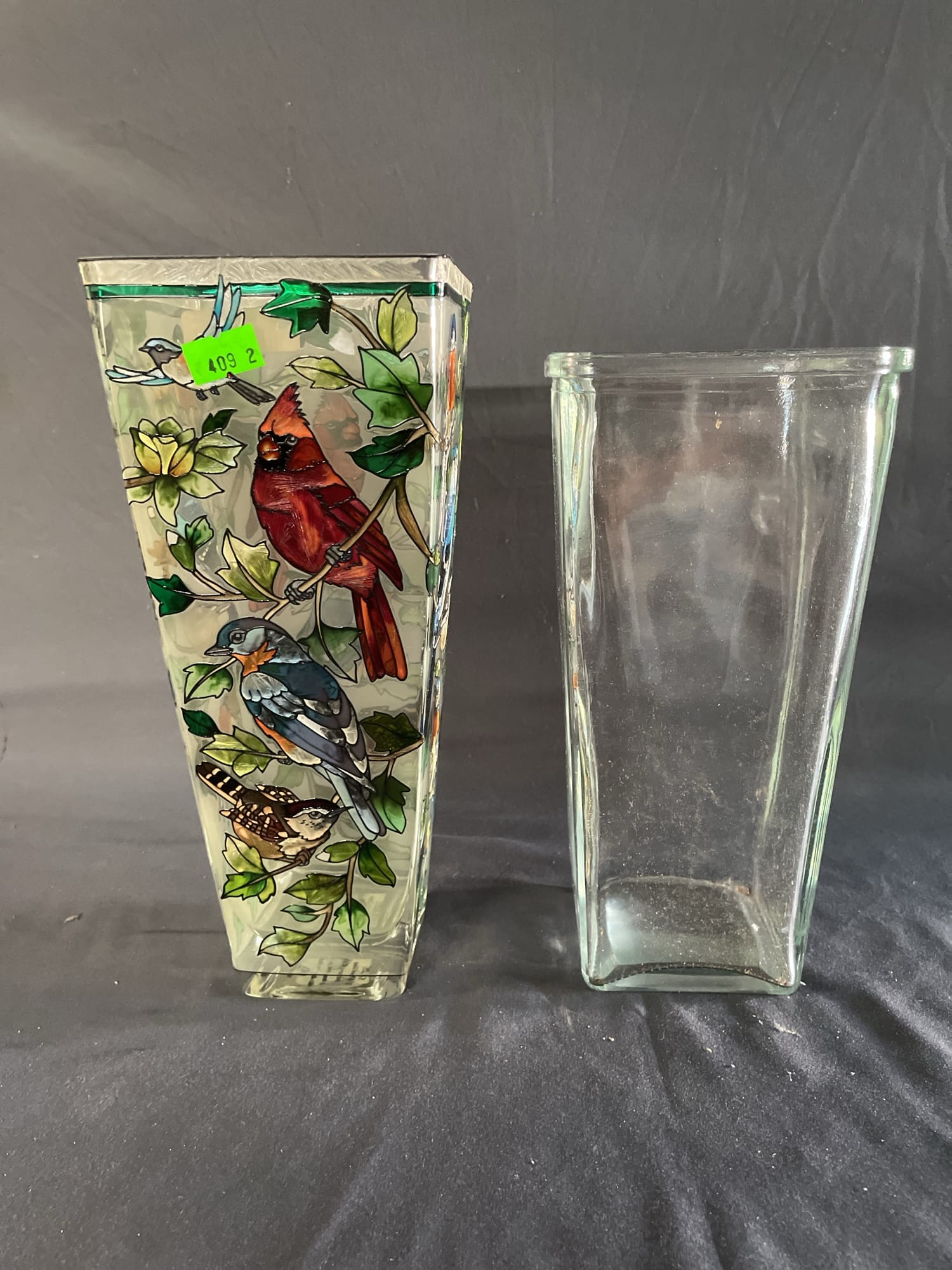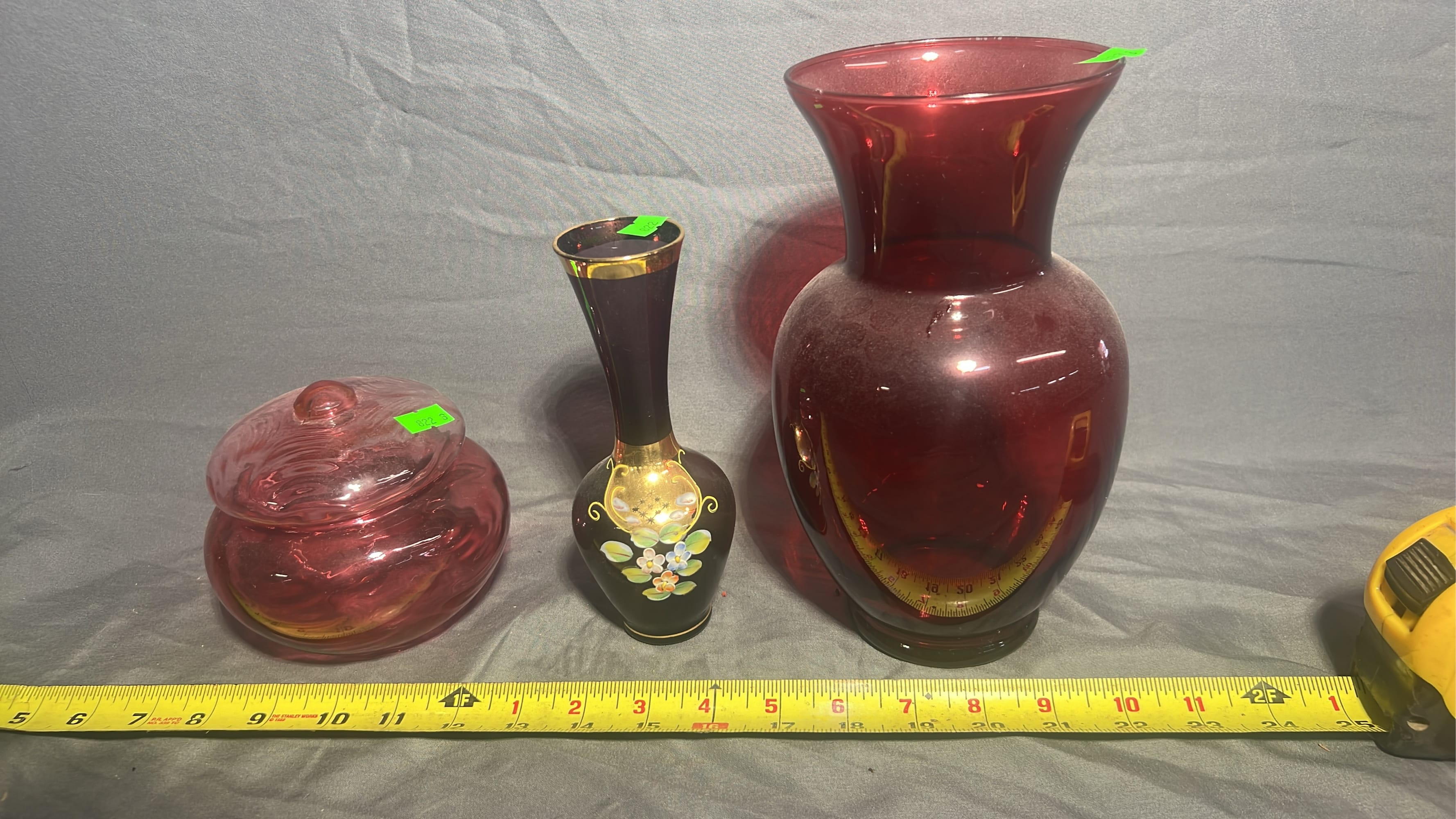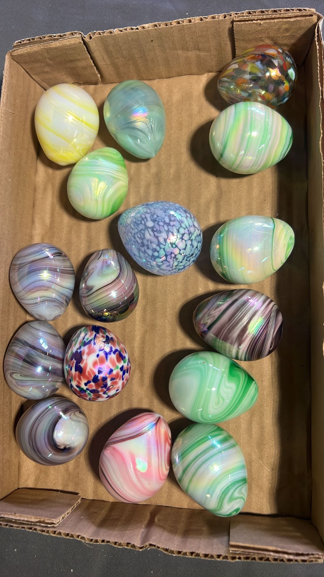 874 Glass Shell Dish , mini Hen on nest , mini glass vases , tins , miscellaneous decorations