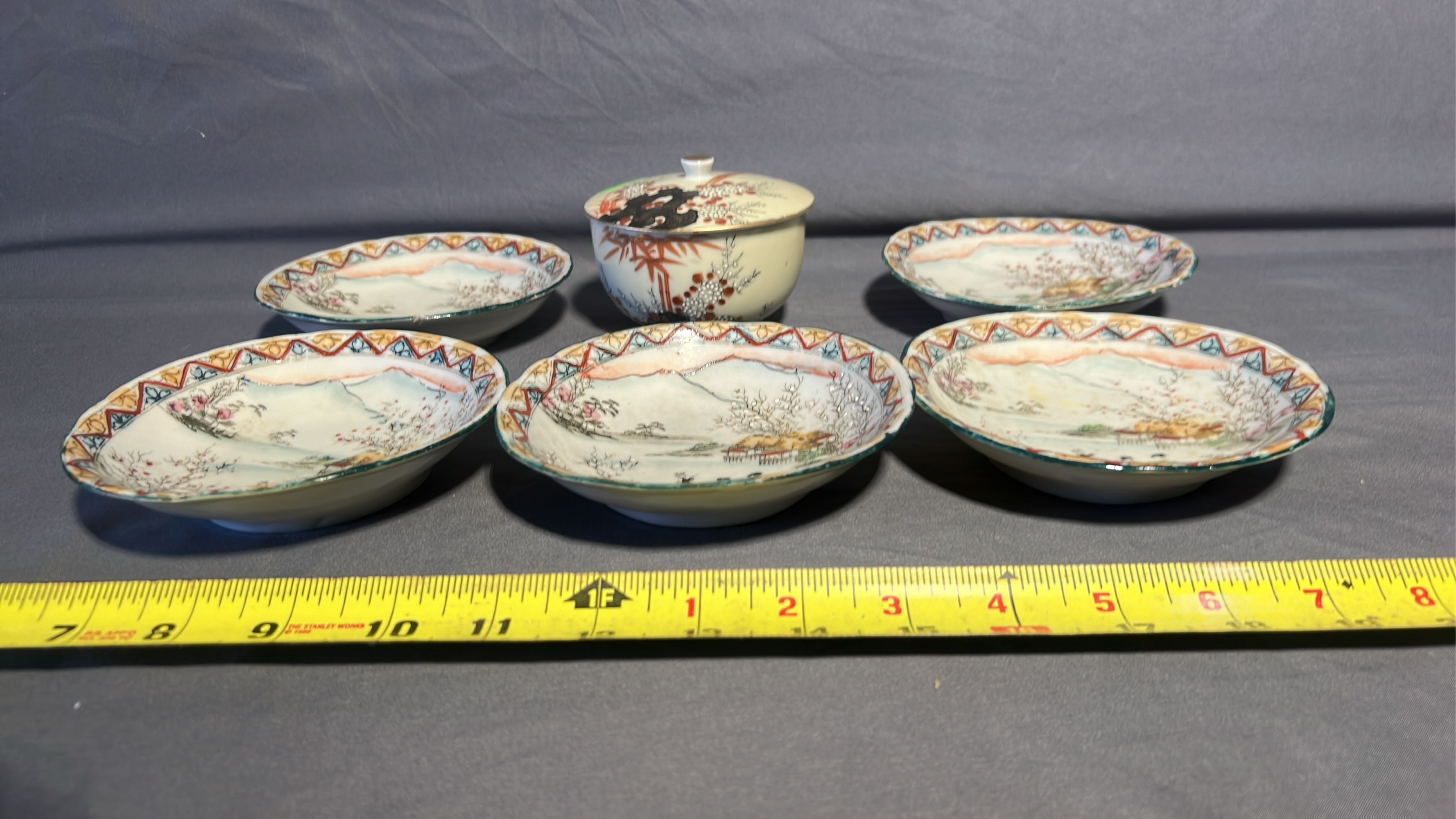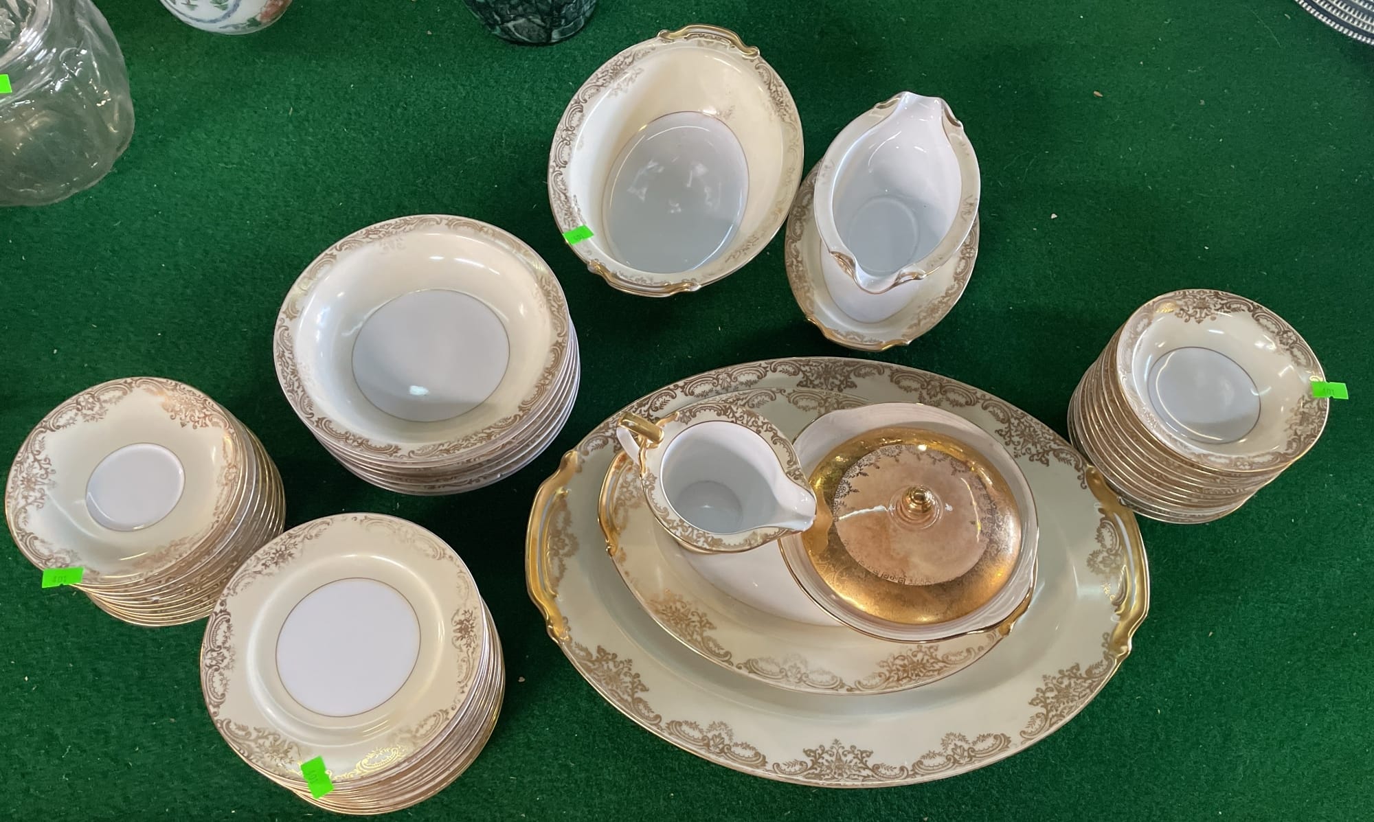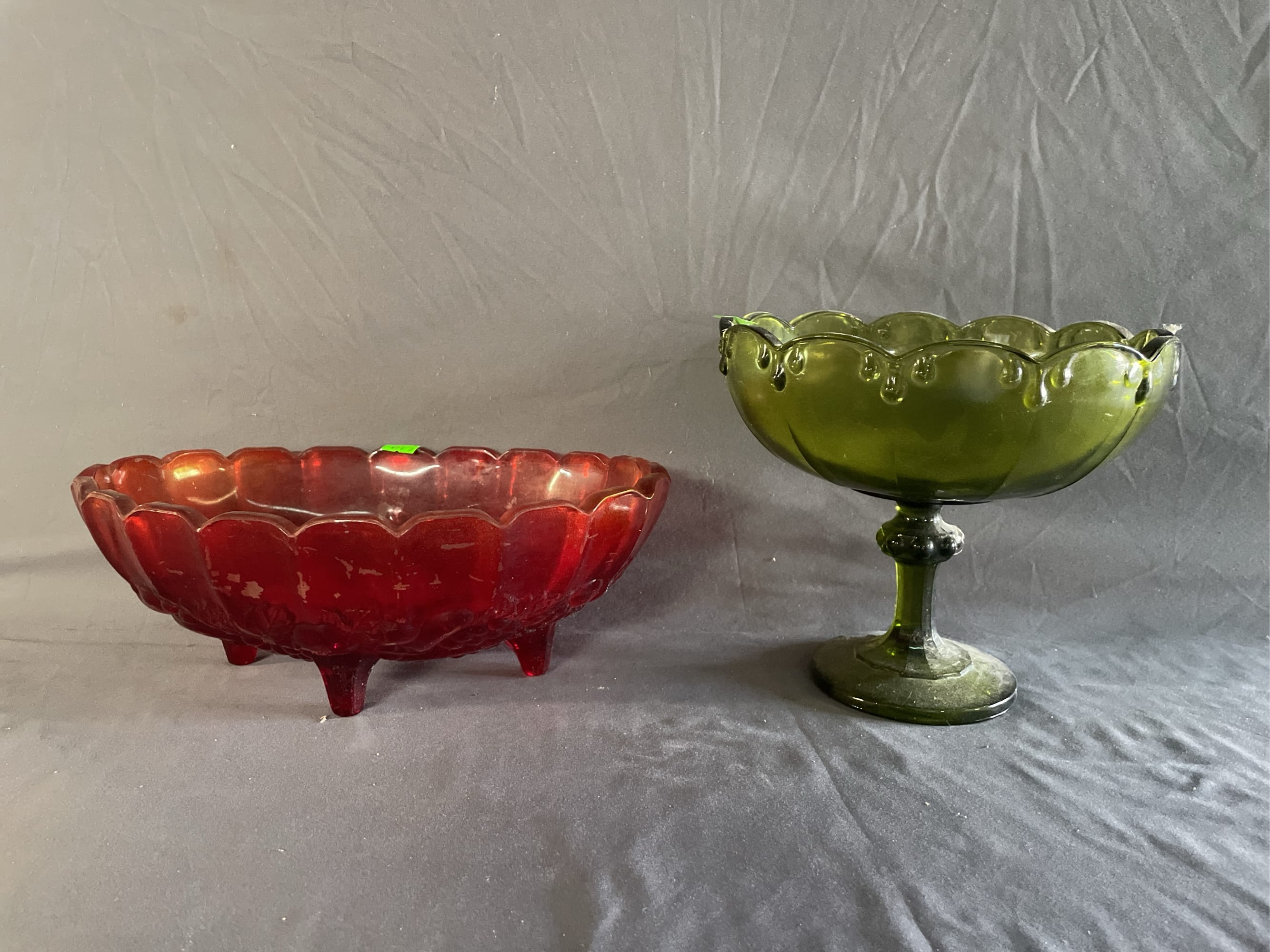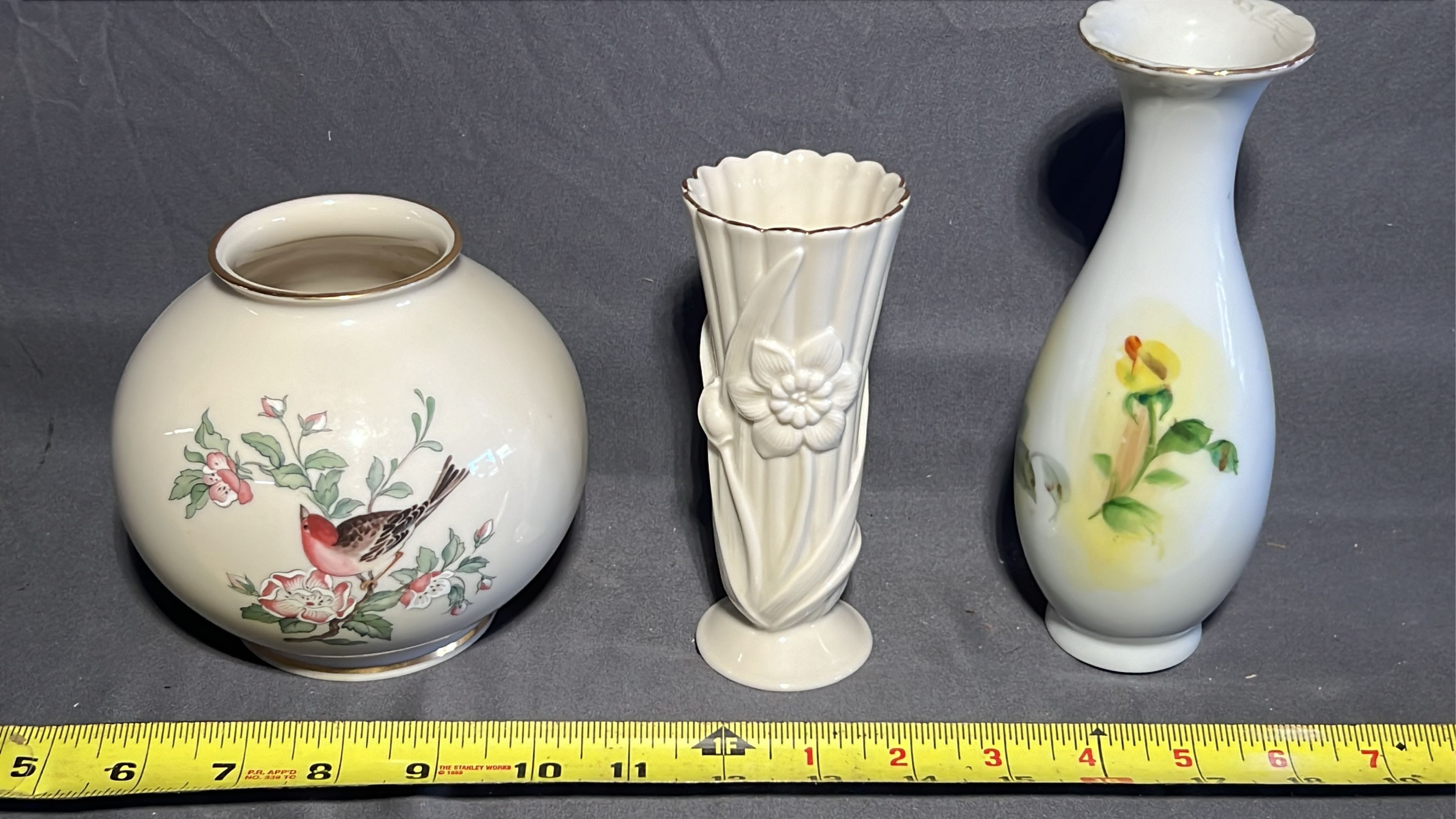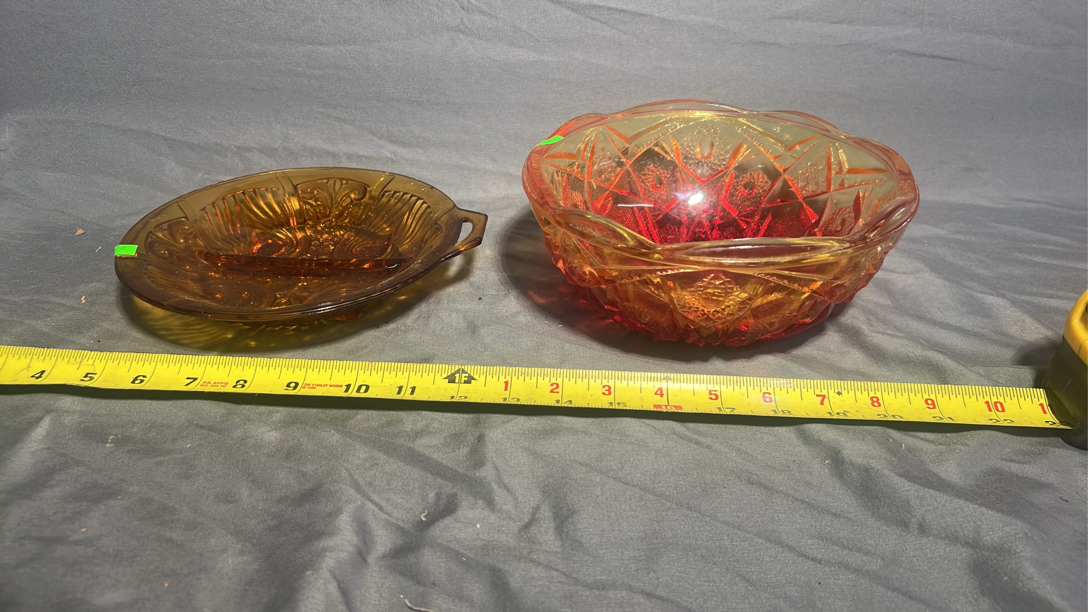 874 Glass Shell Dish , mini Hen on nest , mini glass vases , tins , miscellaneous decorations