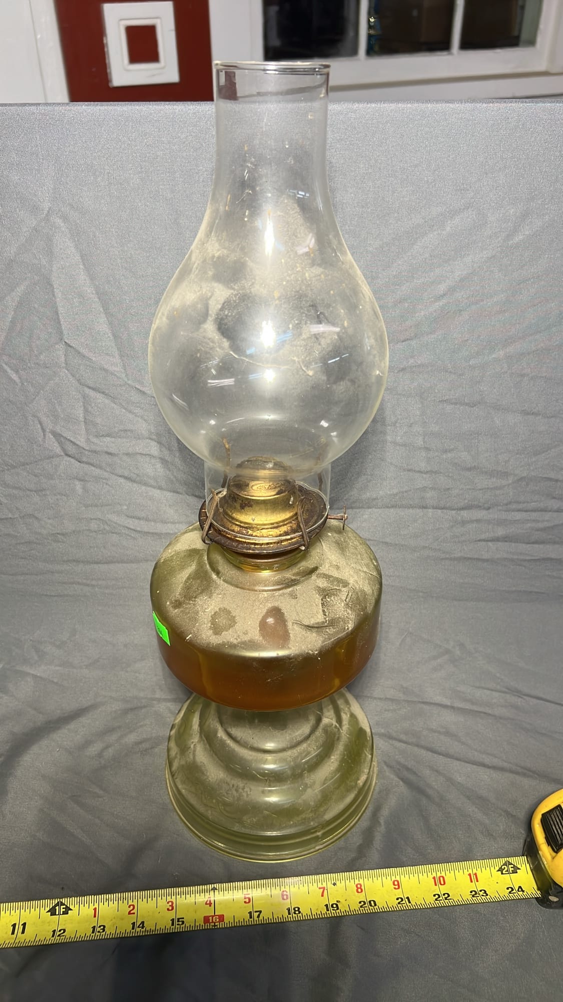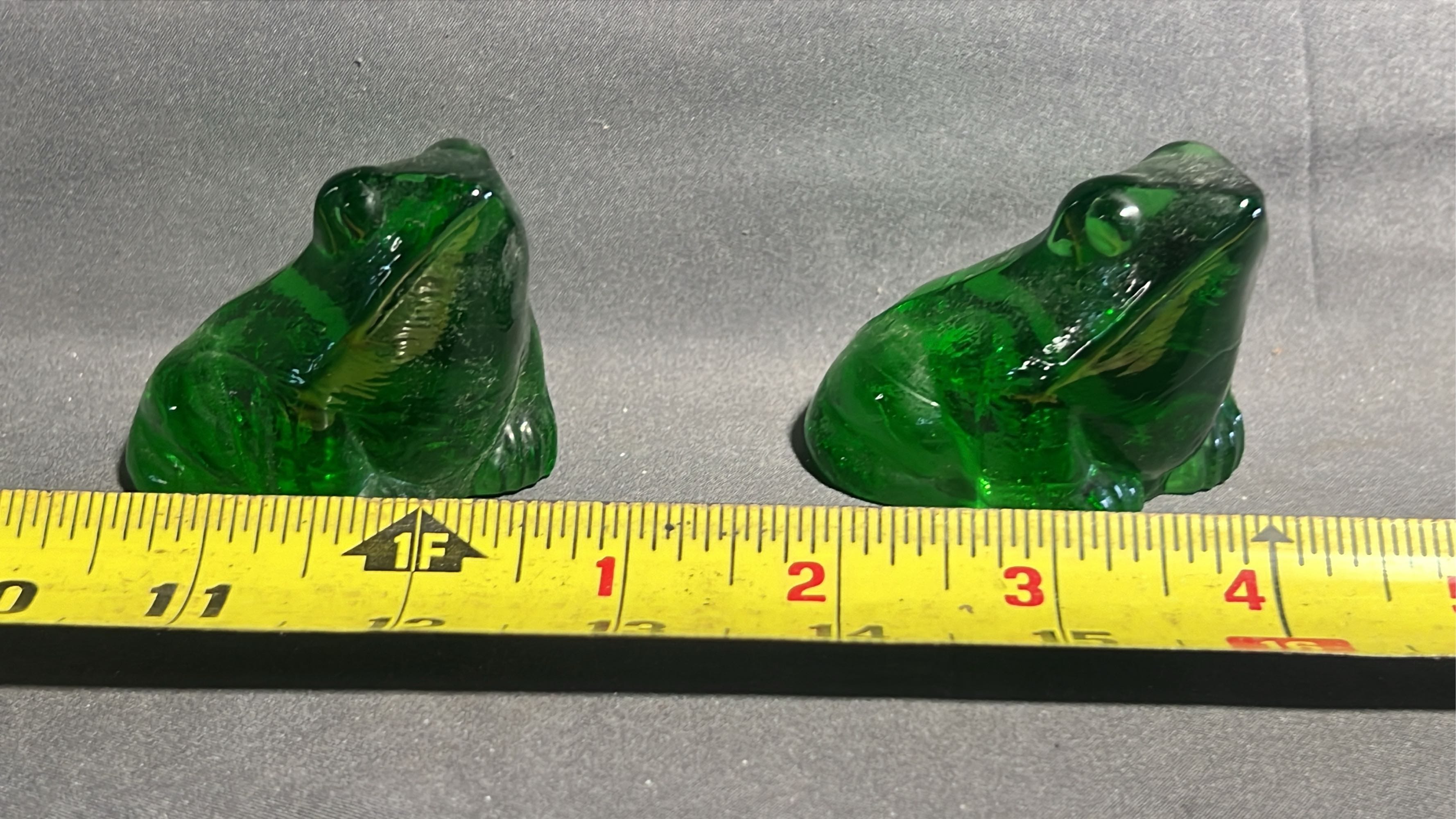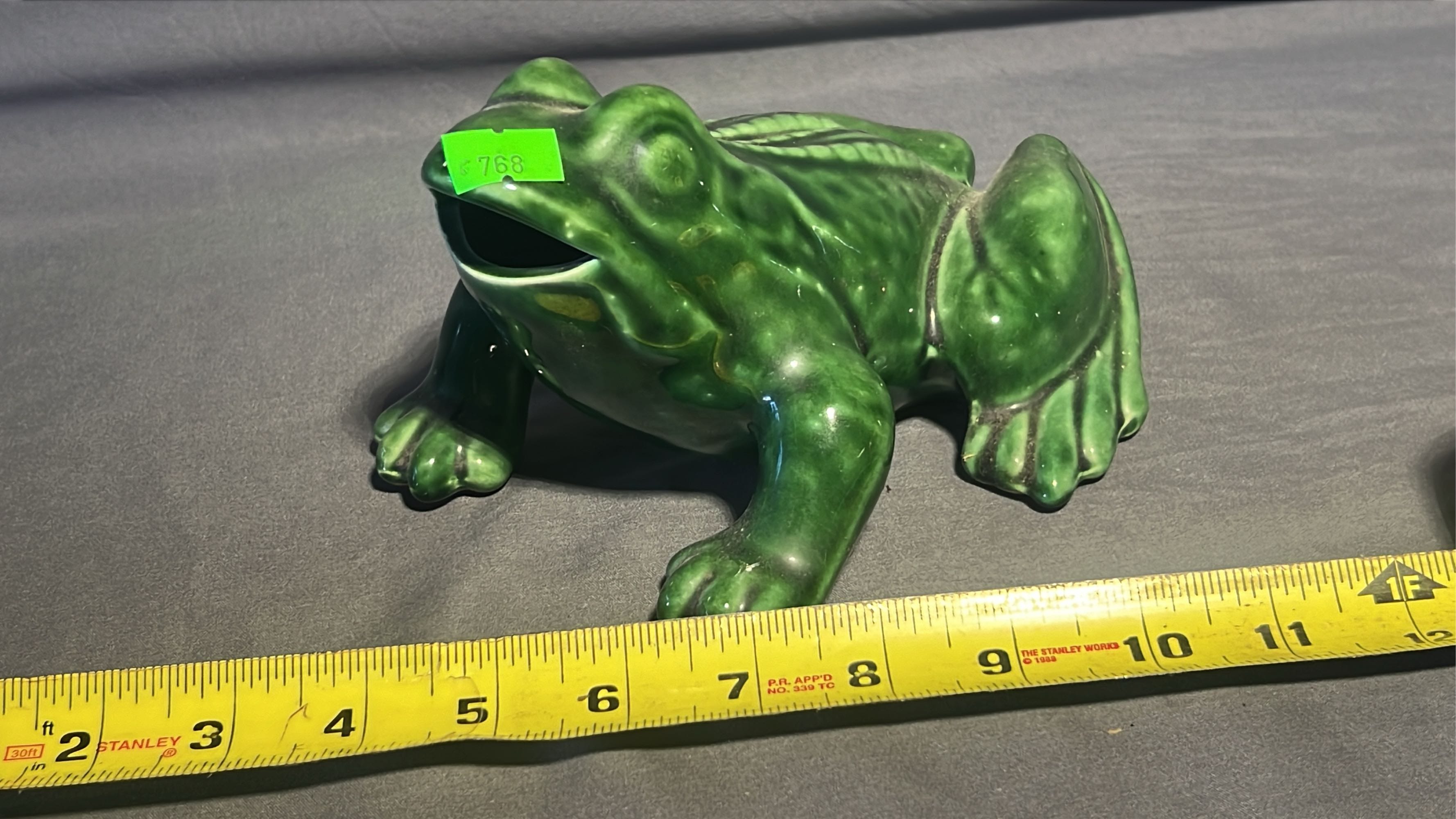 858 Metal Frog Lamp with green Glass back shade , 9”x3”