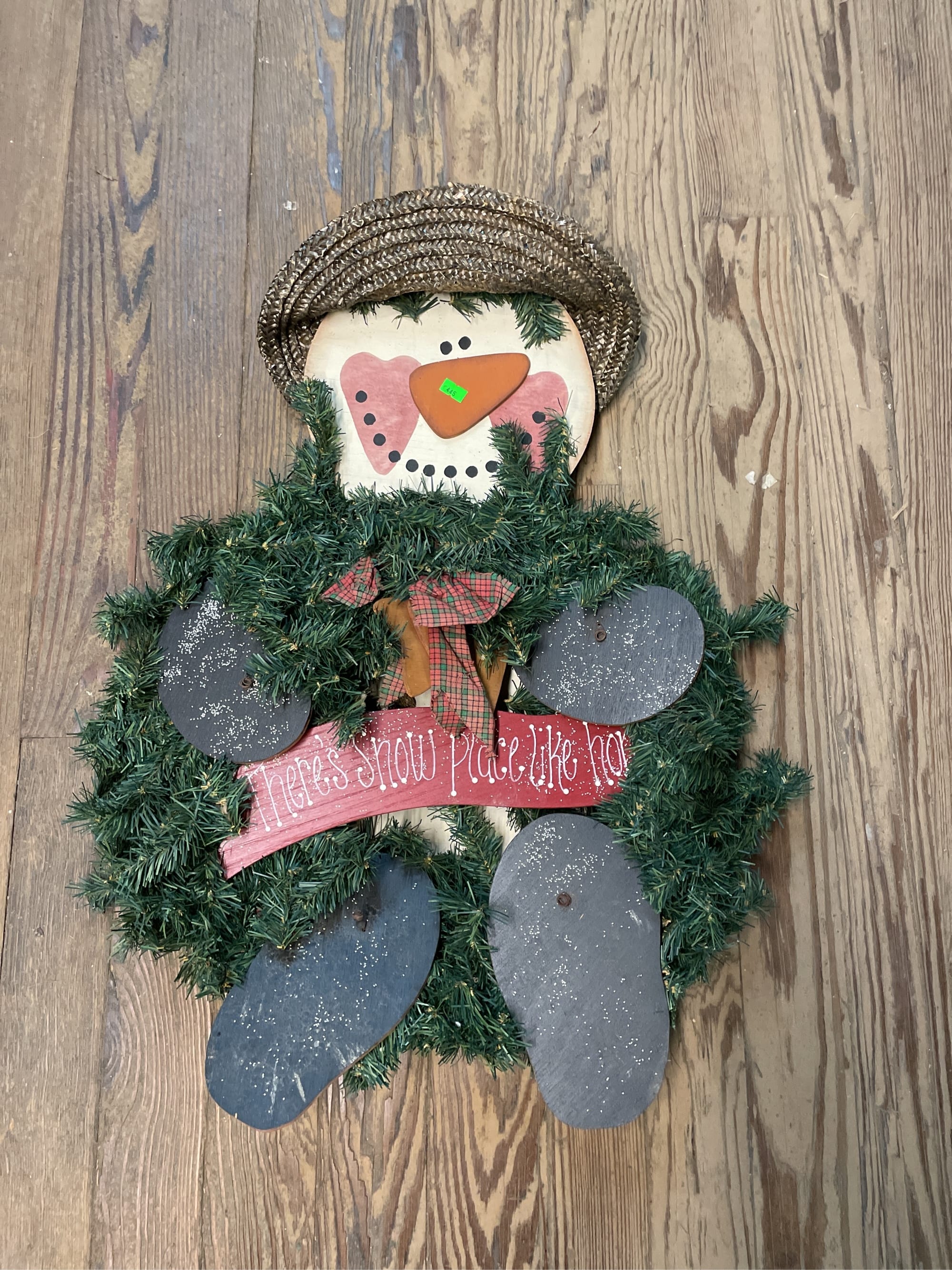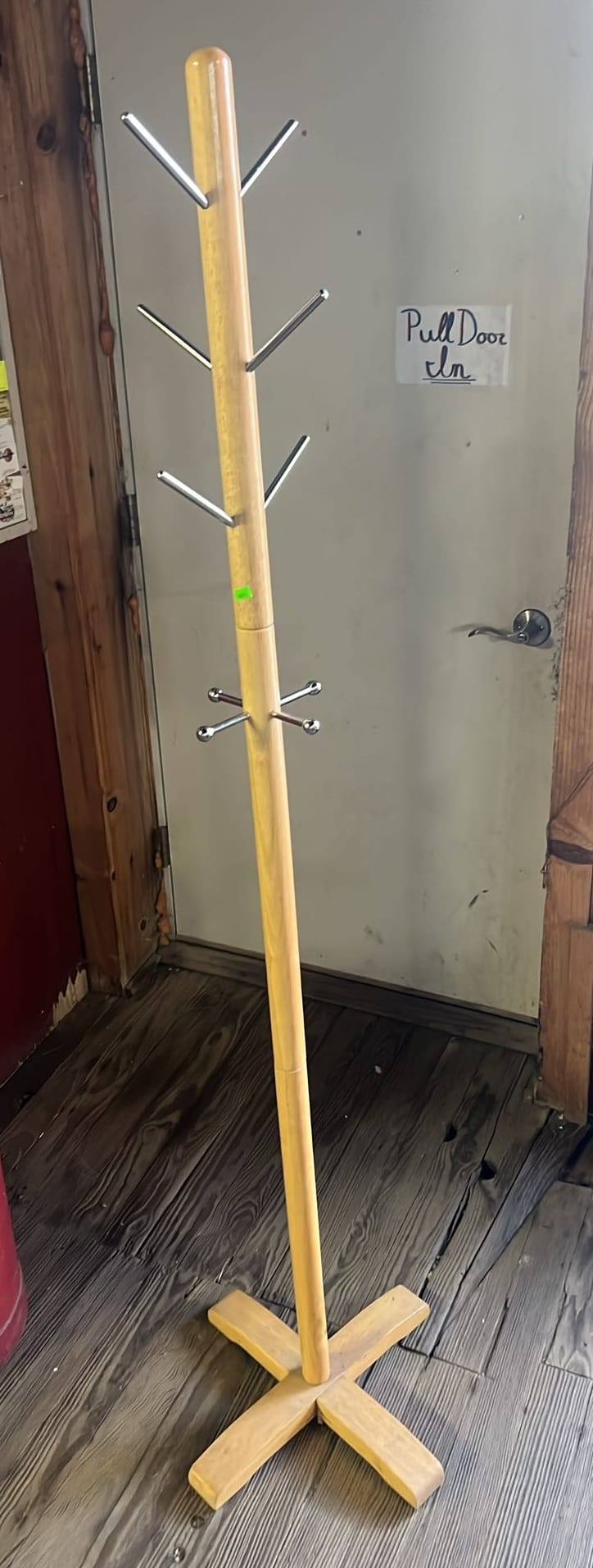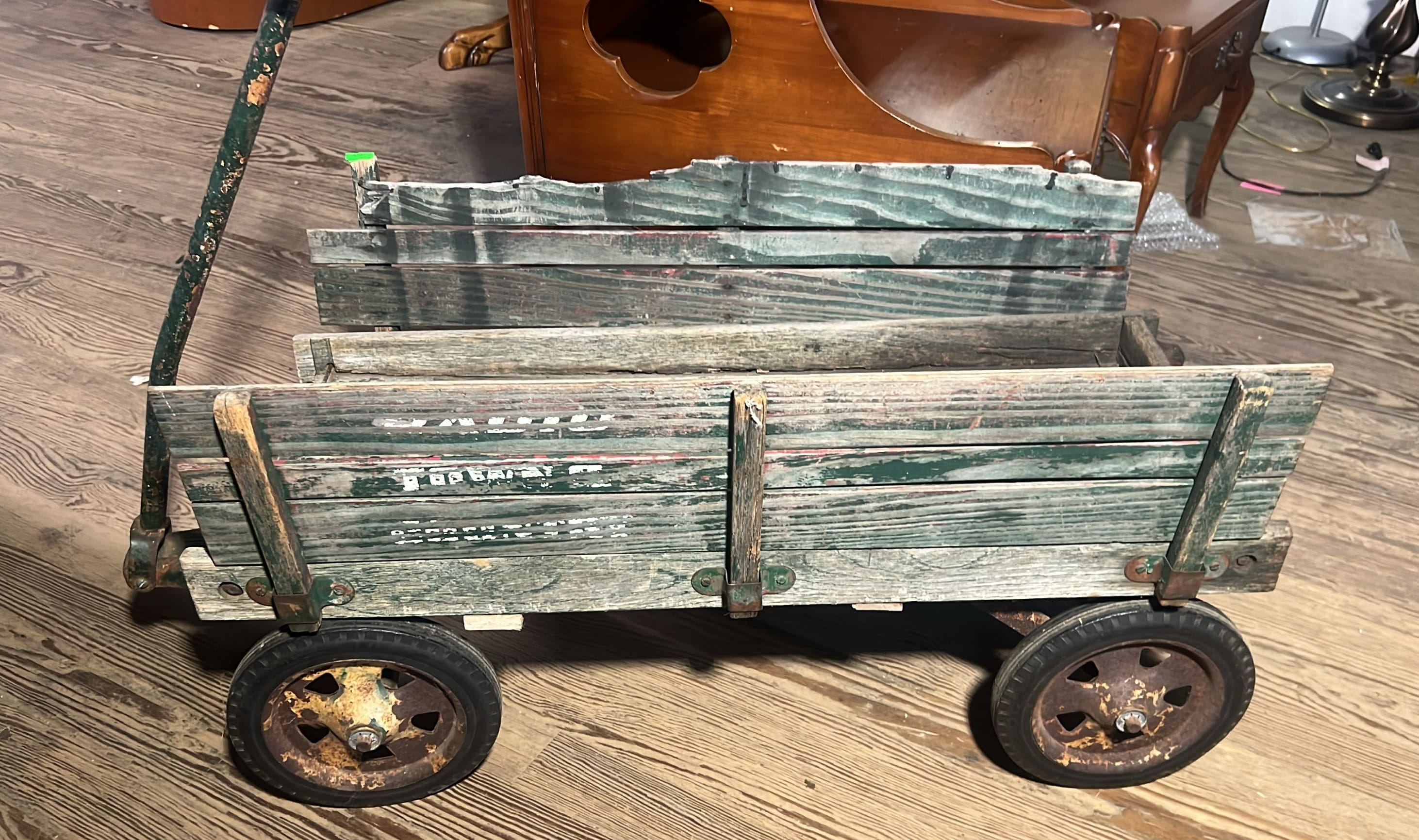910 Metal hangers on Wood , 26”x36”, small wood houses , 2- 7.75” plastic wheels