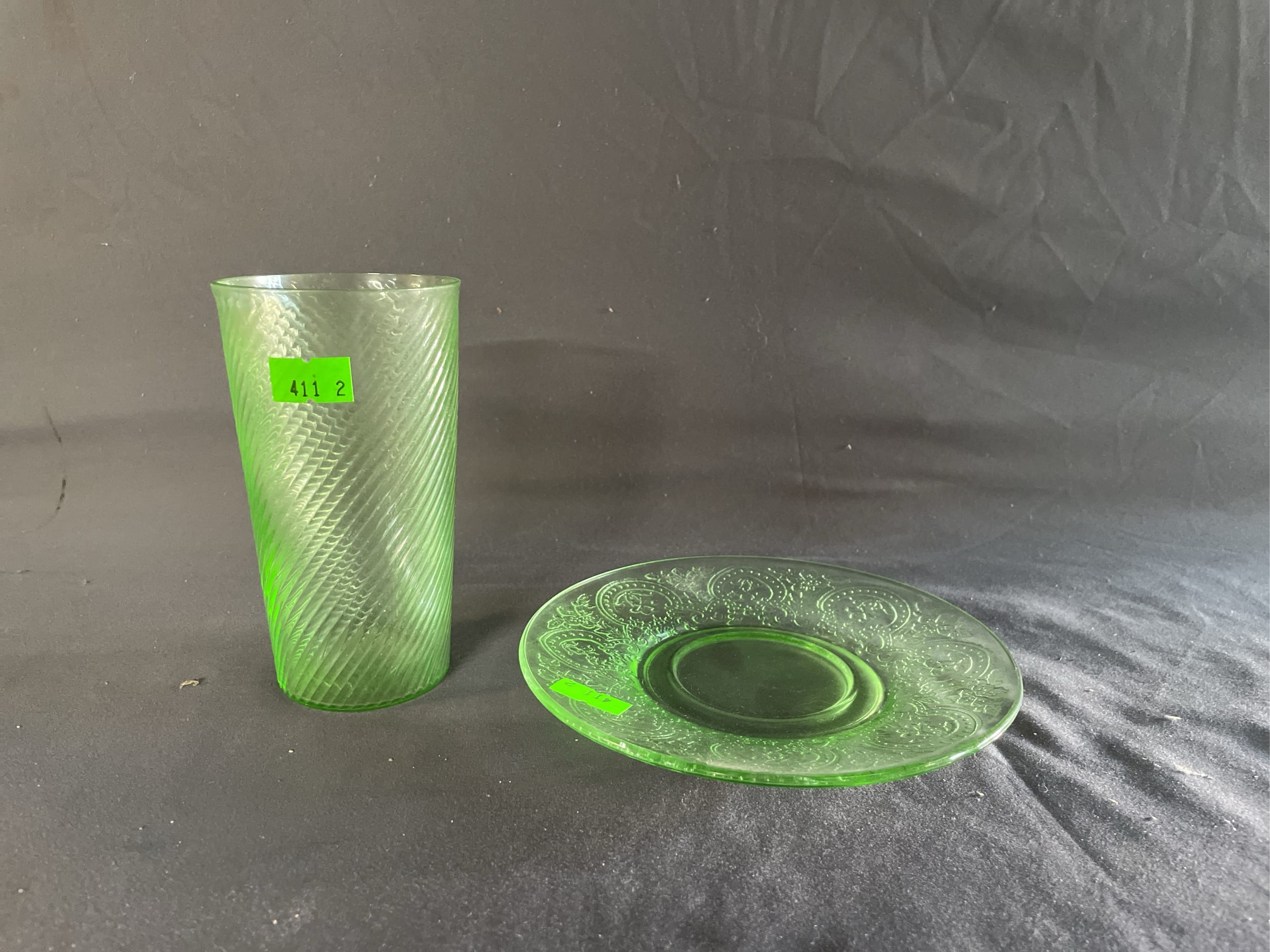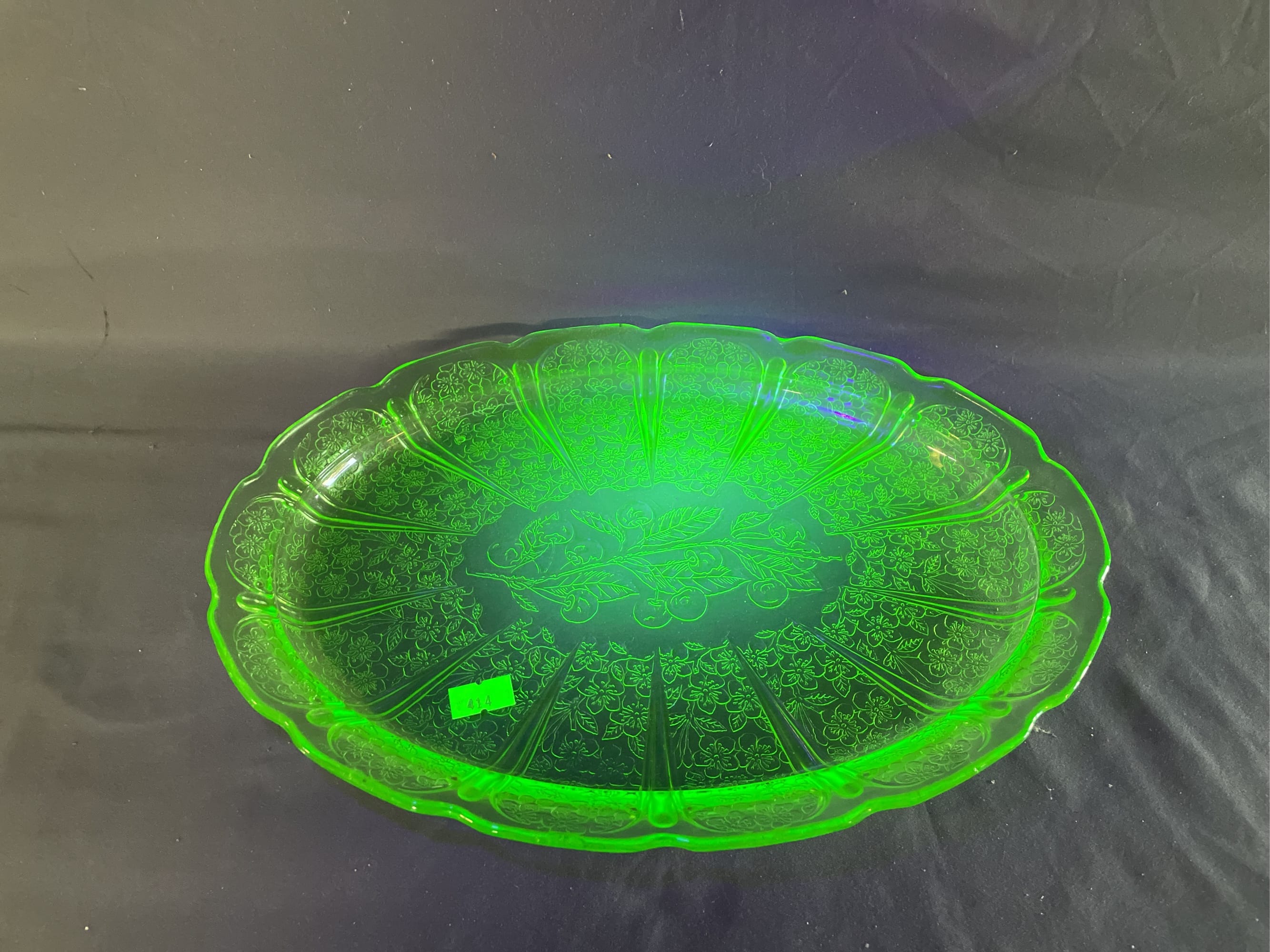 24 Vintage Indiana Glass Green Uranium Salad Plate ,11.5”
