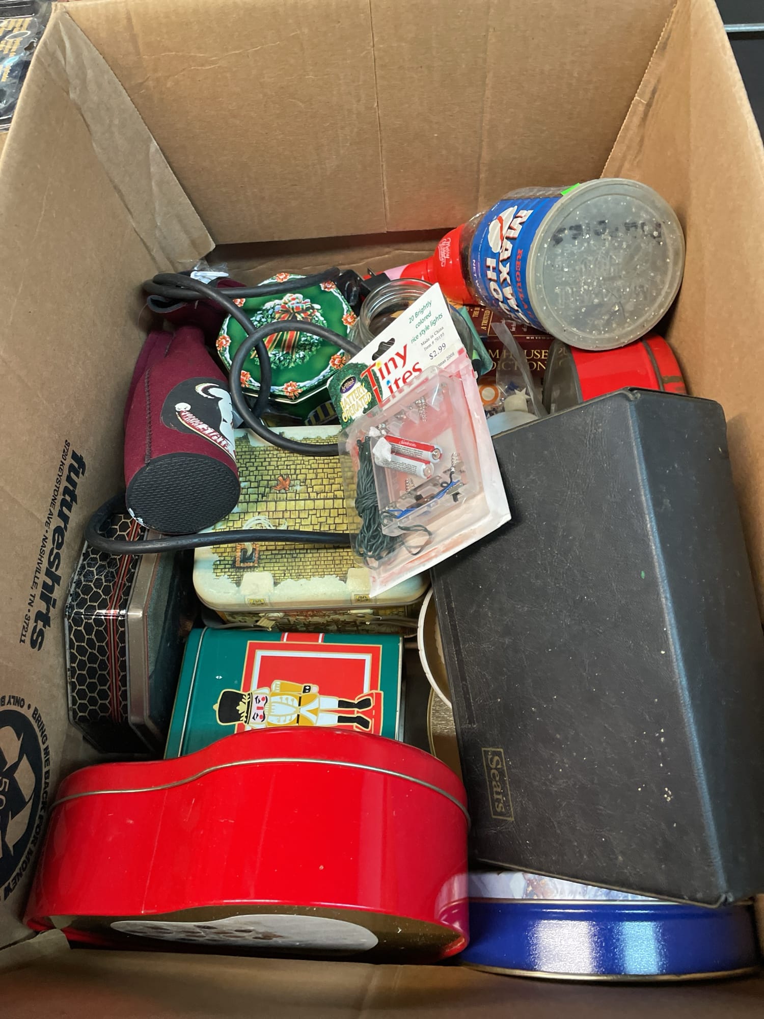 68 Porta-file metal file box , Vintage Storage Box Power strips , metal book Tin , miscellaneous in tote no lid