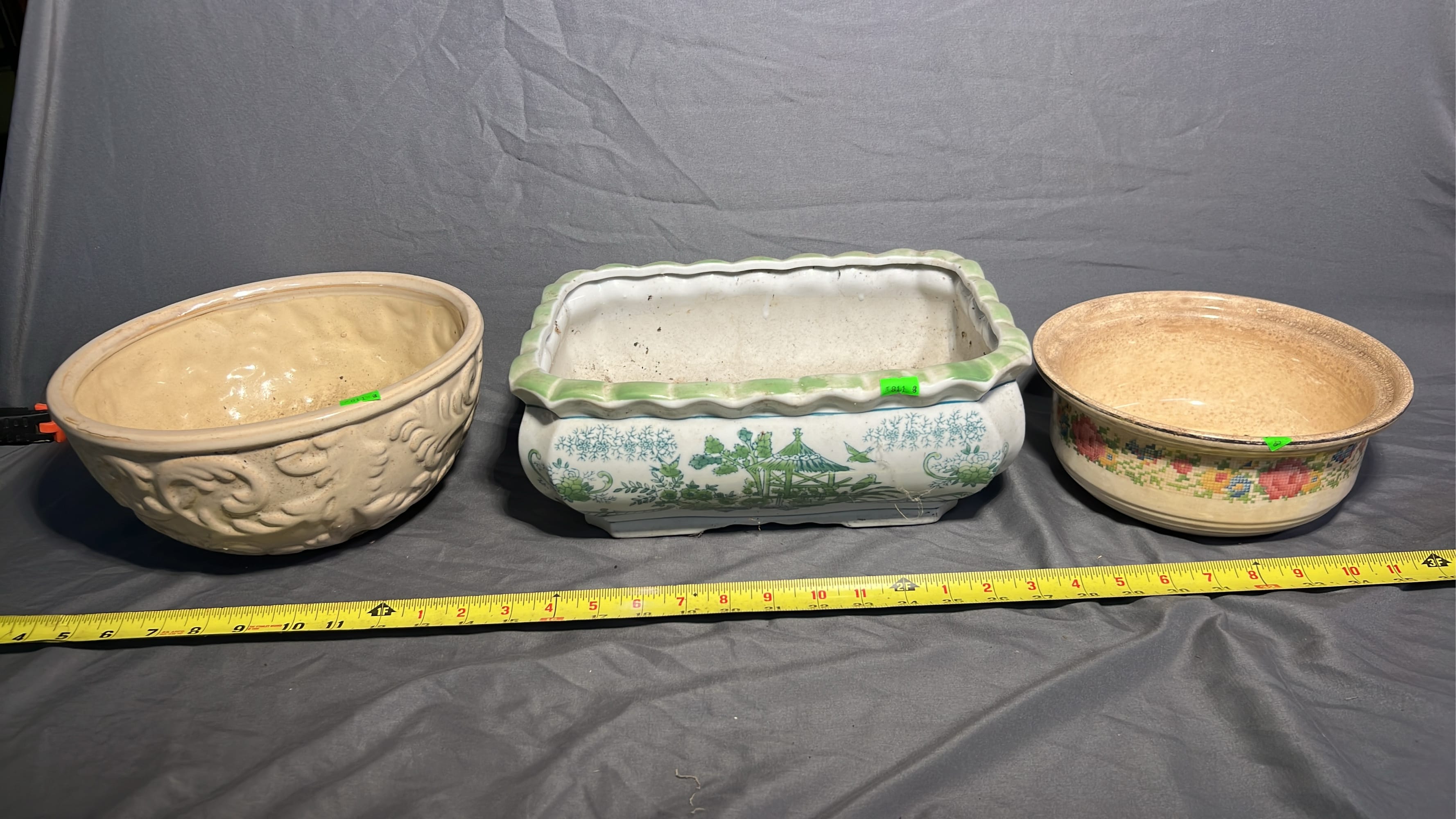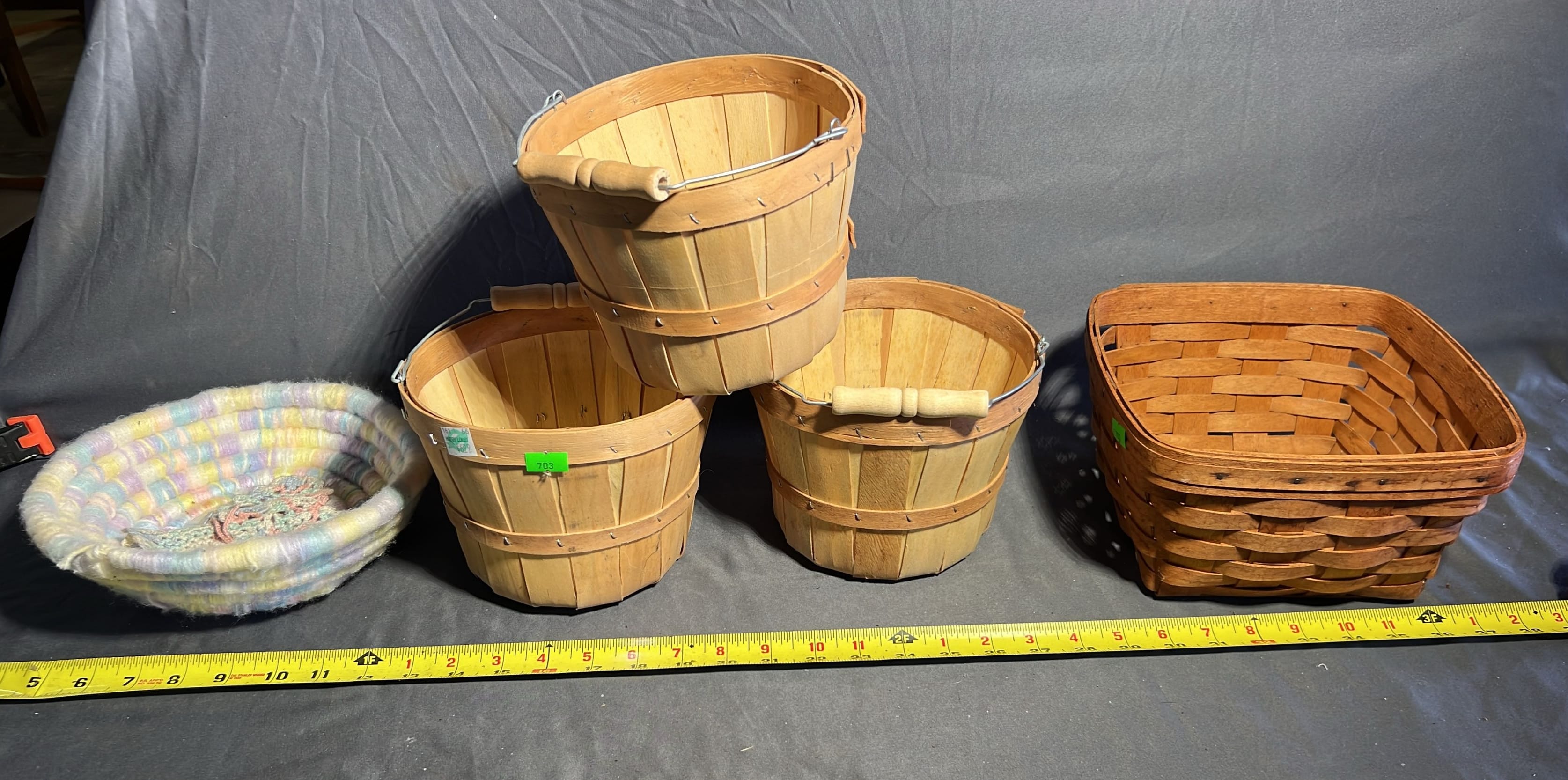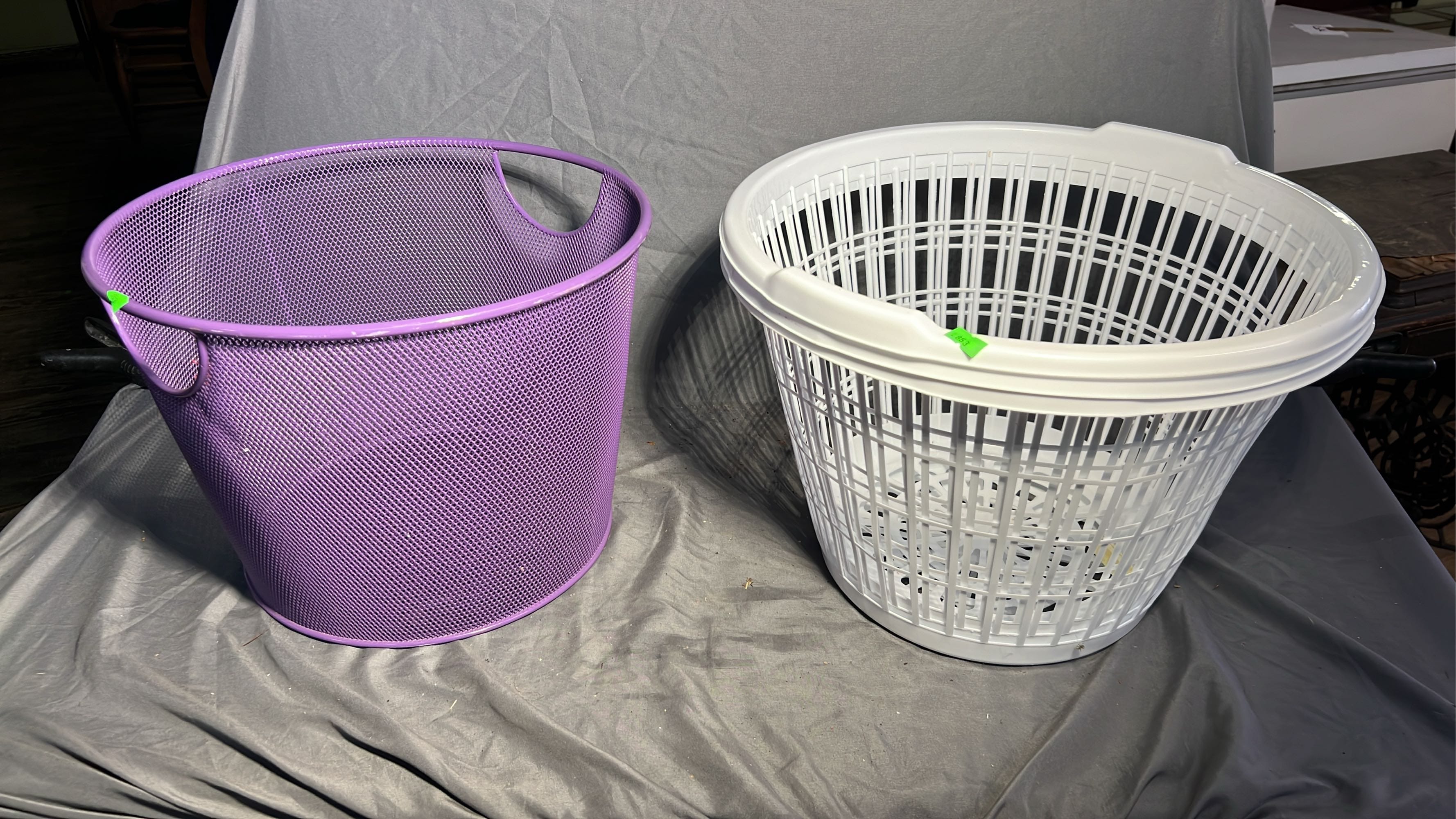 853 3- Plastic Laundry Baskets , 17”x12”, metal Basket , 16”x12”