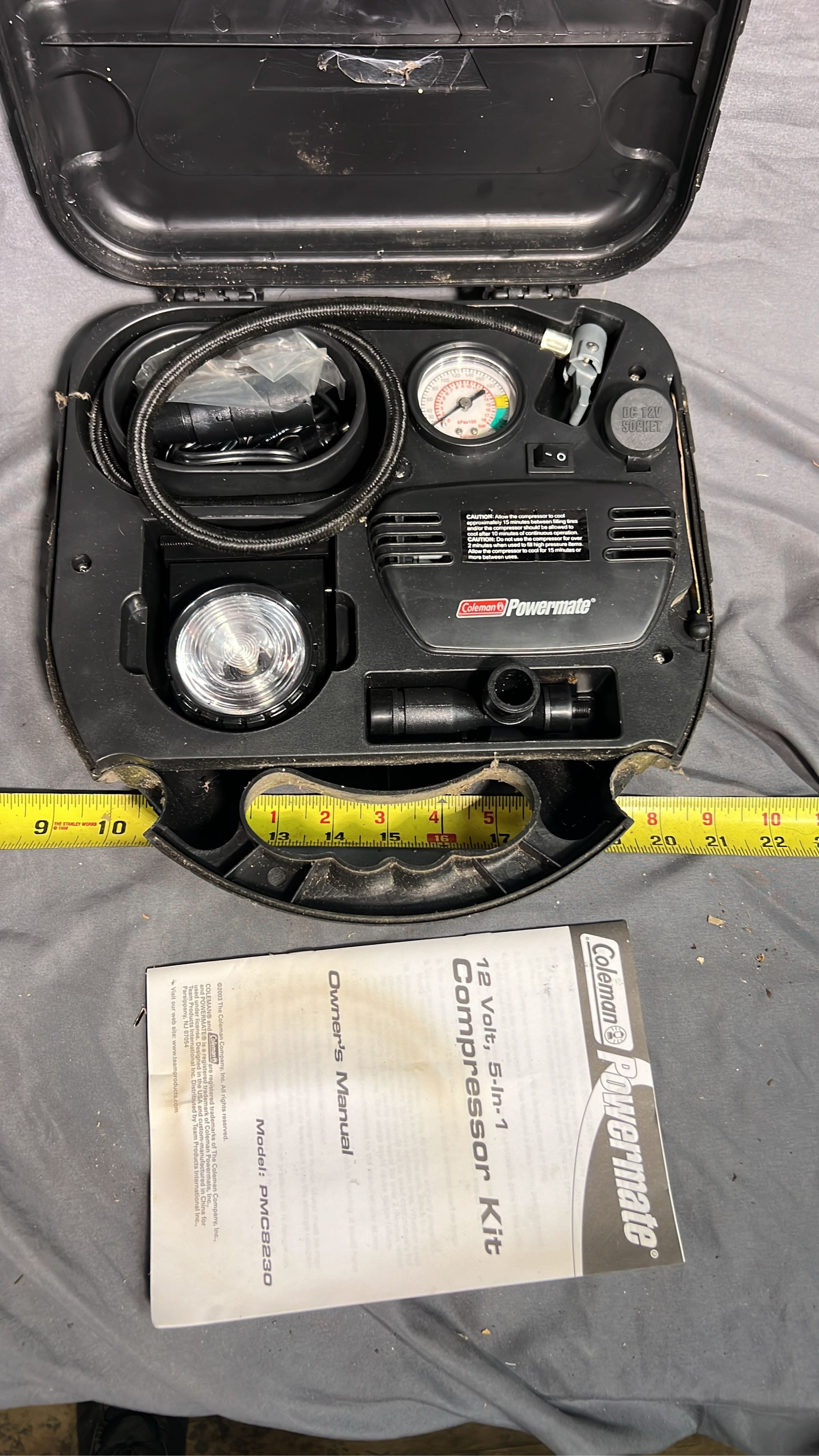 879 Coleman Powermate Compressor Kit , 12volt , 5in 1 kit in Carry Case