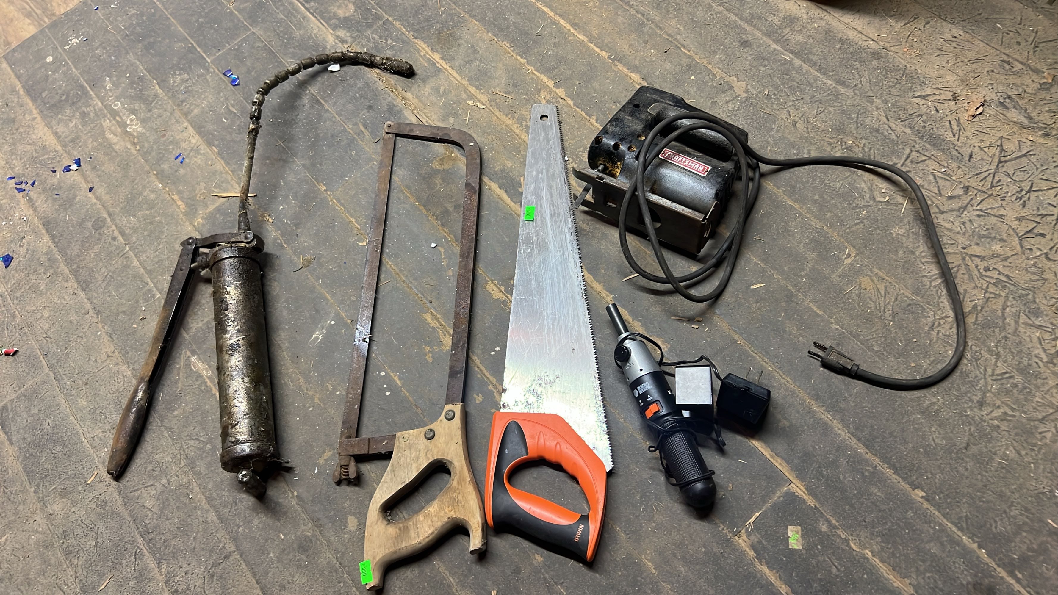 880 Craftsman 1/2” Sabre Saw , Black & Decker rechargable screwdriver , handsaw , meat saw , grease gun