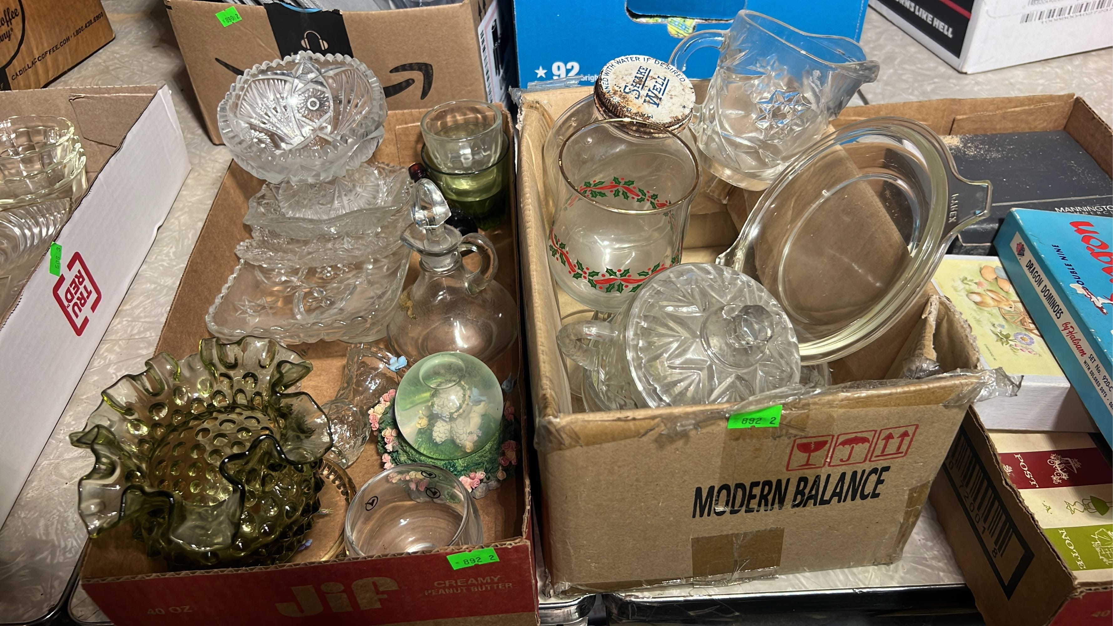 892 Glassware Assortment ,cruet , cream and Sugar ,miscellaneous glass