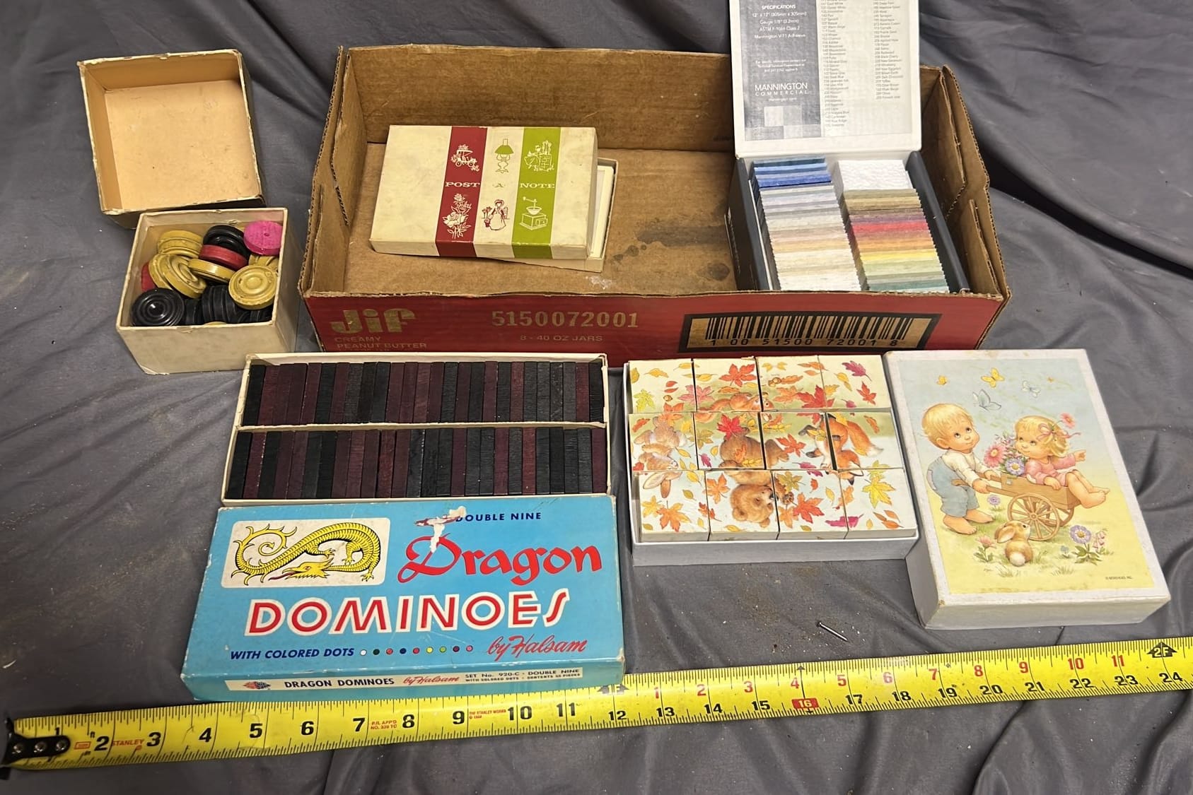 893 Dragon Dominoes , block Puzzle ,Mannington Tile samples , Checker pieces